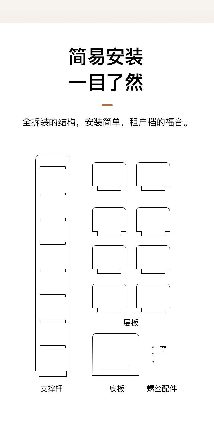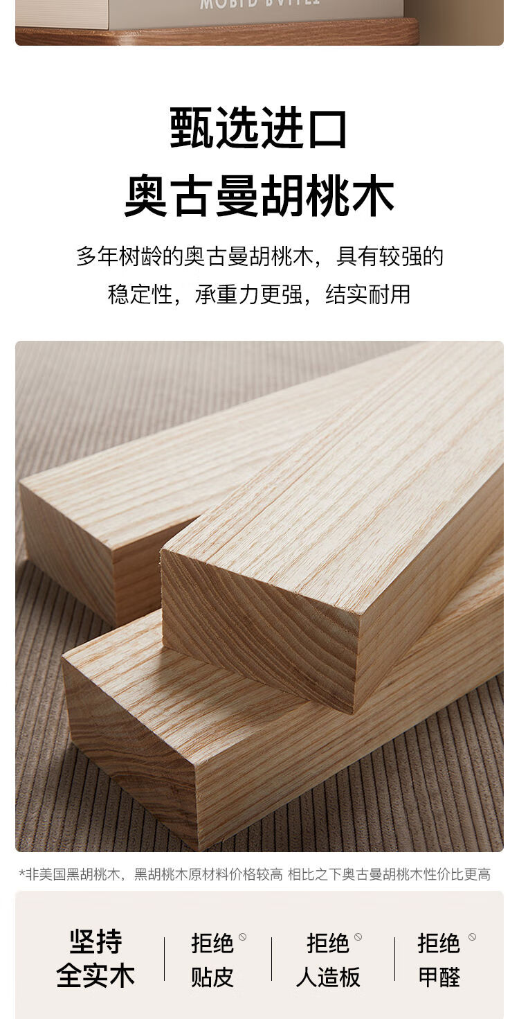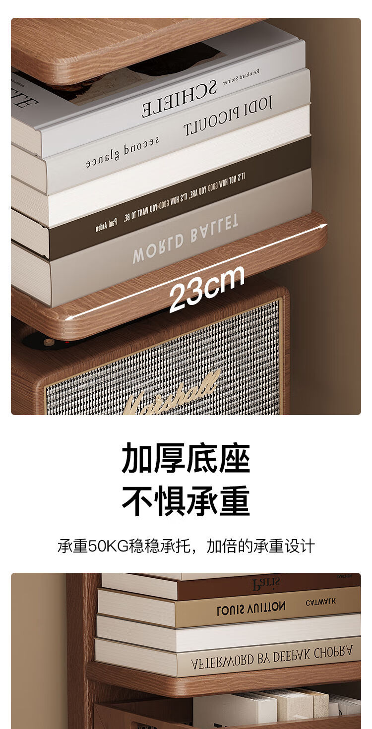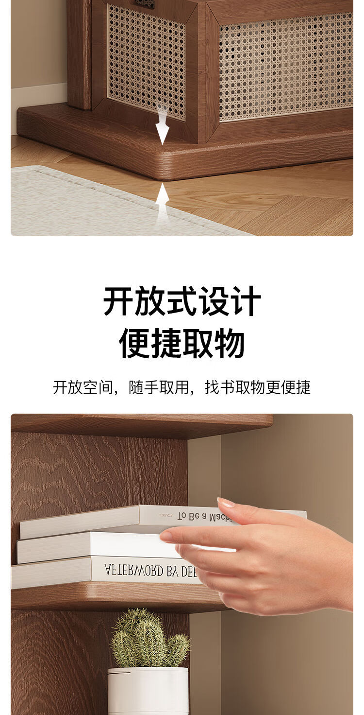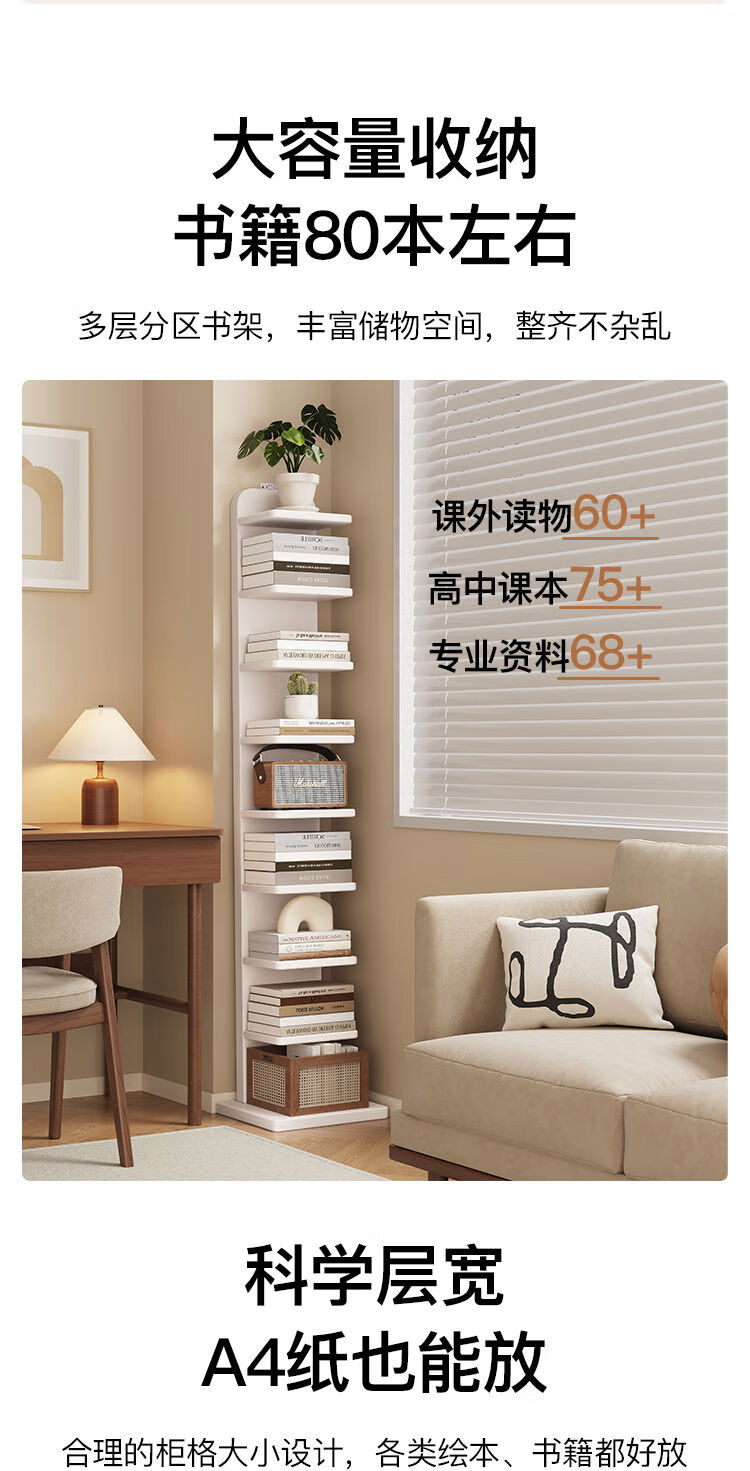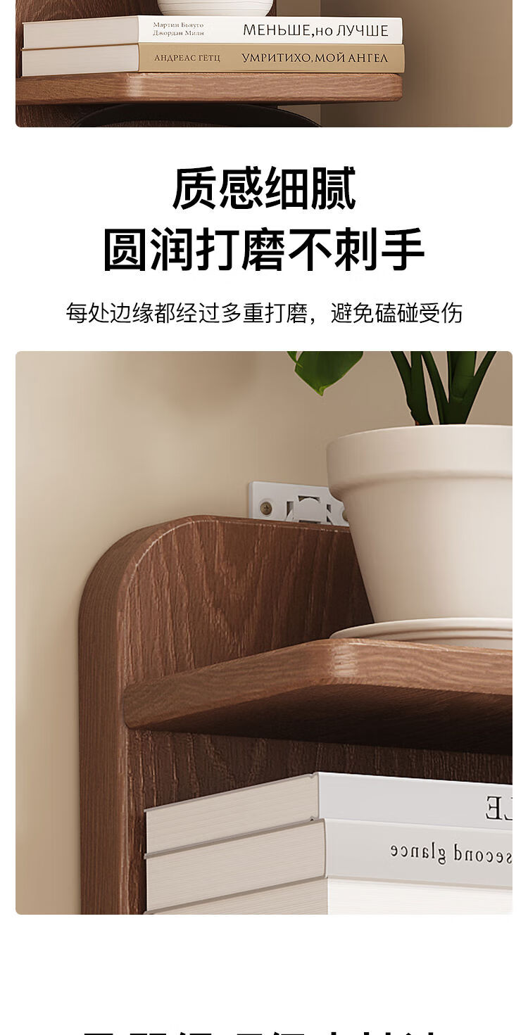 语森忆实木书架落地防倾倒窄书柜隐形置物架立式客厅家用转角学生小书架 胡桃色5层原木加厚