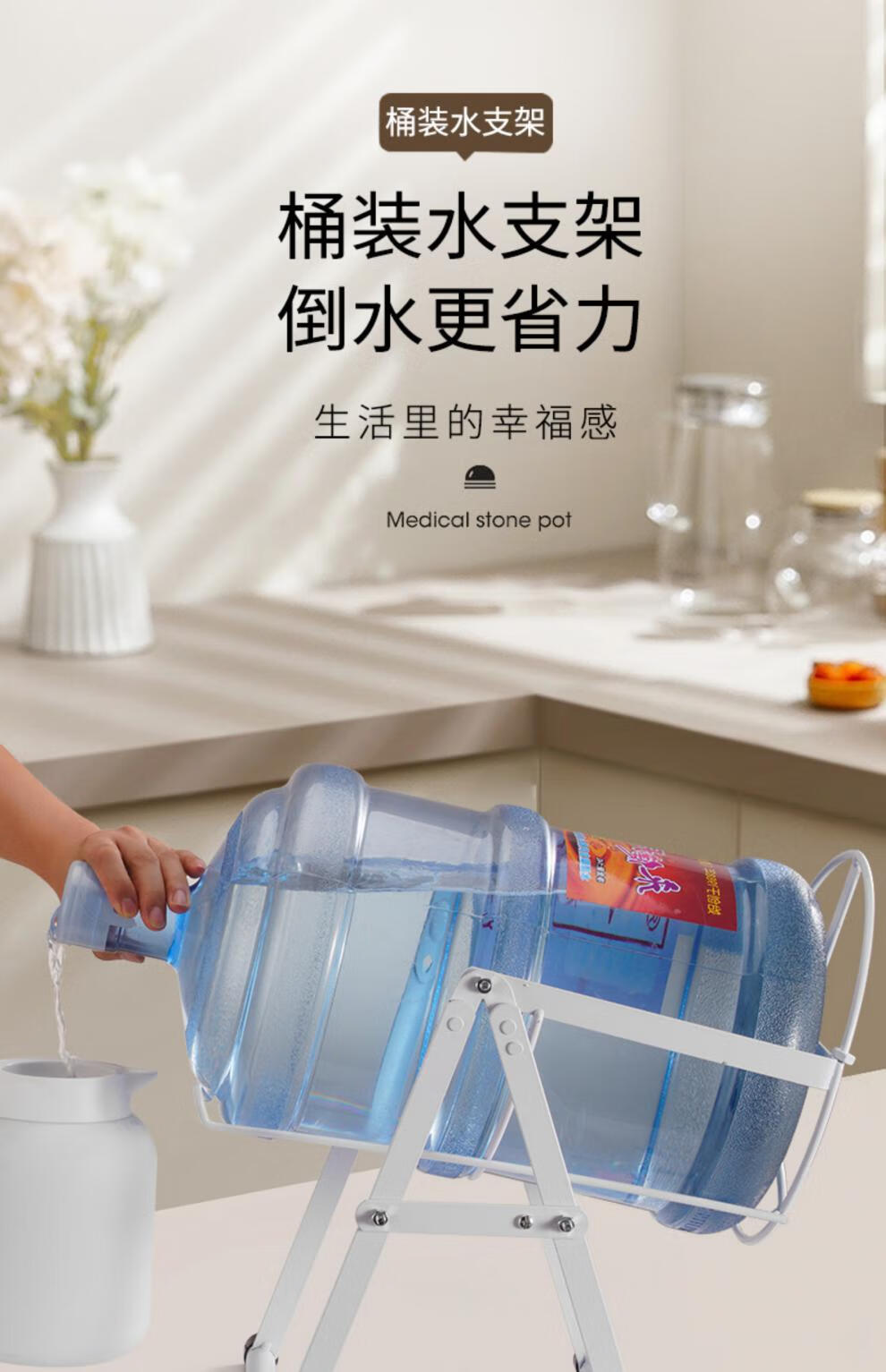 接运猫桶装水支架抽水压水饮水机台式倒立倒水取水器倒置架大桶水 【三角款】白色适用【12-17】升