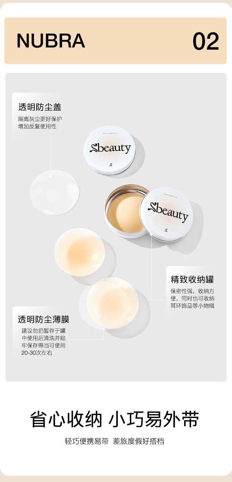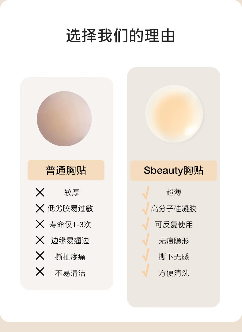 sbeauty徐璐4.0有胶超薄隐形硅胶胸贴乳贴无感贴女夏薄吊带 有胶两对装(赠清洗液)