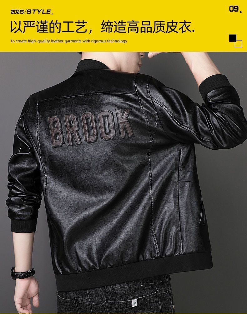 Кожаная мужская куртка Playboy Haining, большой размер, мягкая кожа, новинка 2025 года, осенне-зимний стиль, красивая бархатная корейская куртка, мужская куртка, черный бархат, размер XL Рекомендуется 116-140 Джин Джин равен 0,5 кг