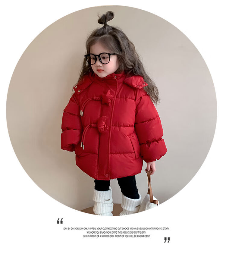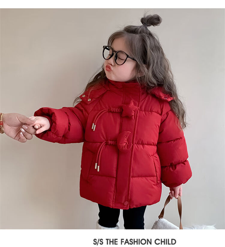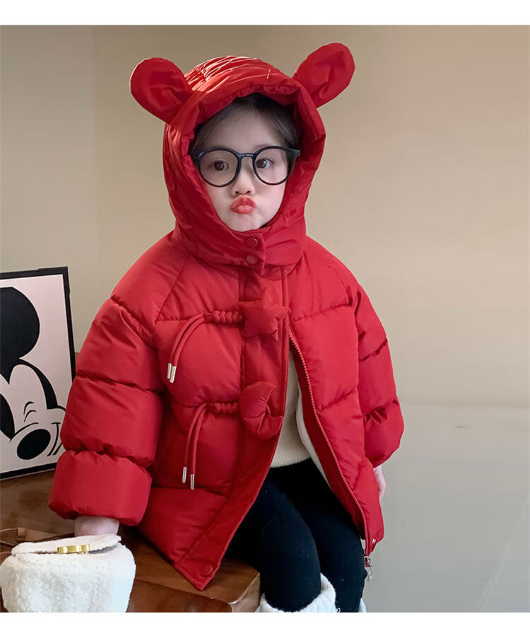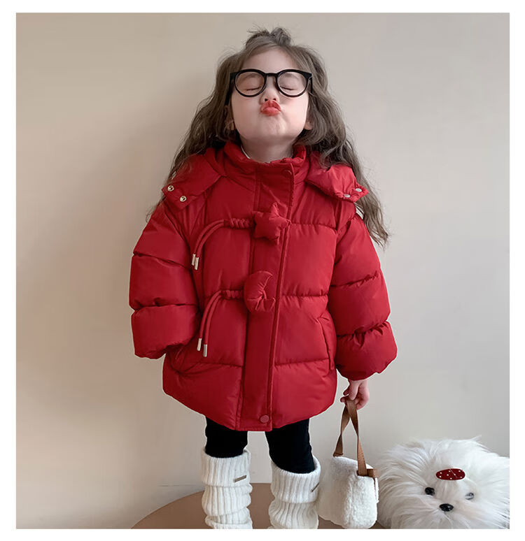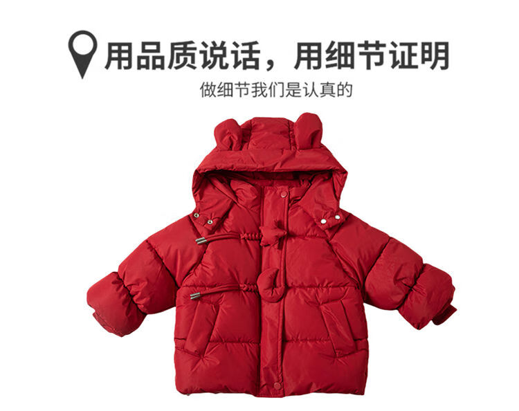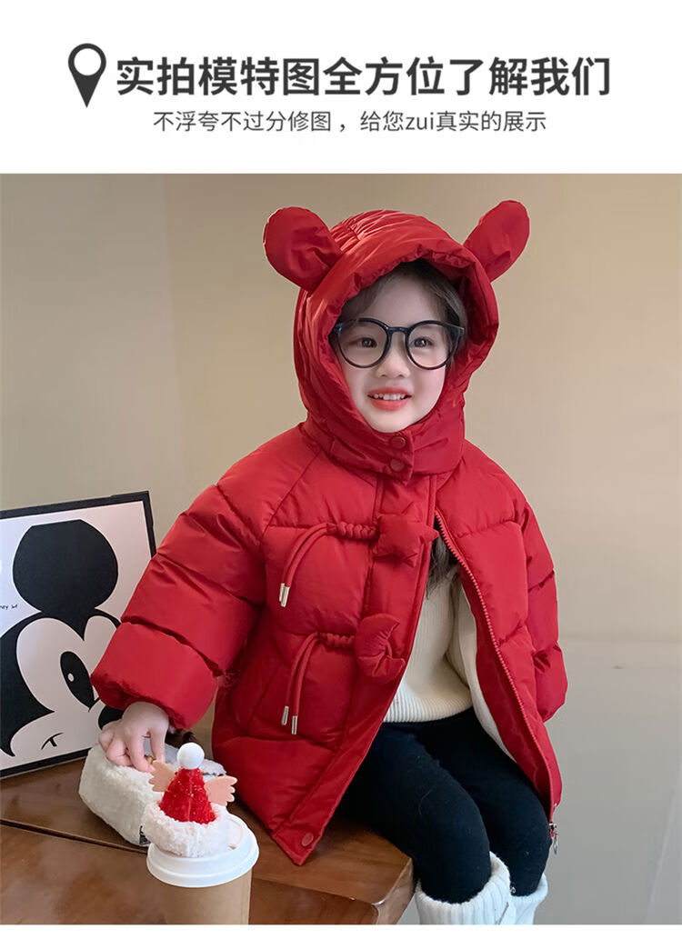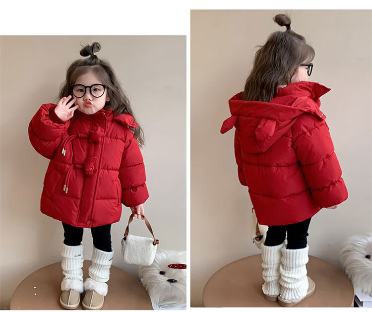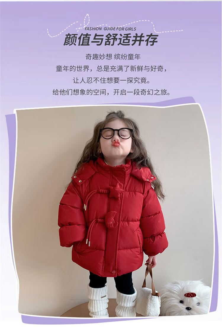 女童冬季新年棉服2024新款月亮棉衣儿童过年拜年服女宝宝红色棉袄 红色 90 90cm