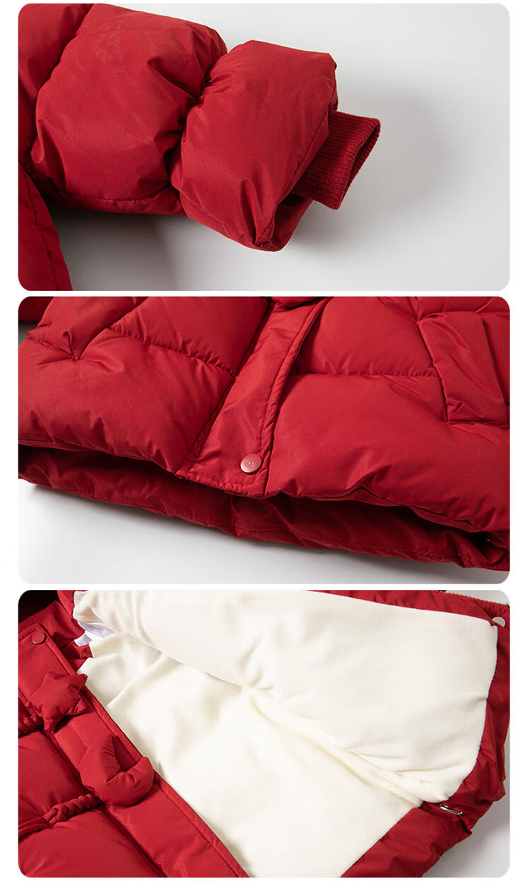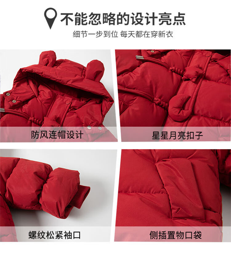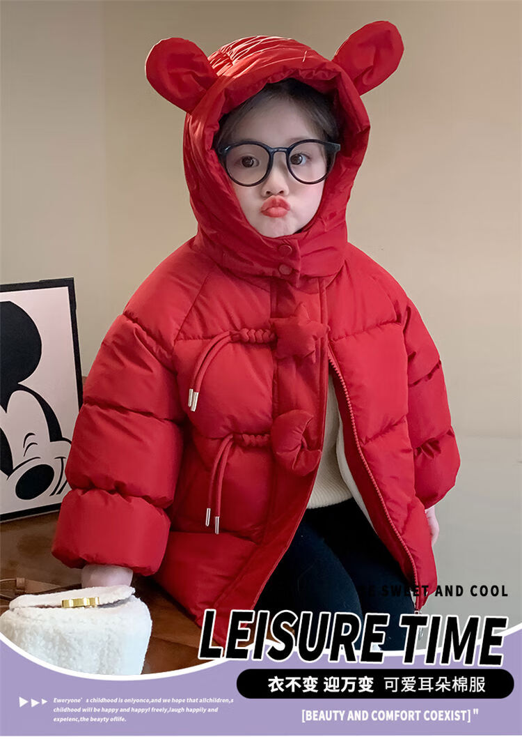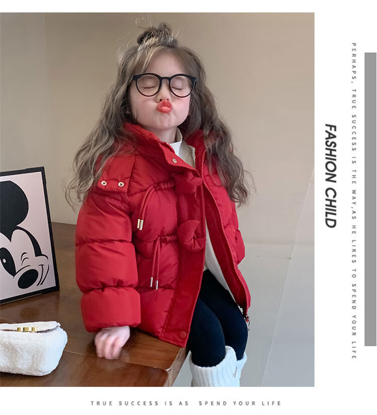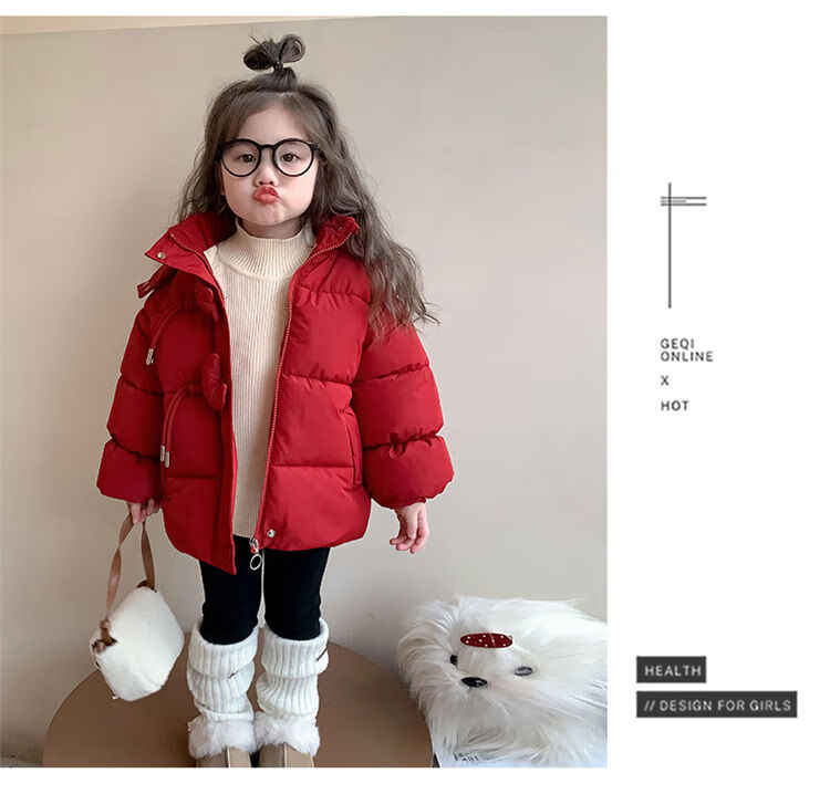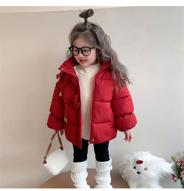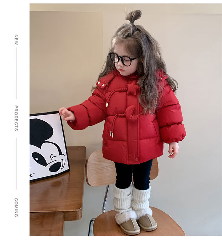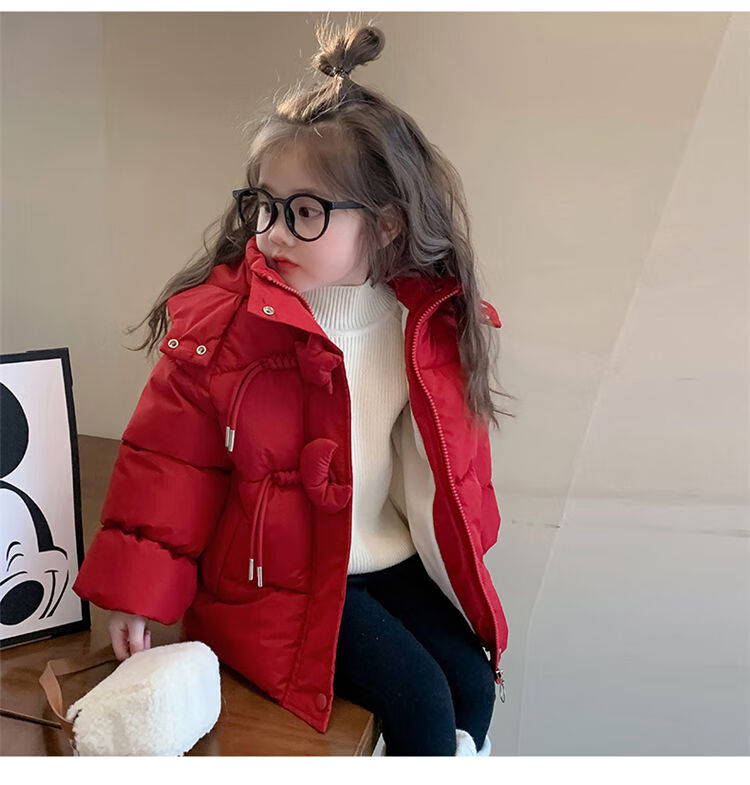 女童冬季新年棉服2024新款月亮棉衣儿童过年拜年服女宝宝红色棉袄 红色 90 90cm