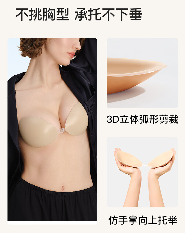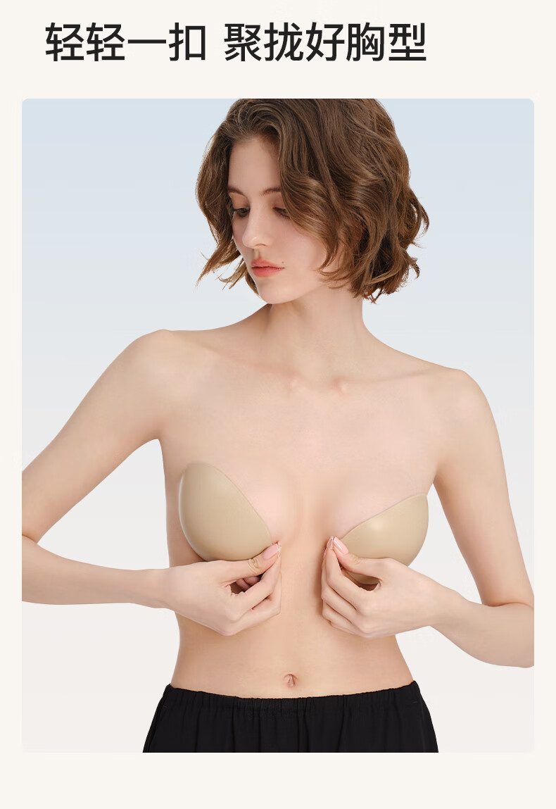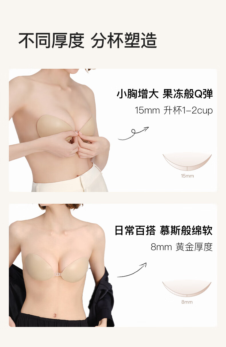 聚拢硅胶胸贴隐形无痕防下垂乳贴显大防凸点上托内衣婚纱用 2件装-升杯款M码_(厚约15mm)