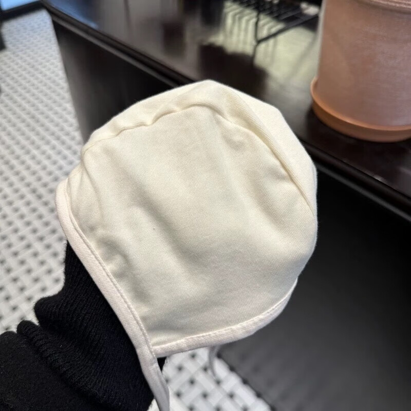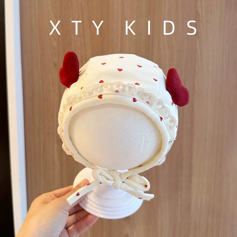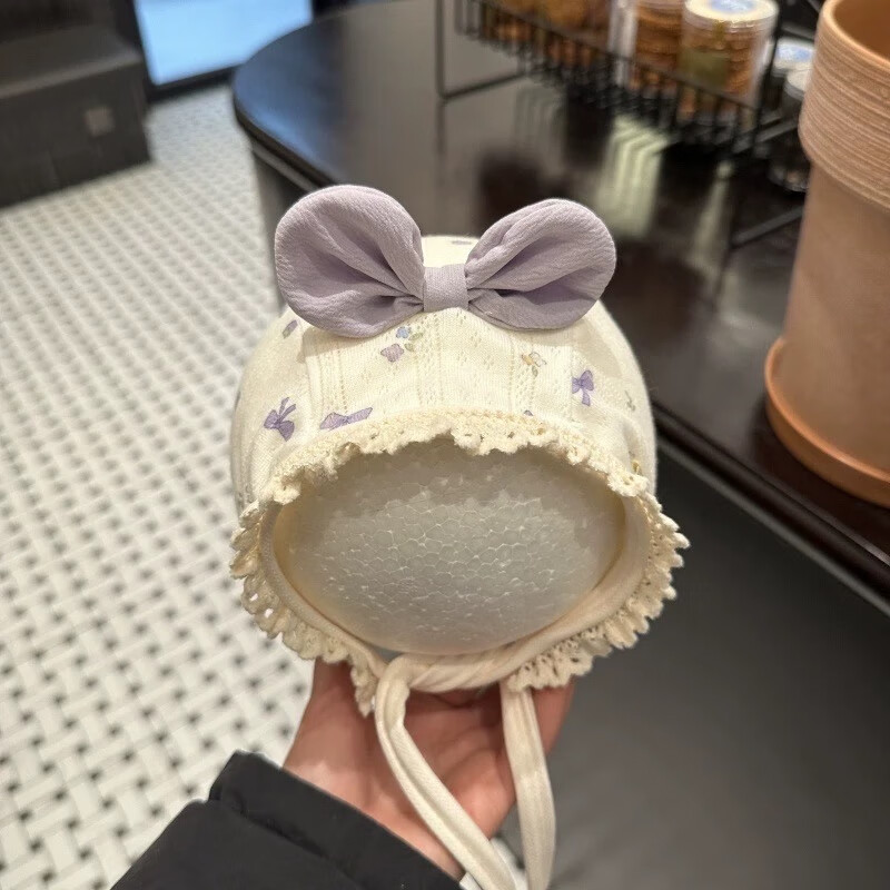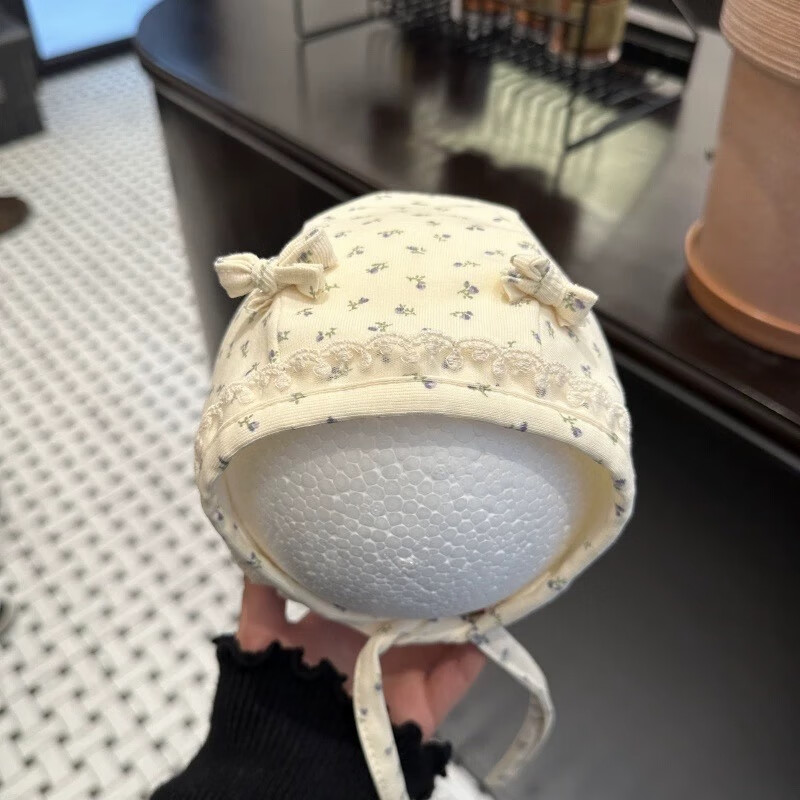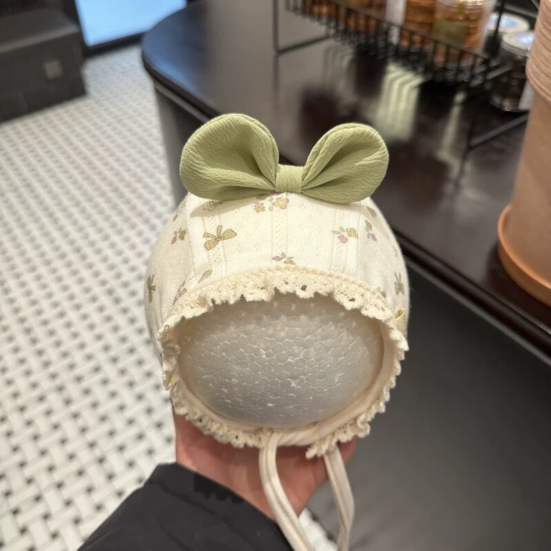 宝宝帽子春秋护耳帽可爱韩版纯棉系带宫廷帽婴幼儿出游包脸帽胎帽 米色_蝴蝶结 170 0-6个月帽围36-40cm_均码