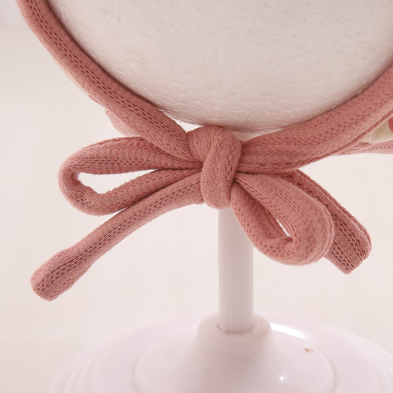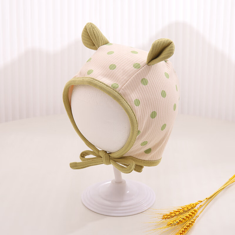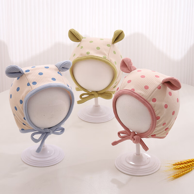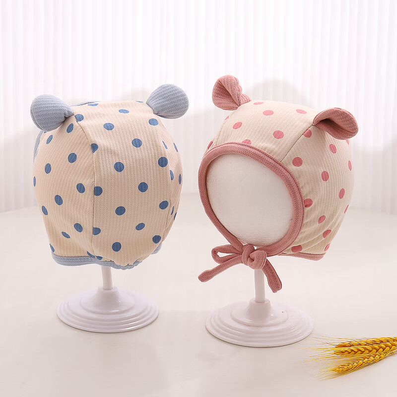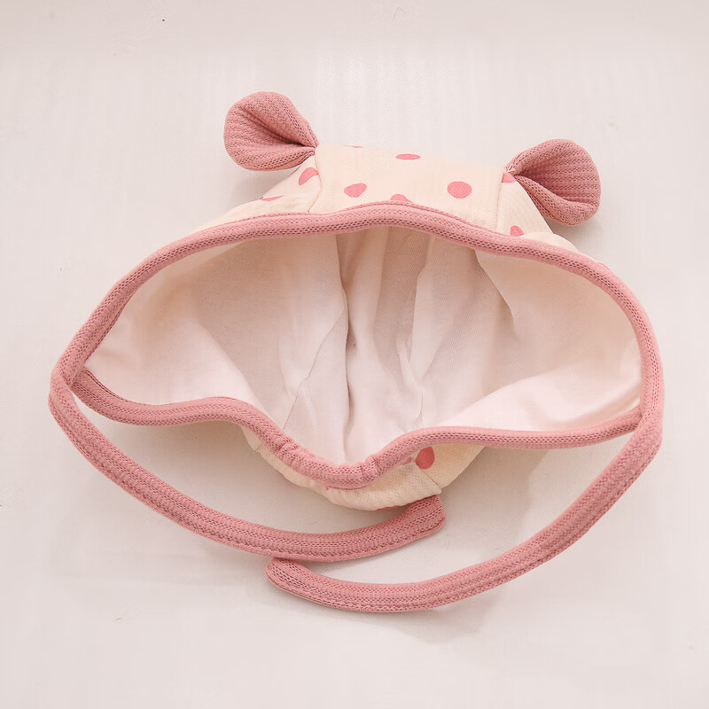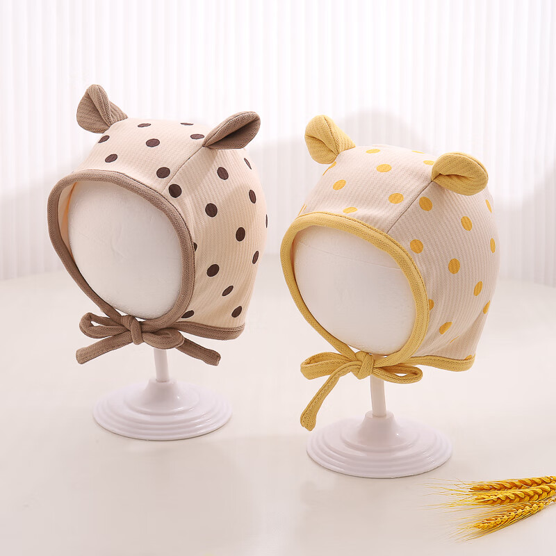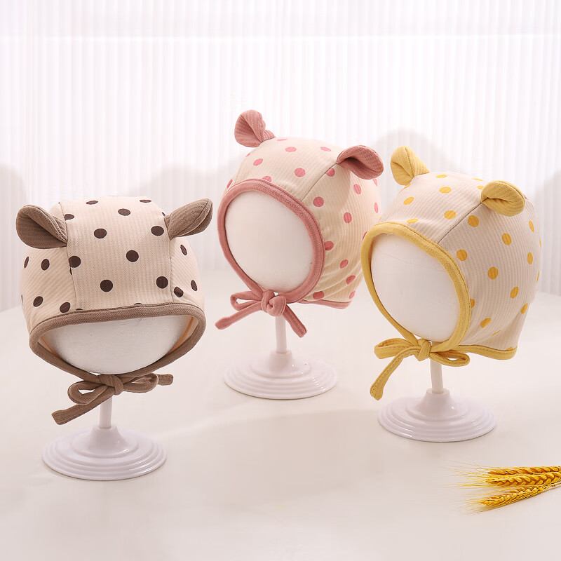 婴儿帽子春秋季可爱超萌婴幼儿护卤门秋冬天新生儿男女宝宝护耳帽 卡其色_圆点耳朵系带胎帽 170 0-8个月_防风绳_34-44CM_可调节