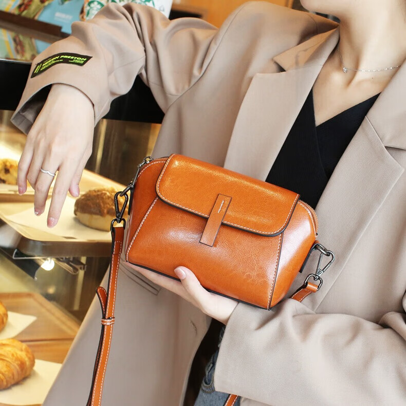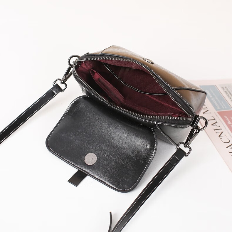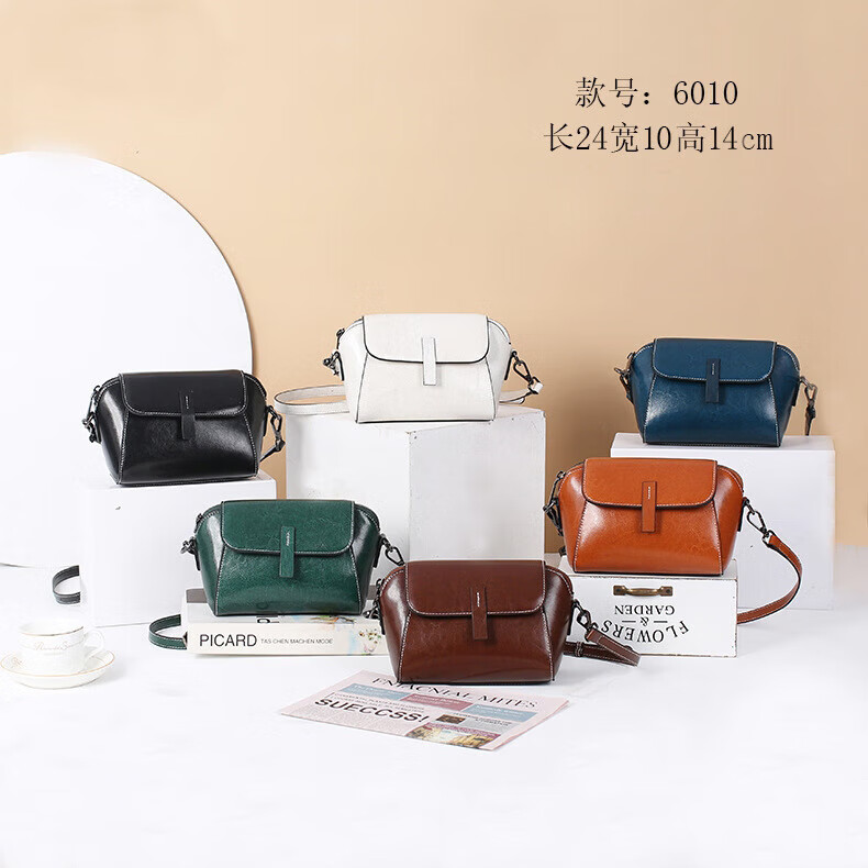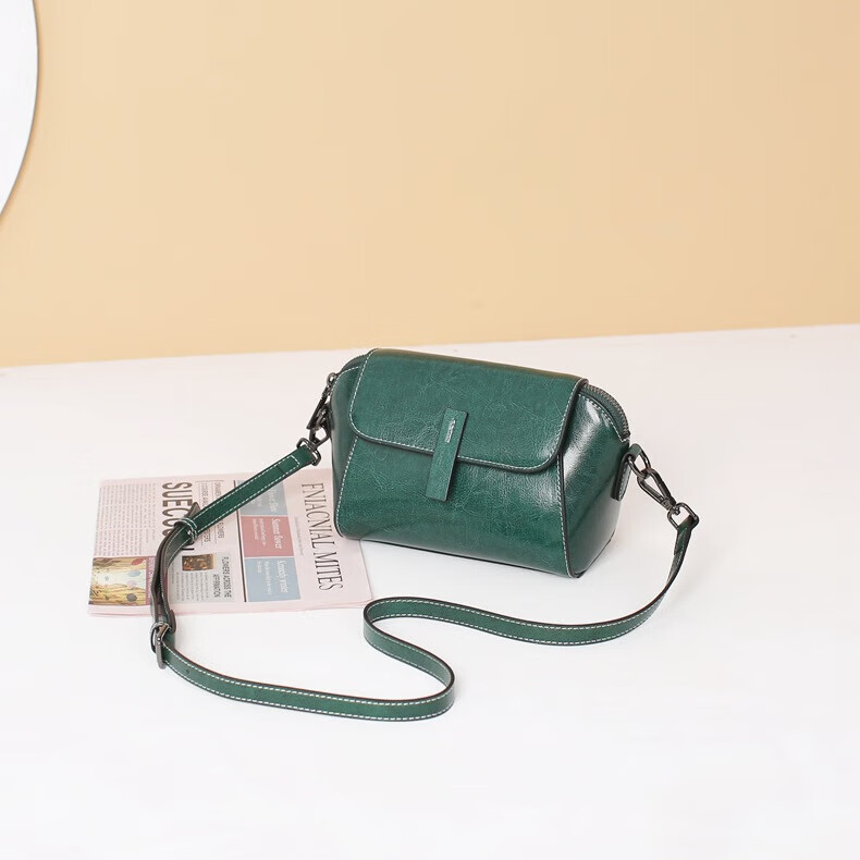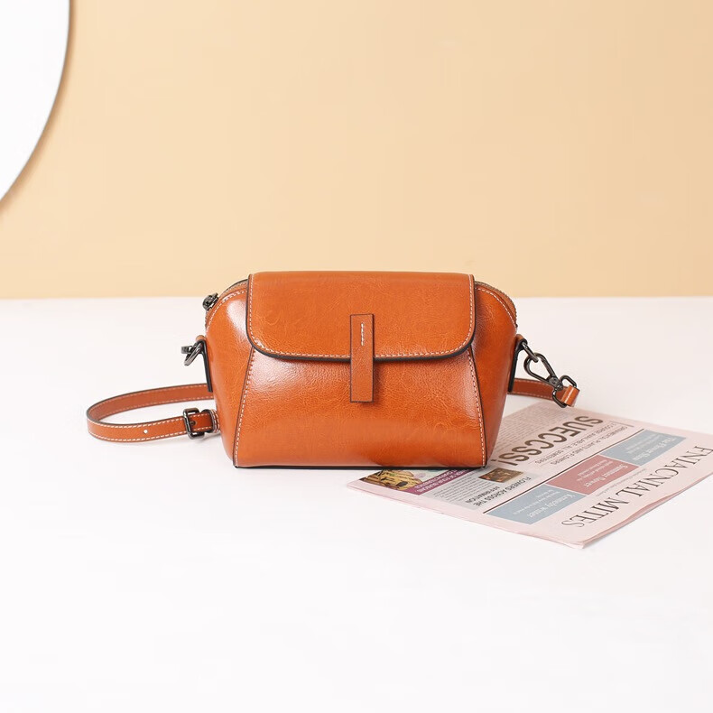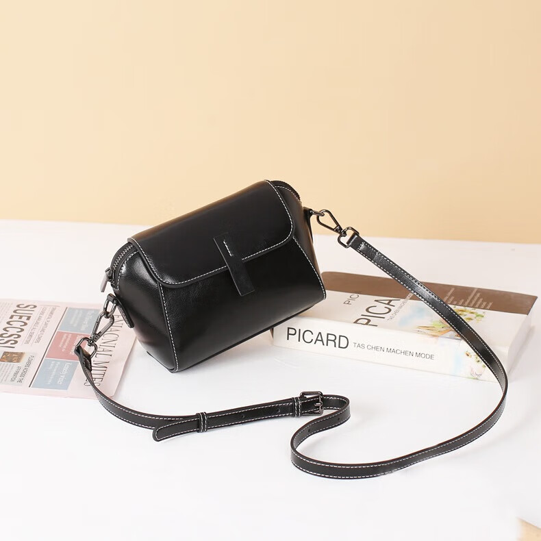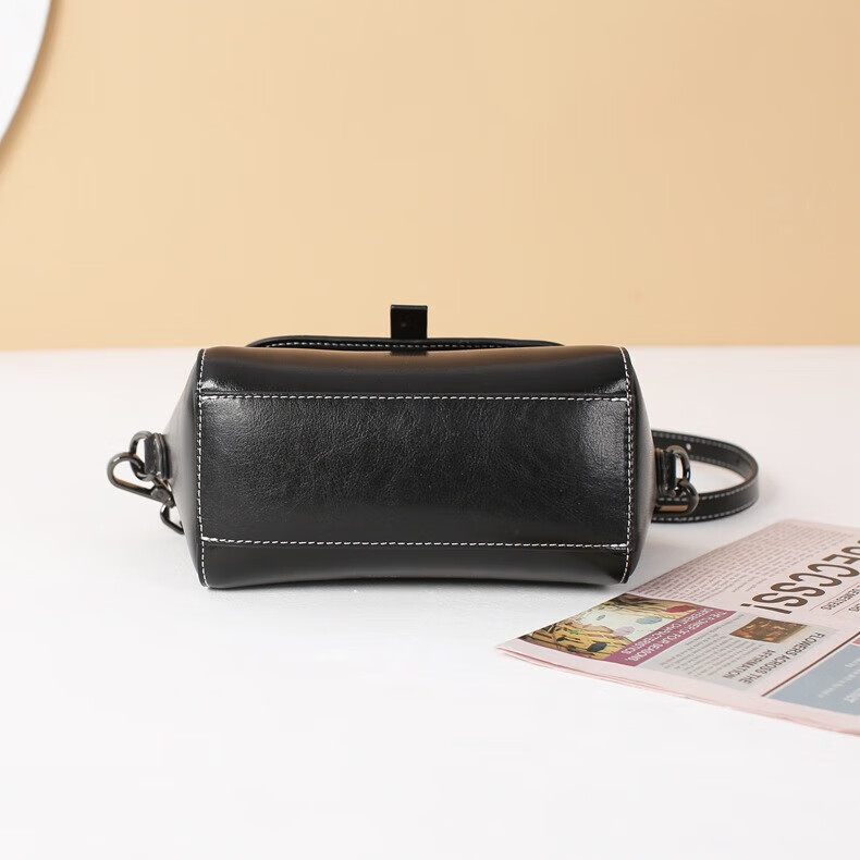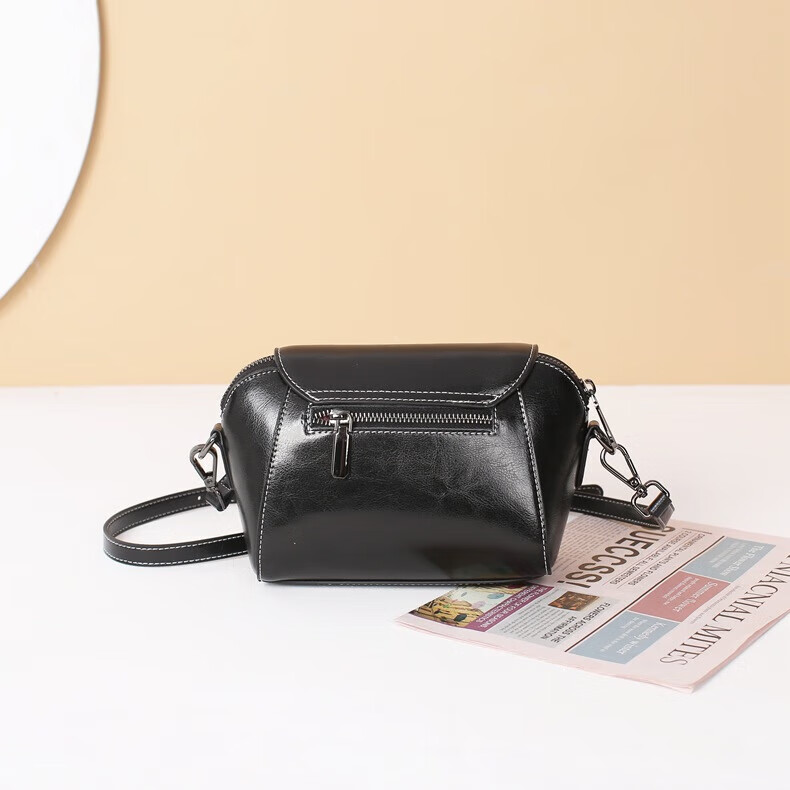 GOLDLION G+ Goldlion genuine leather women's bag fashionable retro shell bag new spring and summer waxed cowhide shoulder crossbody bag for women black in stock