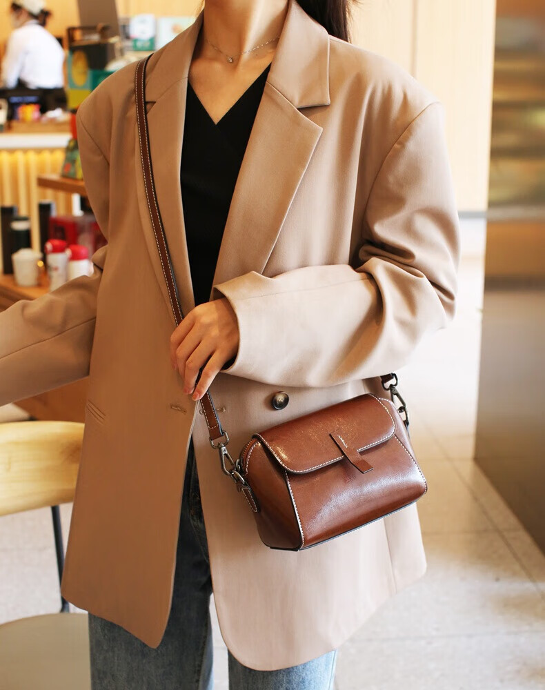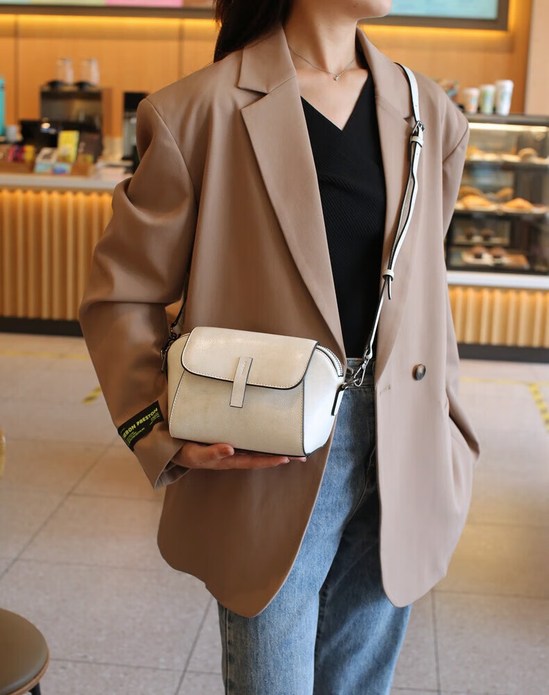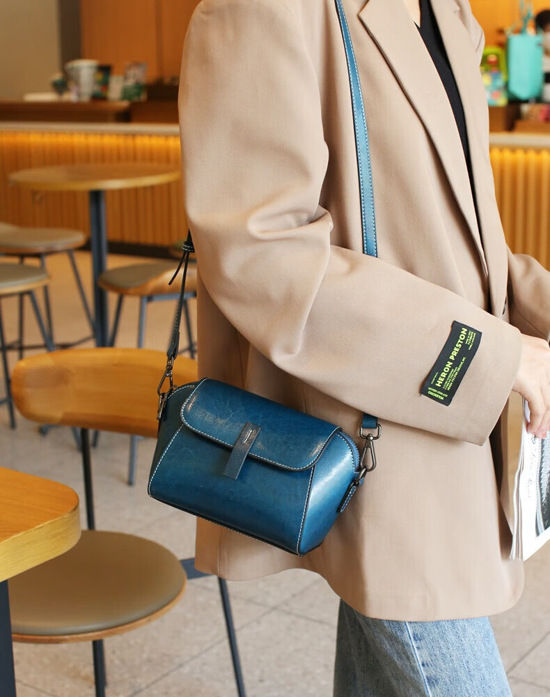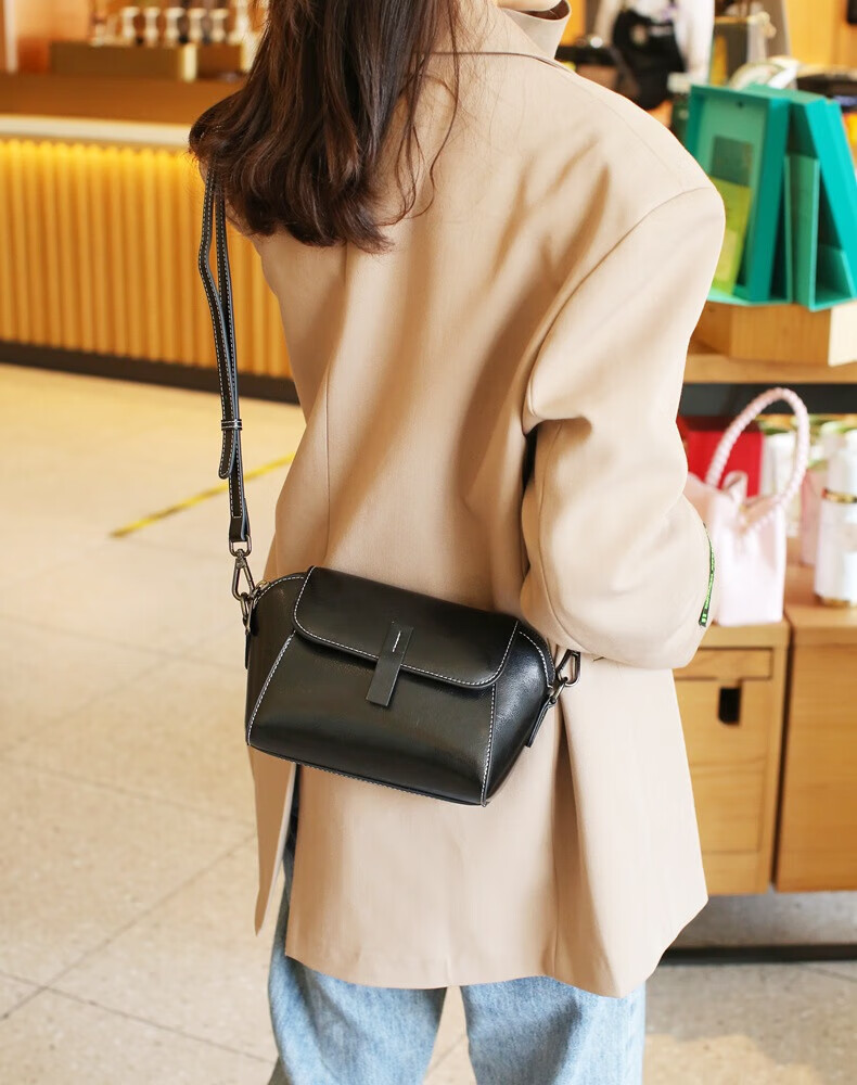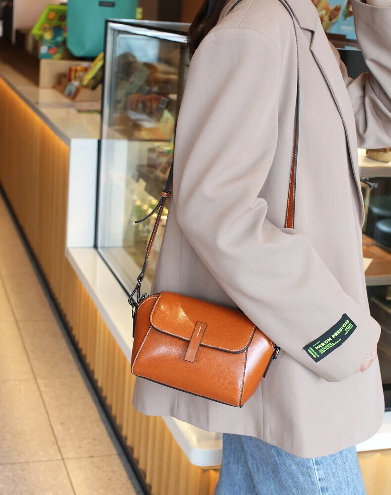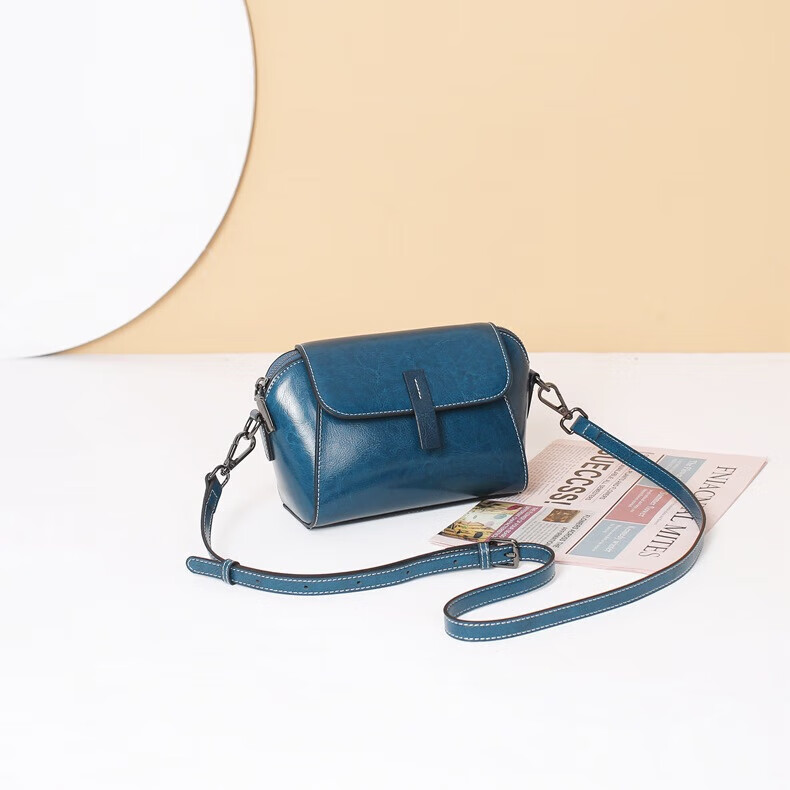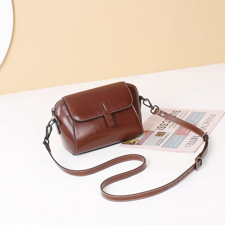 GOLDLION G+ Goldlion genuine leather women's bag fashionable retro shell bag new spring and summer waxed cowhide shoulder crossbody bag for women black in stock