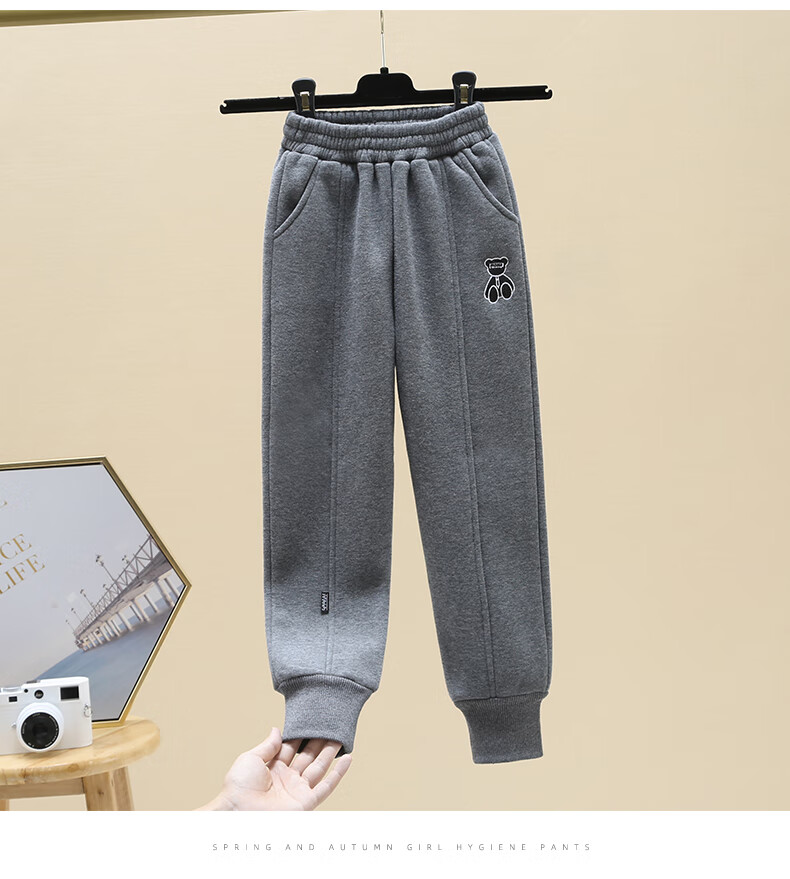 Dormir Xiaohongshu pantalones populares para niñas otoño e invierno 2025 nuevos pantalones deportivos todo en uno para niños grandes más pantalones deportivos de terciopelo Estilo occidental para niñas y niños gris más terciopelo tamaño altura recomendada 105115 aproximadamente 120