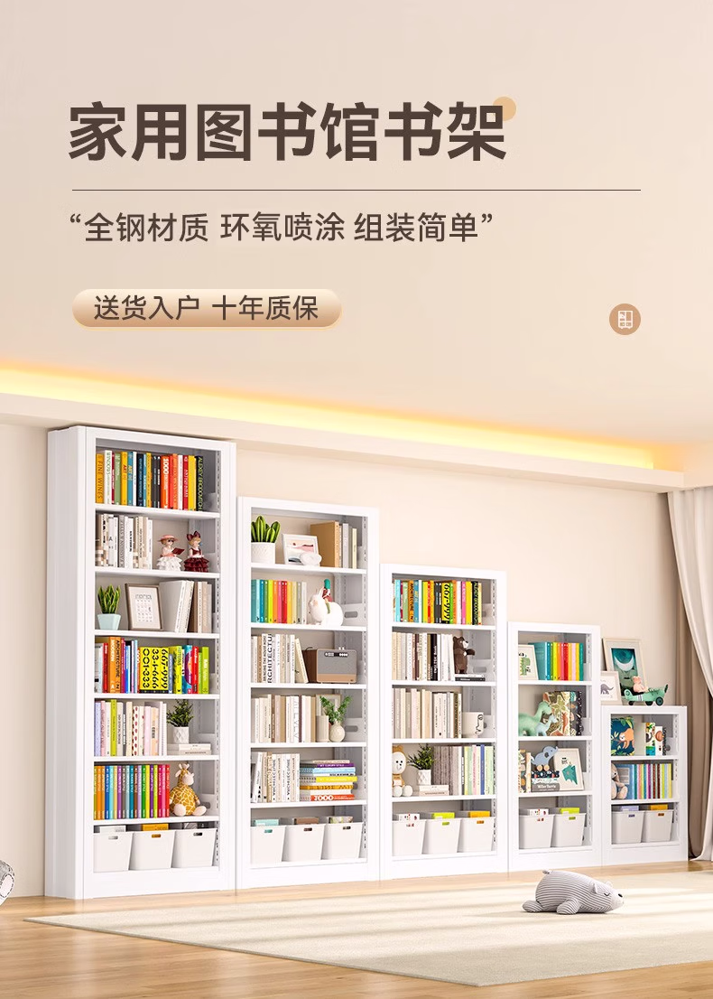 飒望德国书架立式落地书柜置物架钢制图书馆落地体靠墙客厅家用储物  三层1m长0.3m宽1.2米高防倒加厚碳钢
