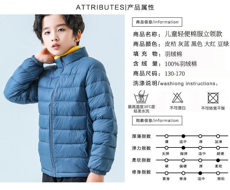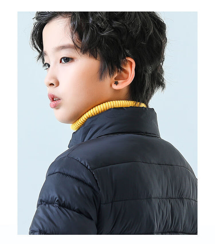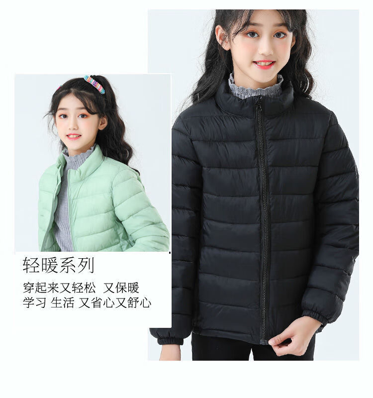 Children's lightweight cotton coats for boys and girls, medium and large children's lightweight cotton coats, large children's large size autumn and winter coats, black 120 130, recommended height is about 120cm