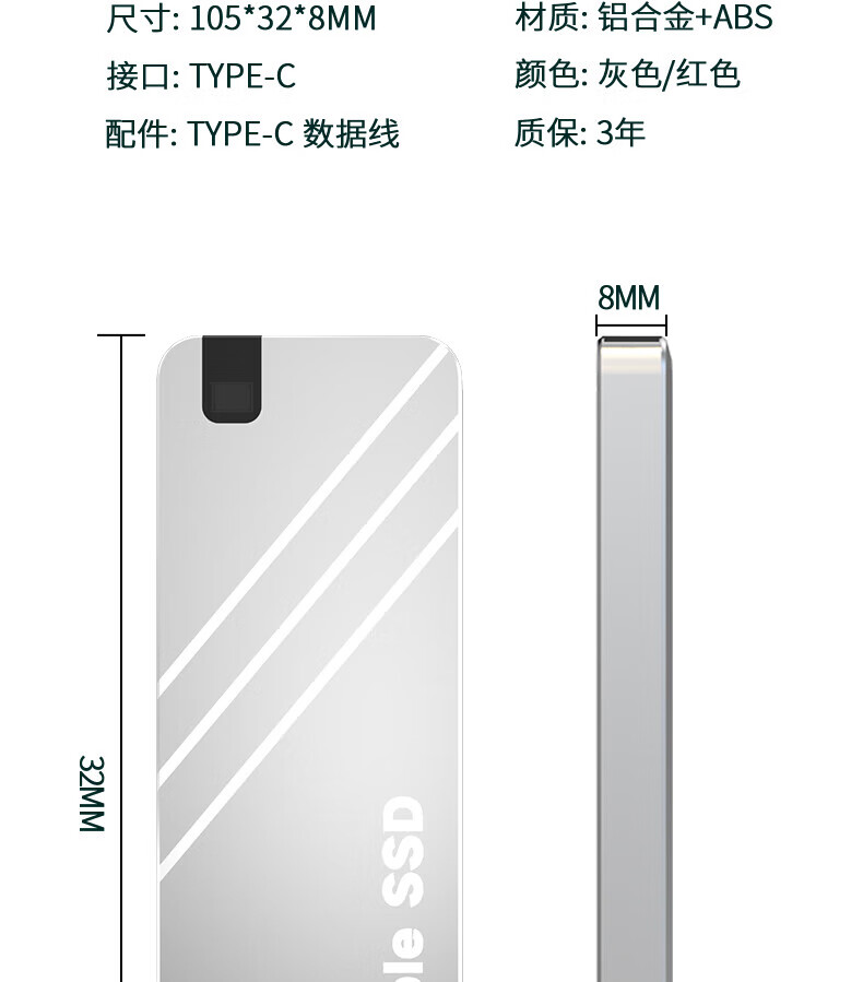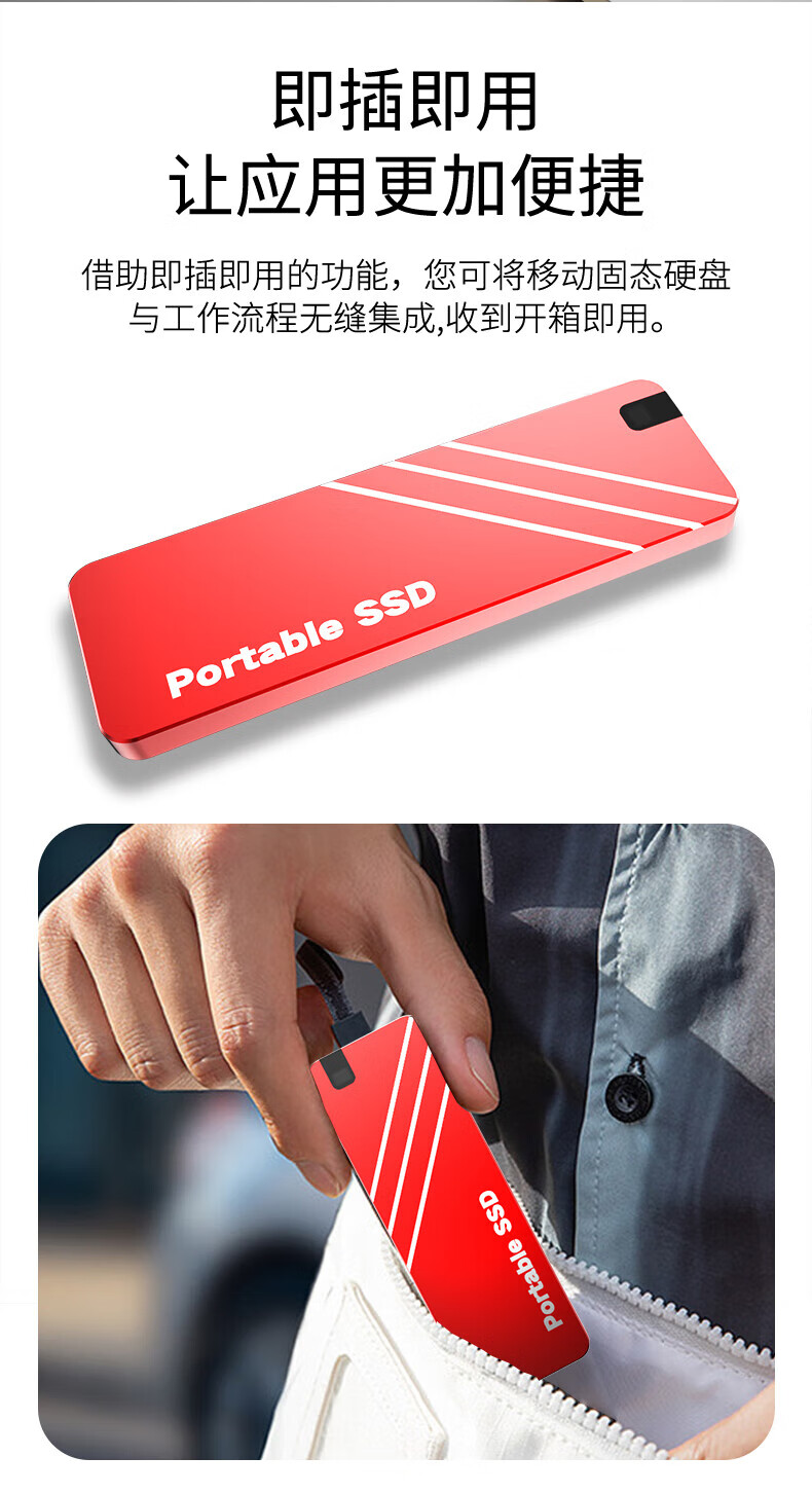 瑞快仕8TB手机电脑通用外置16TB大容量便携移动固态硬盘存储USB直插式 红【旗舰芯片4.0高速传输17代】 8TB