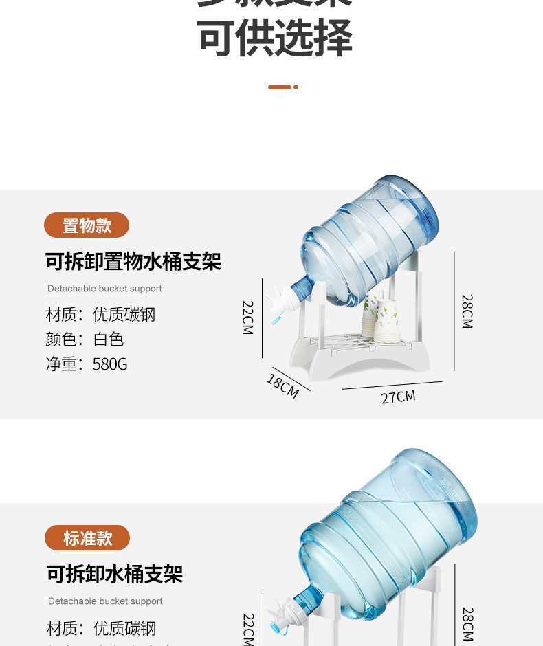 Qiao Shizi bottled water dispenser bracket large mineral water dispenser pure water bucket shelf inverted water dispenser automatic pumping white heightened bracket + 2 water nozzles + crowbar