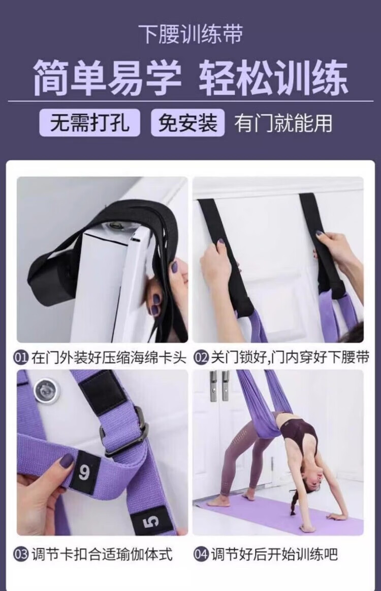 古慕妮空中瑜伽吊绳绳拉伸展家用下腰训练器神器绳挂门上弹力倒立拉力 天空蓝加强加厚可承重720斤
