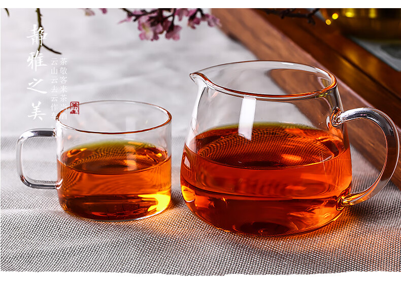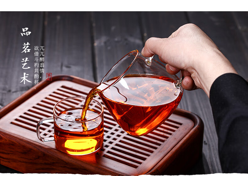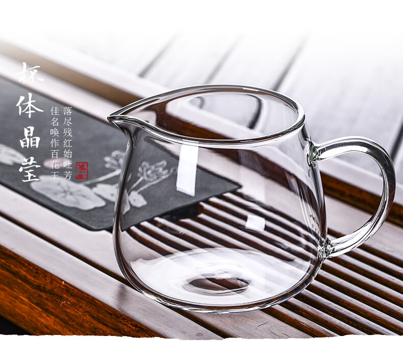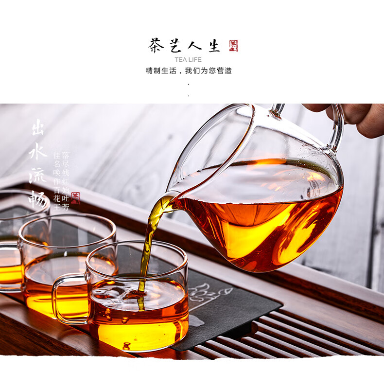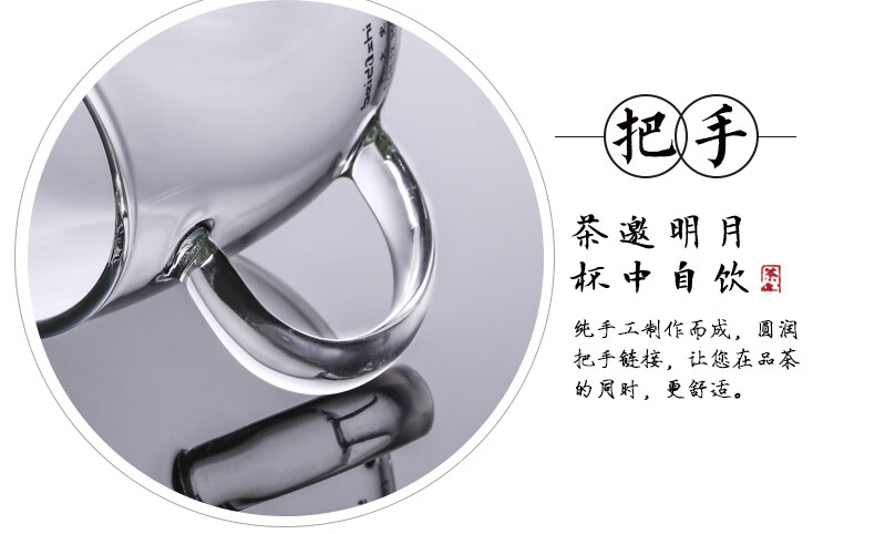 北大史透明玻璃公道杯纯手工加厚耐热倒茶分茶器功夫茶具茶海公杯 透明把手350ml