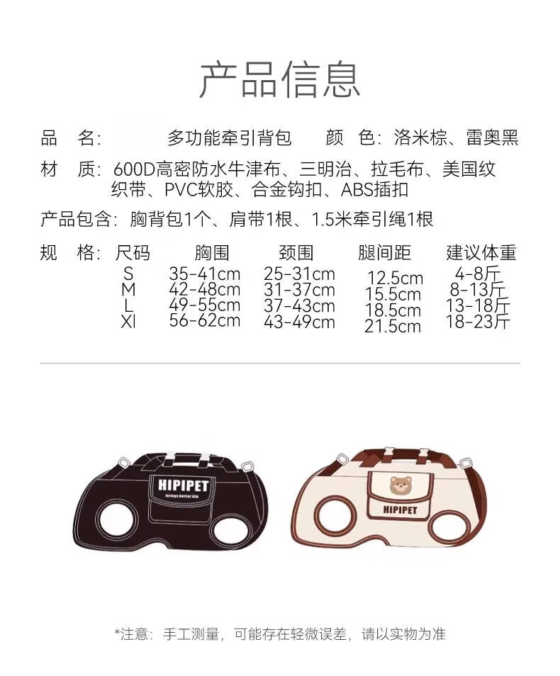 JCZS Sac à Main bandoulière Portable pour Chien, Petit Chien et Chat, Sac à bandoulière, Sac à emporter pour Animaux de Compagnie, Sac à Bretelles de Dessin animé, Marron Moka, Quatre Utilisations dans Un Paquet | facile à transporter longtemps, taille S, tour de poitrine 35-41 cm, tour de cou 25-31 cm, recommandé