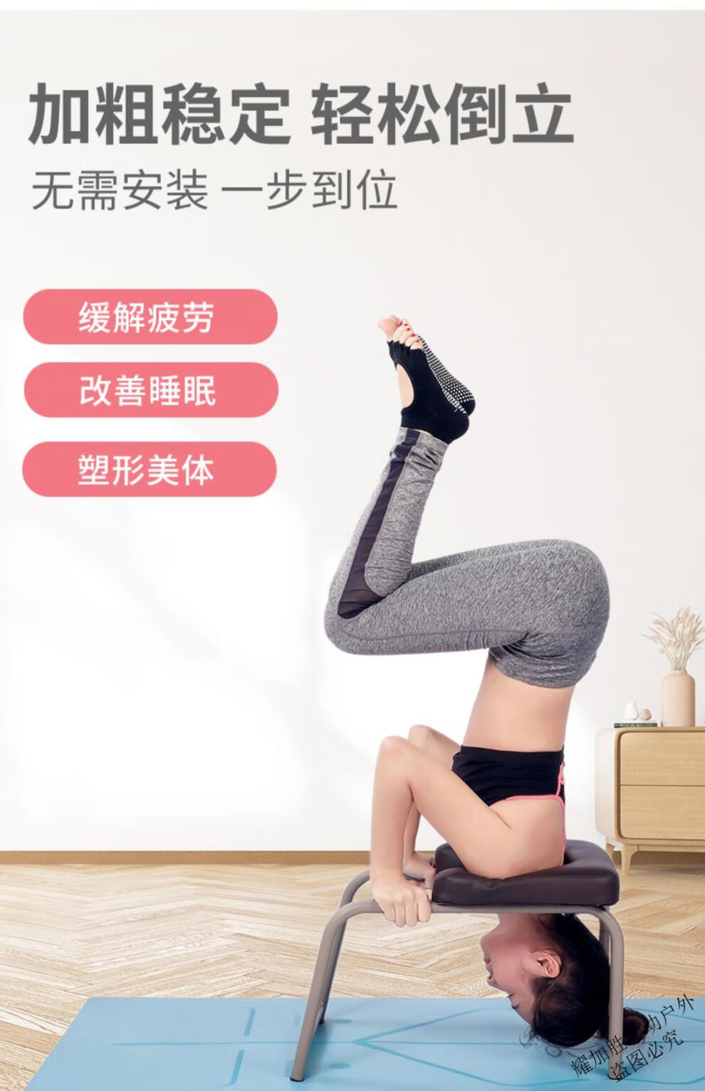 宰搂瑜伽倒立椅倒立凳子健身椅倒立神器家用倒立架辅助凳瑜珈椅倒立机 倒立椅-棕色皮革一体焊接无需