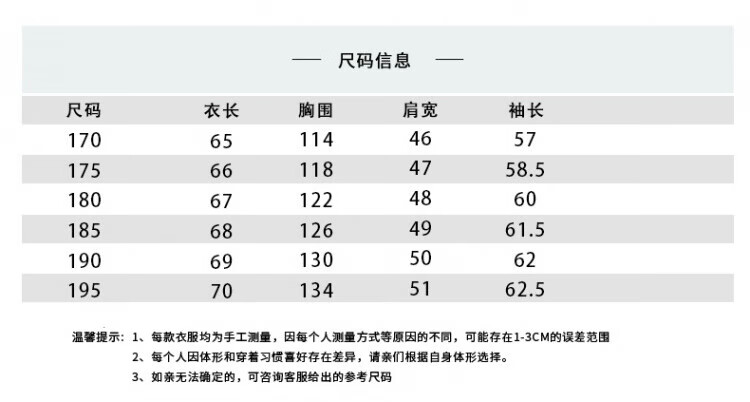 China (cm) 165 / 88-90 170 / 96-98 175 / 108-110 180 / 118-122 185 / 126-130