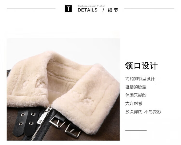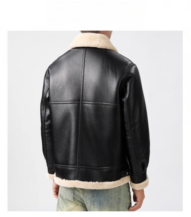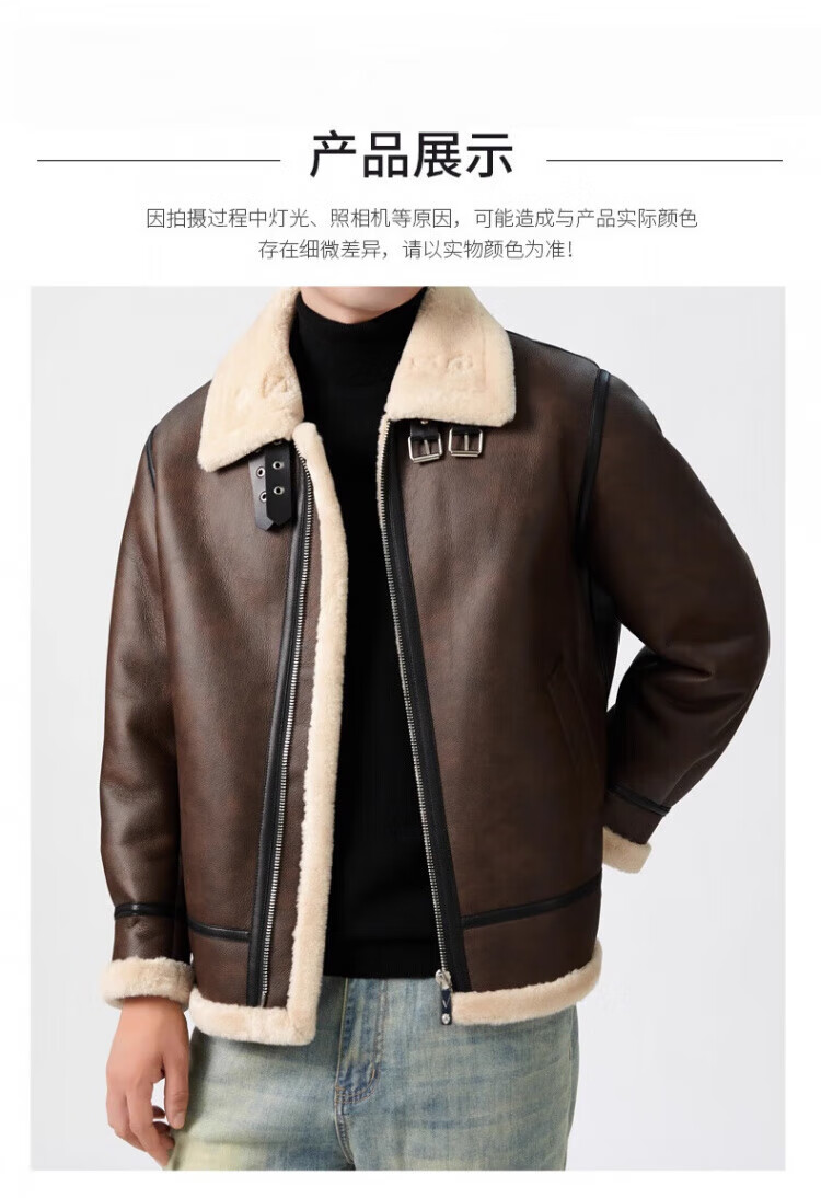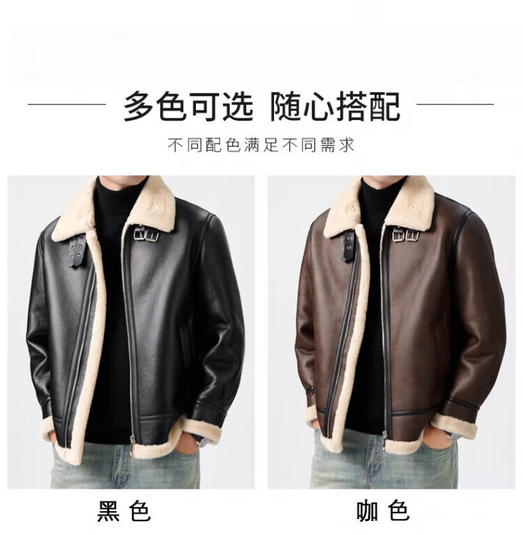 罗蒙(ROMON)皮毛一体加绒皮衣男士秋冬季羊羔绒舒适保暖外套加厚机车皮夹克男 黑色 【皮毛一体】 XL /180