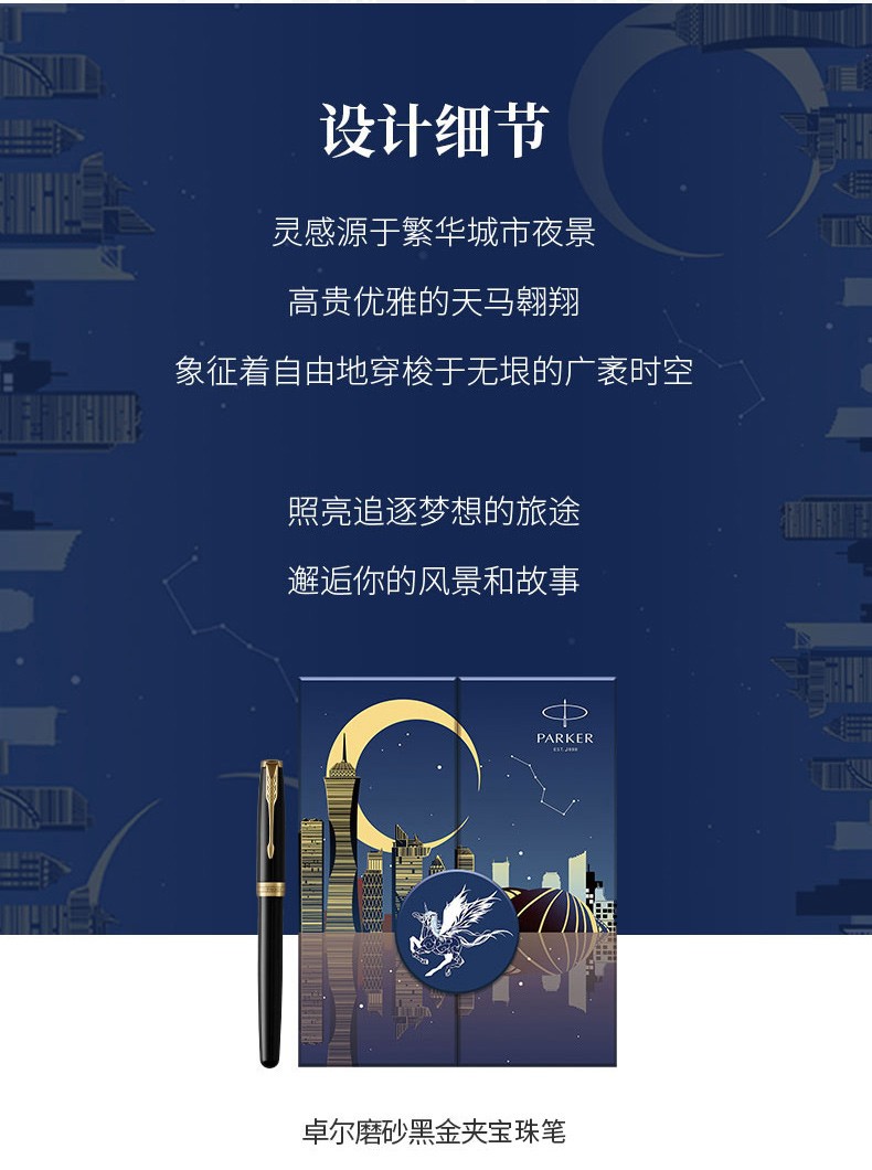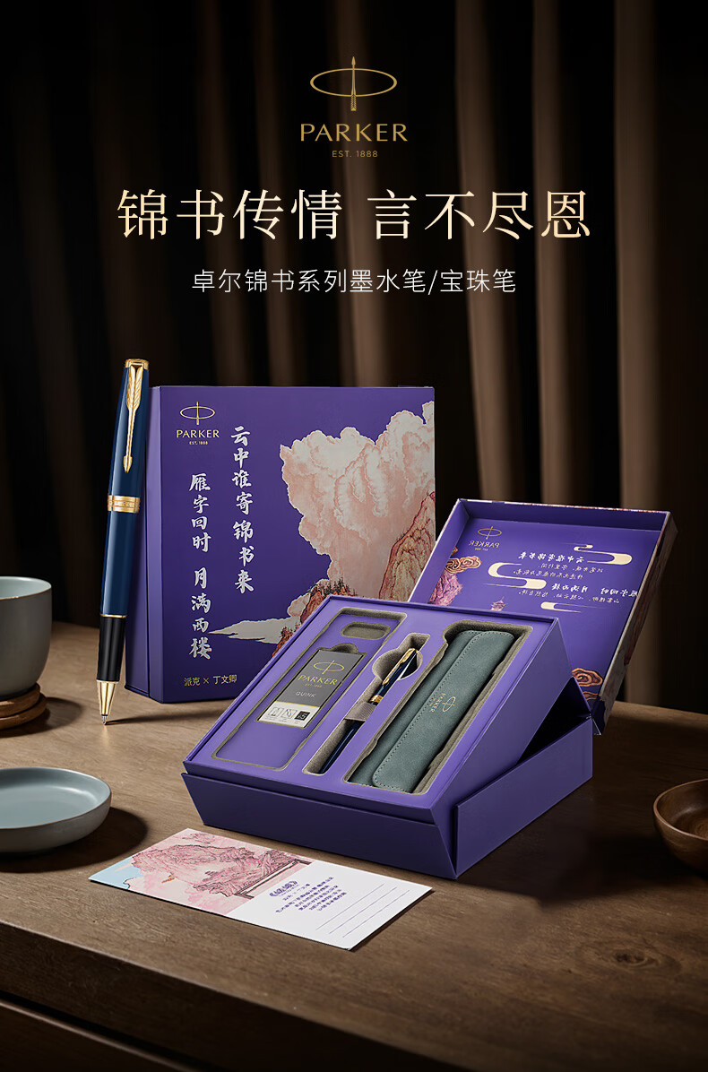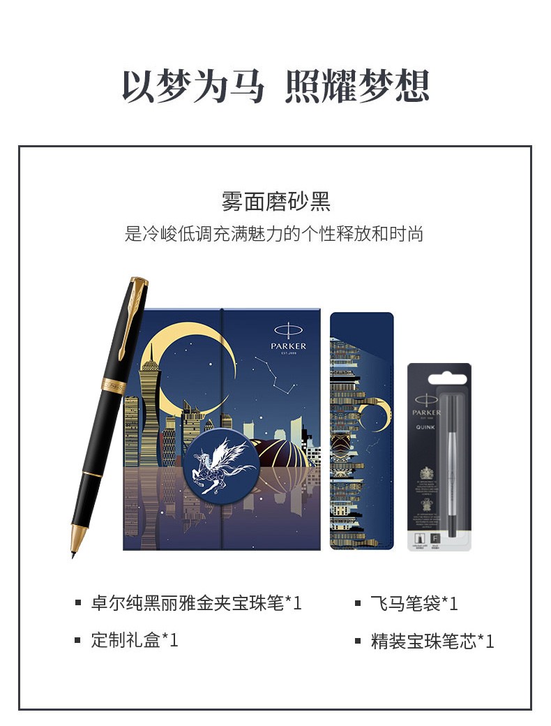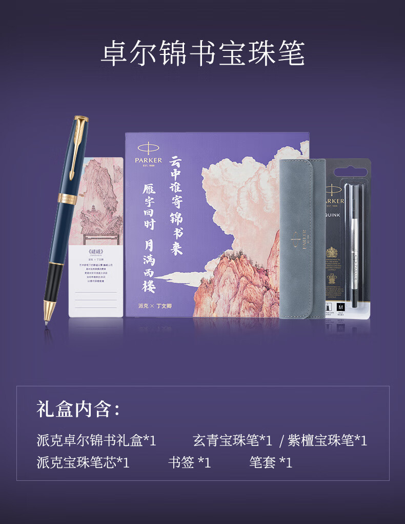 派克(PARKER)签字笔卓尔宝珠笔礼盒高端签字笔商务送礼刻字生日礼物轻奢高档礼品定制笔高端高奢礼物商务笔 派克卓尔玄青宝珠笔+锦书礼盒套装