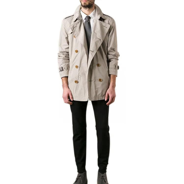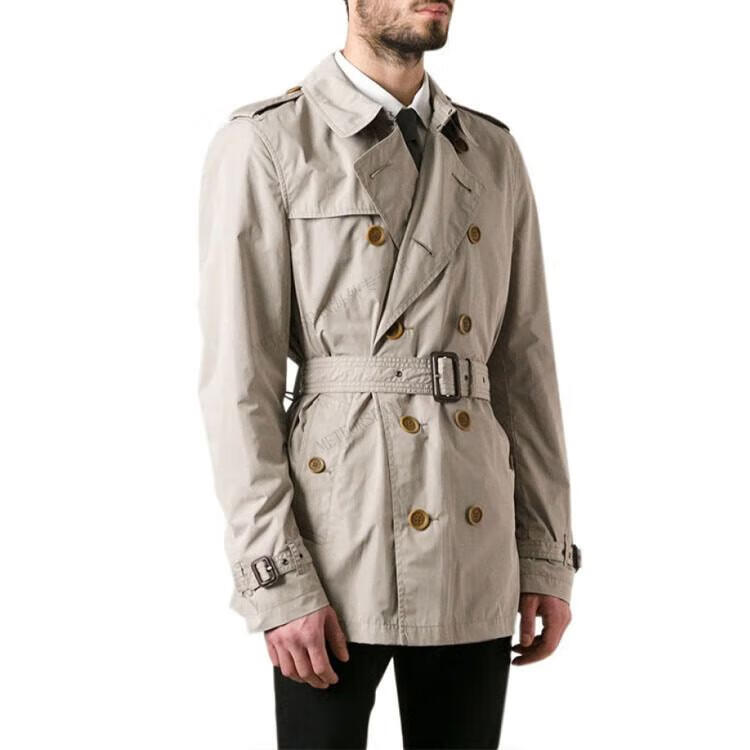 博柏利(BURBERRY)新年礼物纯色双排扣翻领腰带风衣男款卡其色 卡其色 均码 48