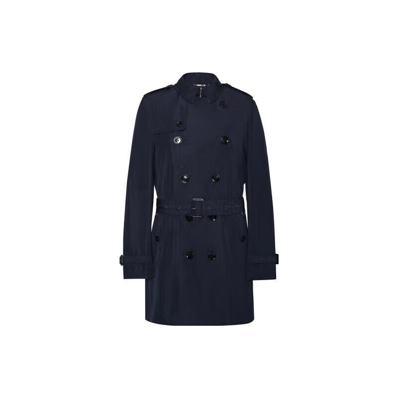 博柏利(BURBERRY)新年礼物纯色系带双排扣长袖风衣男款深蓝色 S
