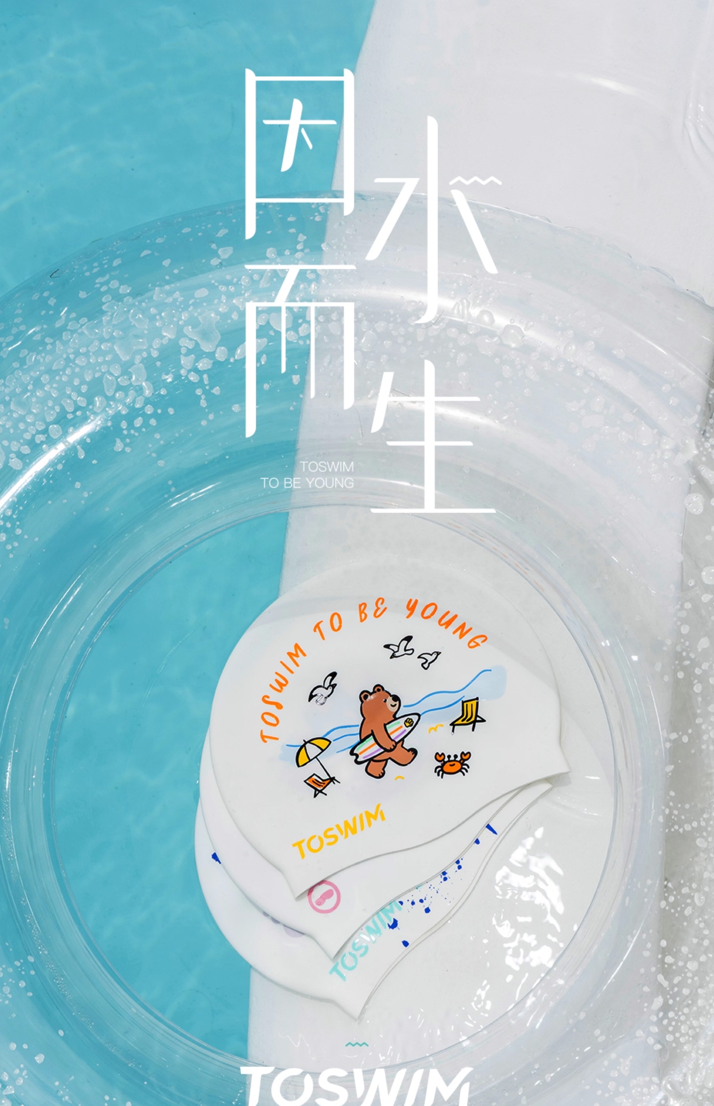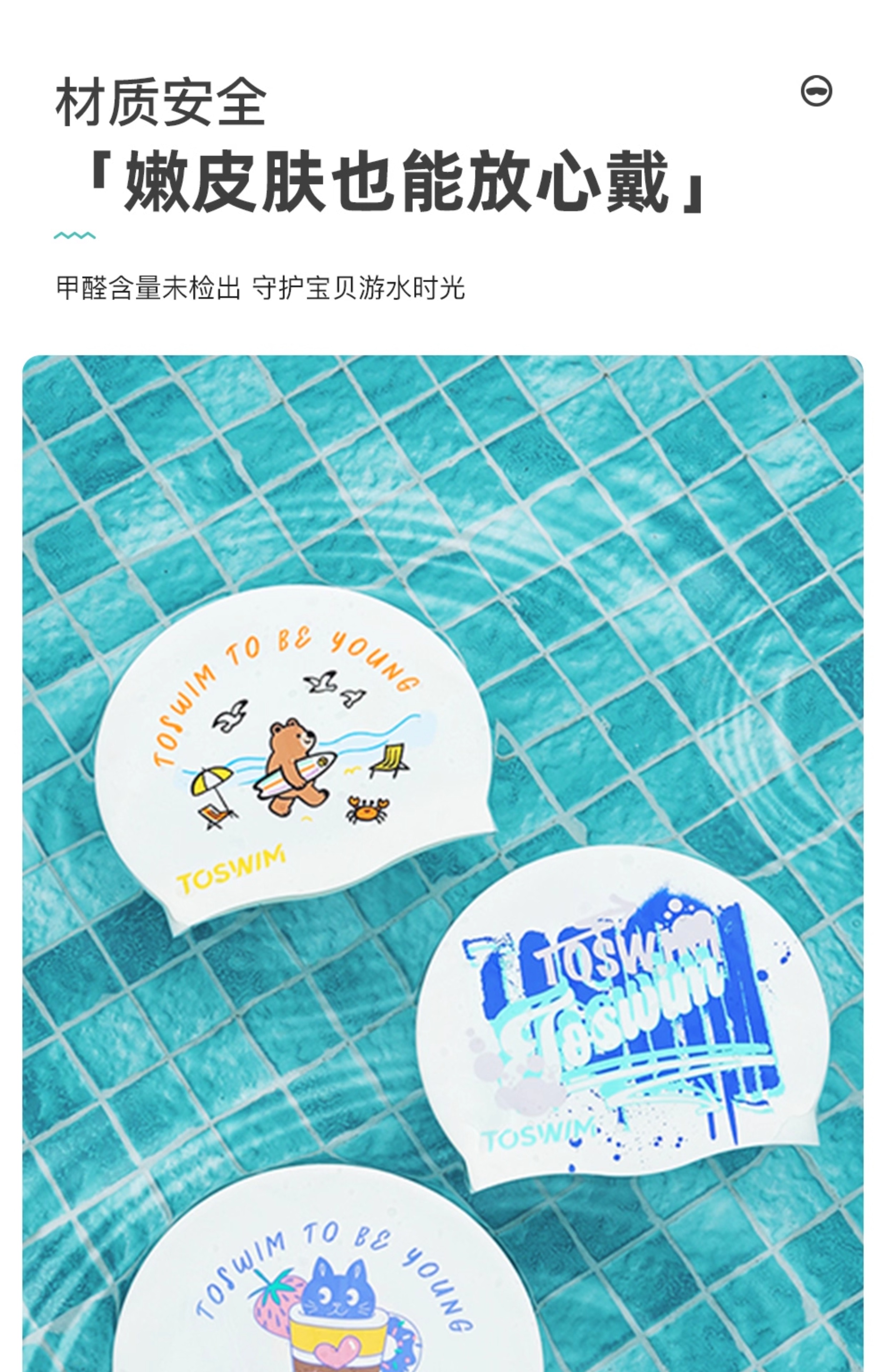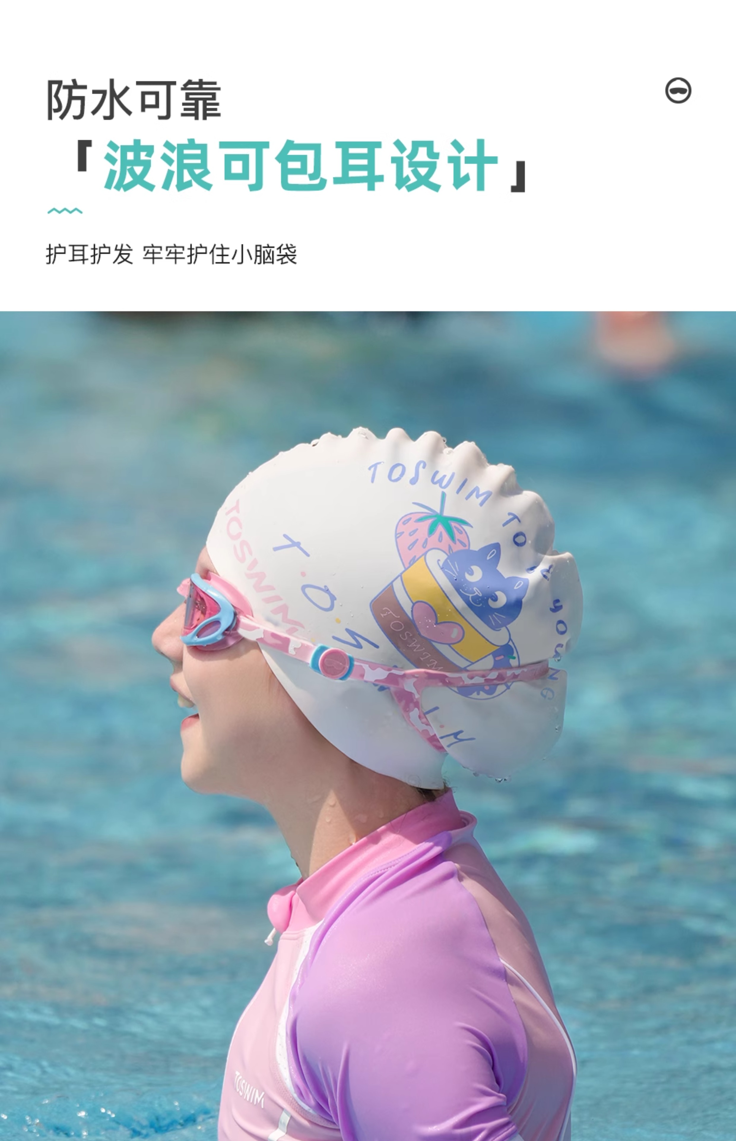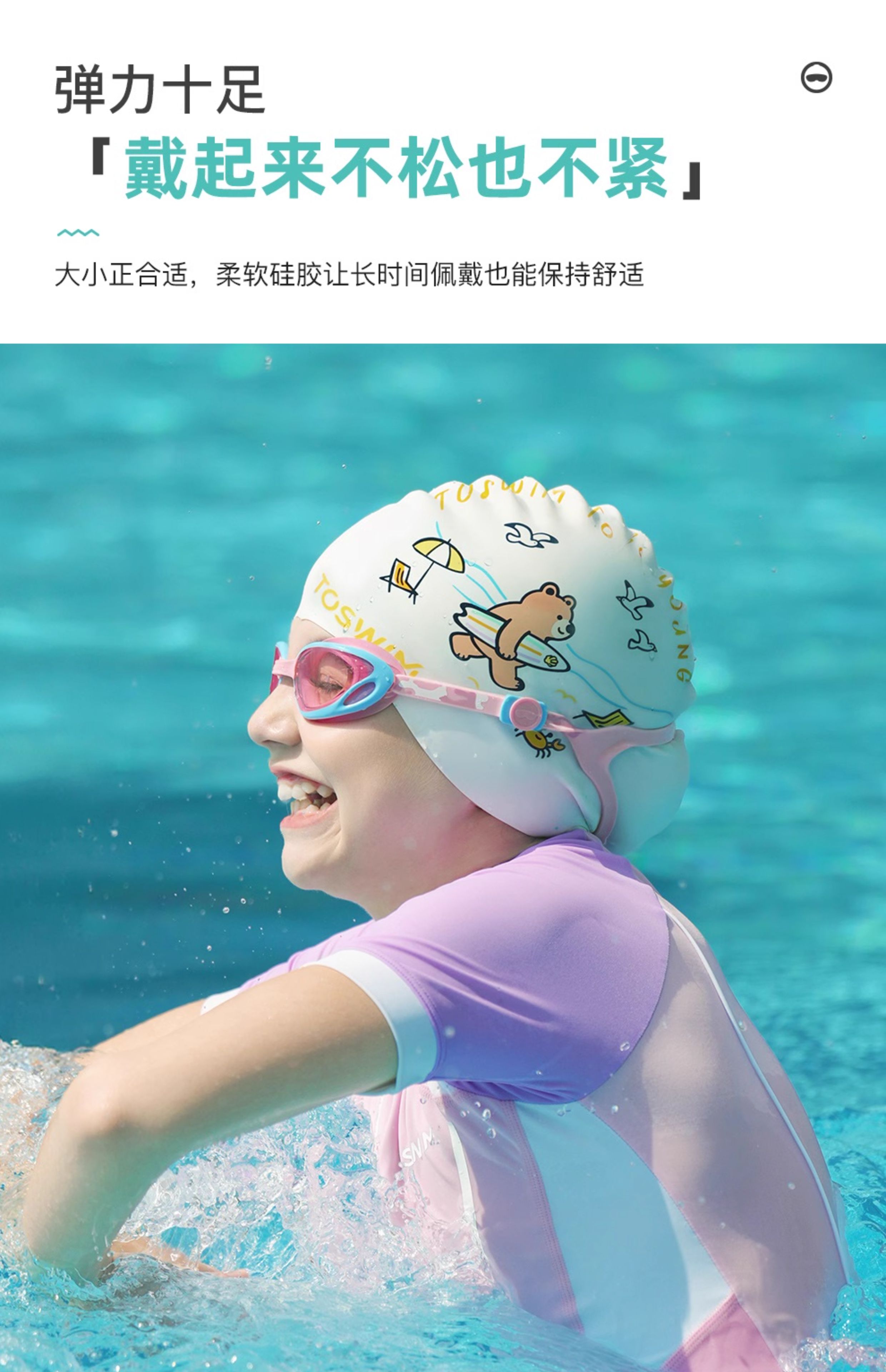 拓胜(TOSWIM)儿童泳帽女童男童游泳训练专用不勒头宝宝护耳卡通硅胶泳帽 【熊熊假日】泳镜+泳帽