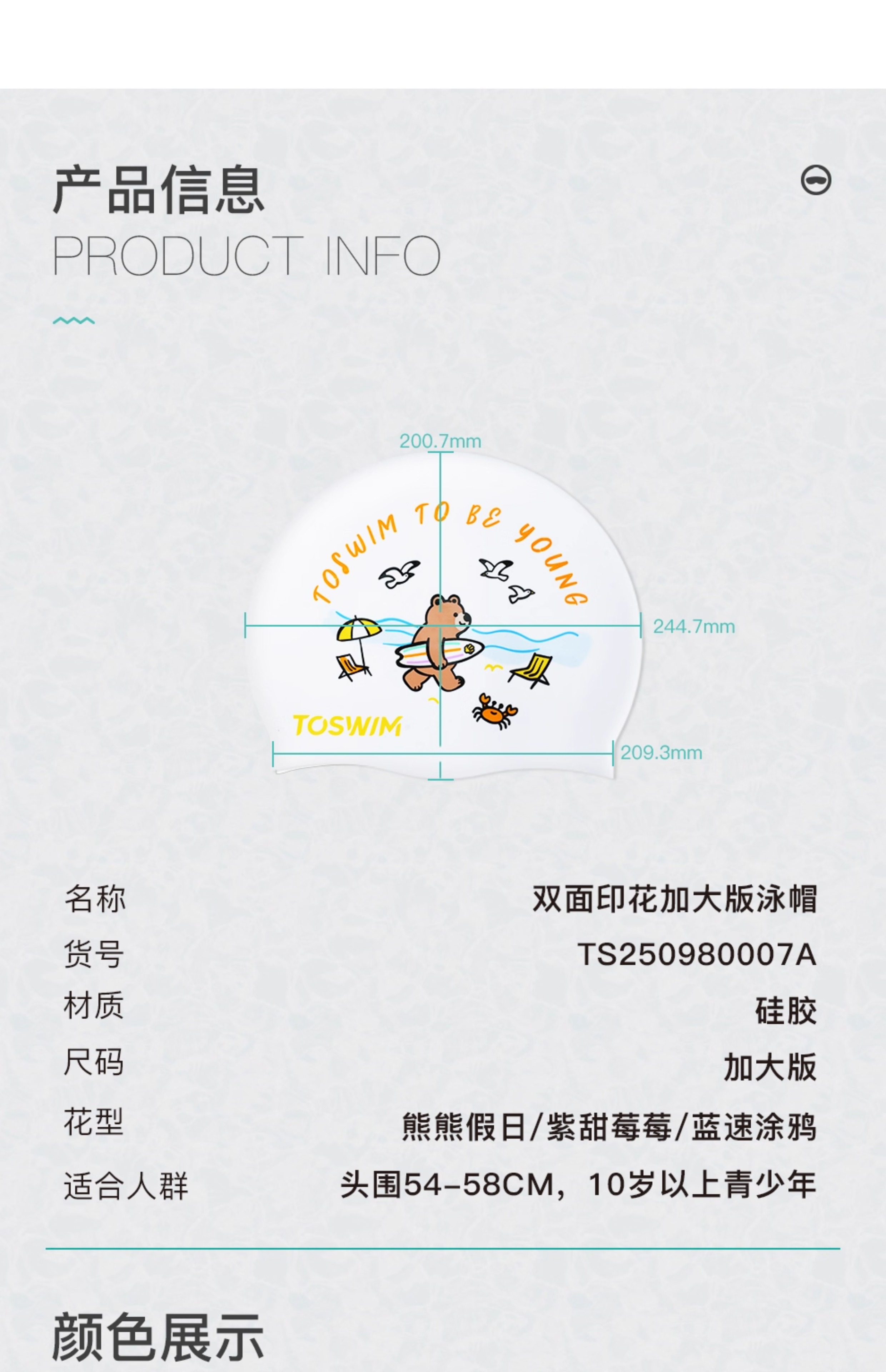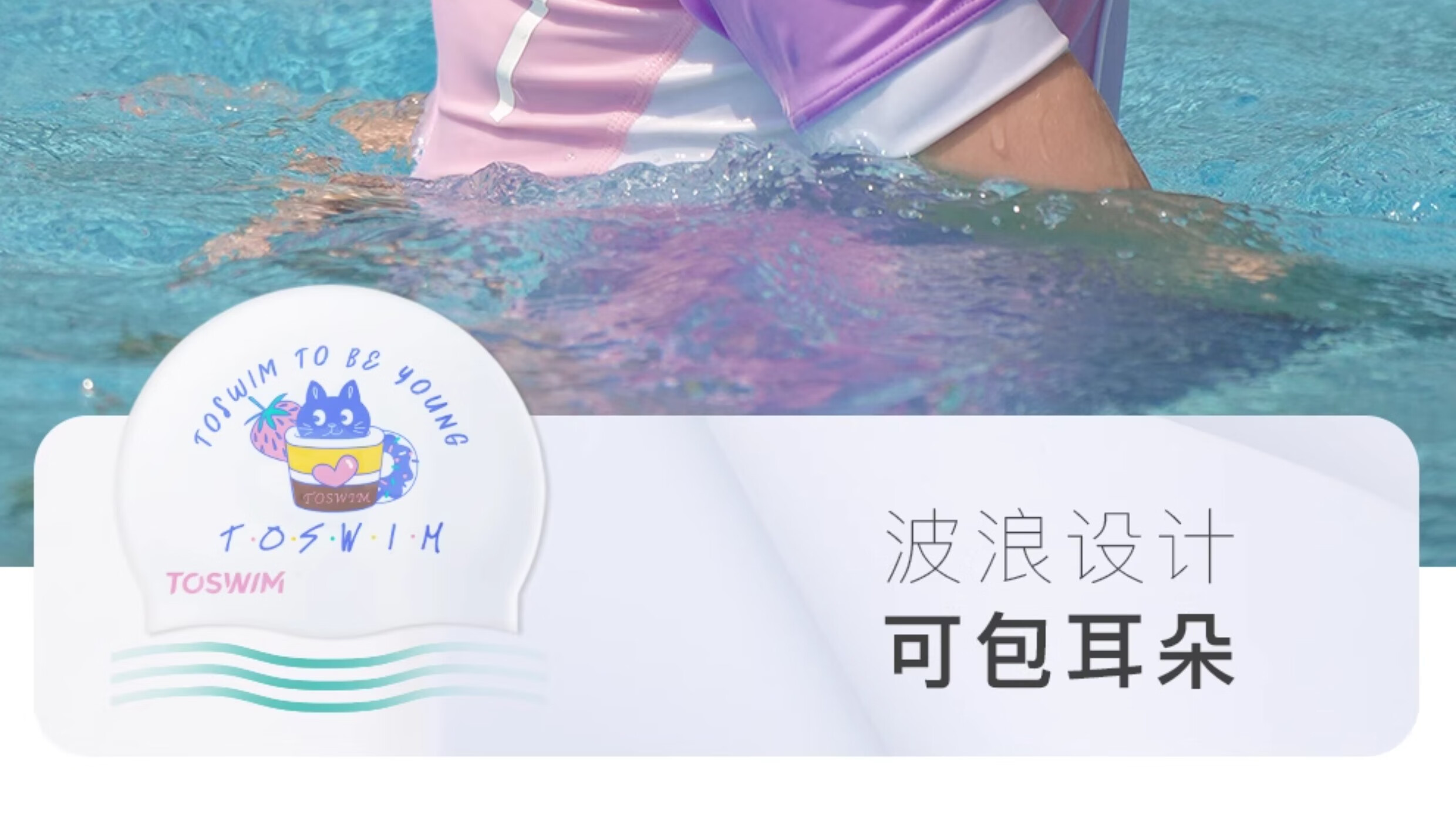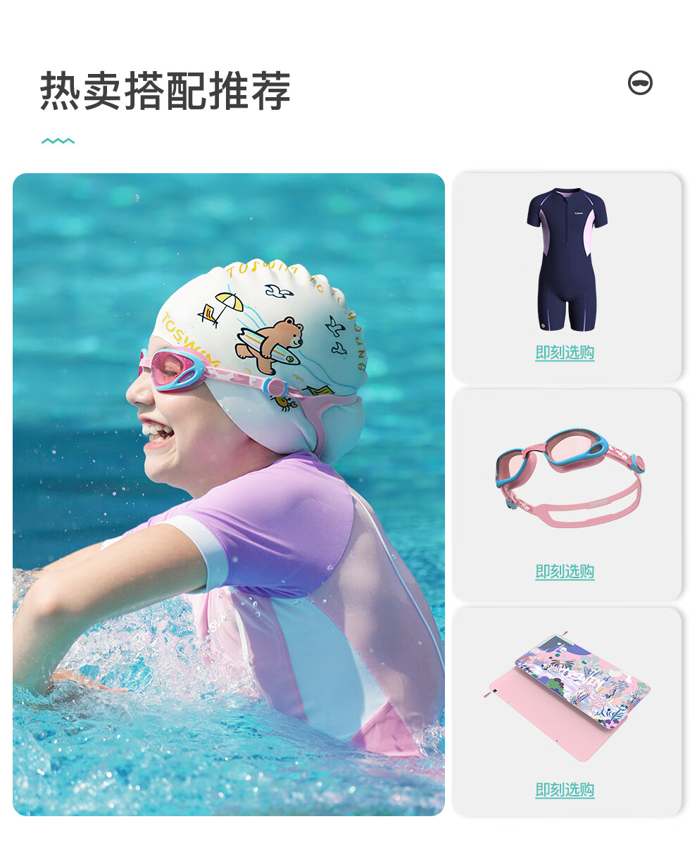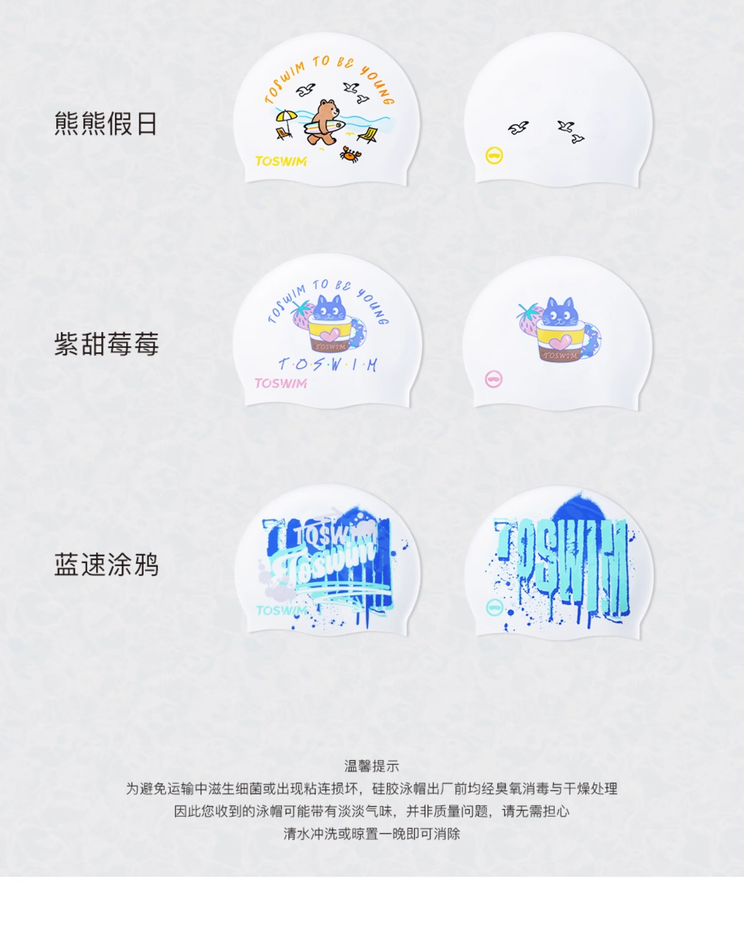 拓胜(TOSWIM)儿童泳帽女童男童游泳训练专用不勒头宝宝护耳卡通硅胶泳帽 【熊熊假日】泳镜+泳帽