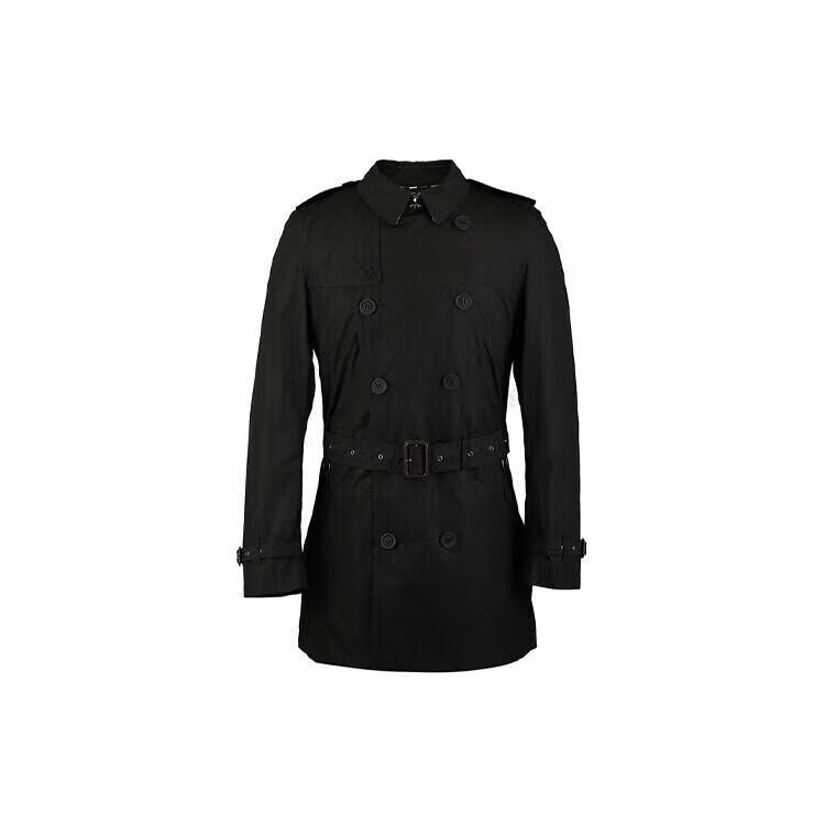 BURBERRY Новогодний подарок, однотонный двубортный ремень с лацканами, ветровка, мужской черный, черный S