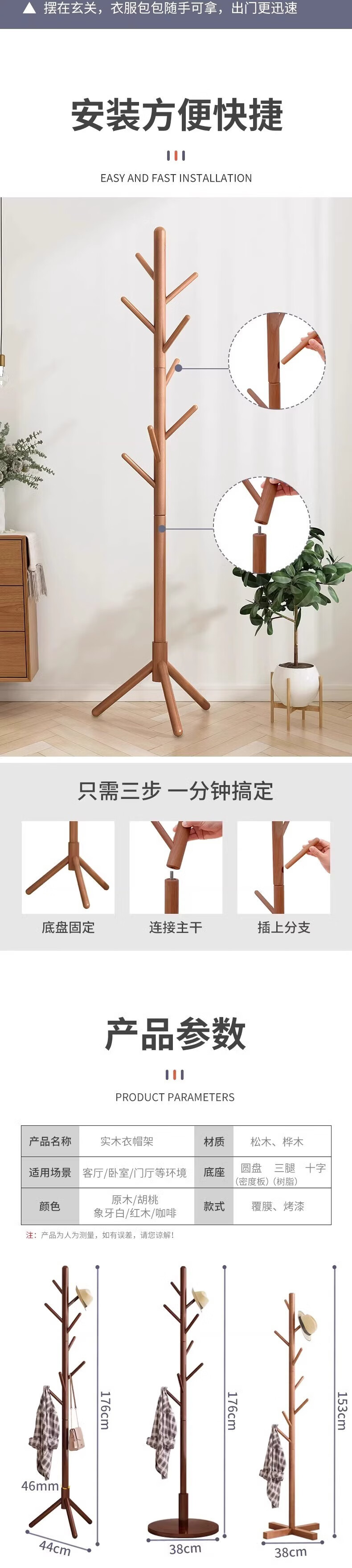 Вешалка для одежды Jianyimao из цельного дерева, напольная, вертикальная, бытовая, простая вешалка для одежды, штатив, модель с цветным покрытием, маленькая палка с круглой головкой - стабильная и непростая в падении, стабильная и простая в использовании, выдерживает нагрузку, продвижение первого количества