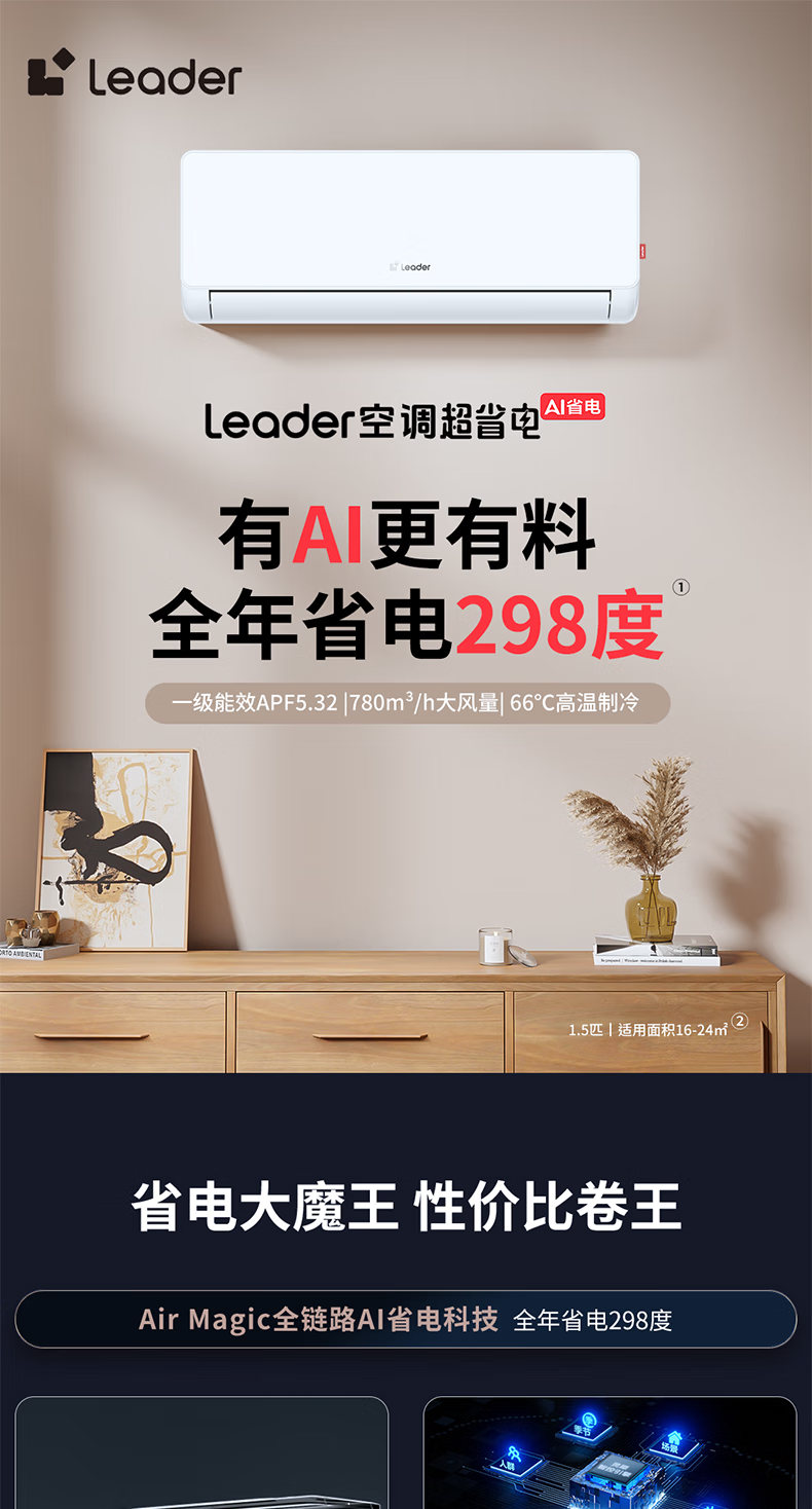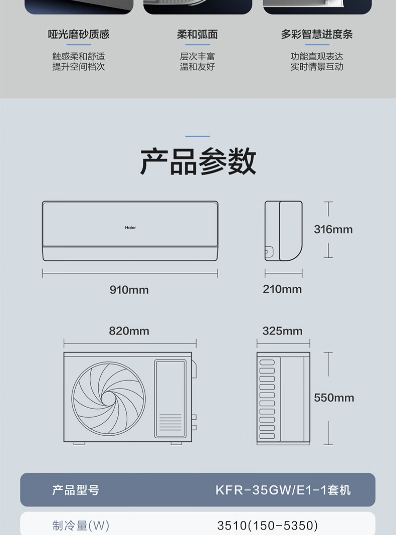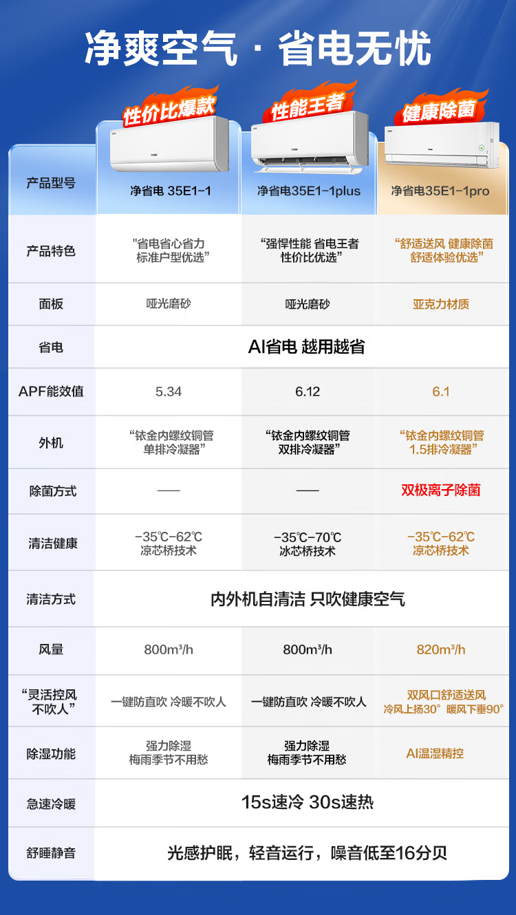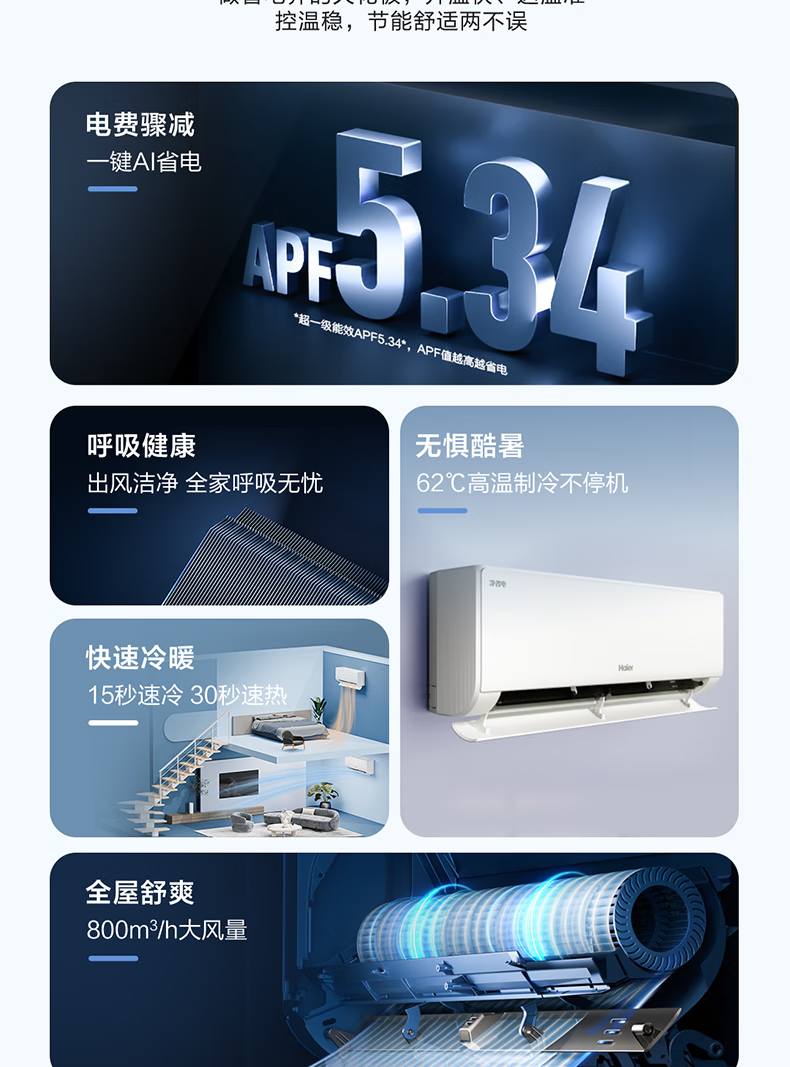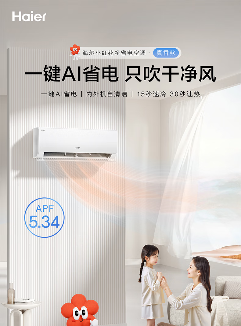 海尔(Haier)出品小红花大1p/1.5匹空调净省电plus挂机变频新一级能效冷暖壁挂式节能卧室空调防直吹舒适健康风 超省电 1.5匹 【高性价比】35LA1-1