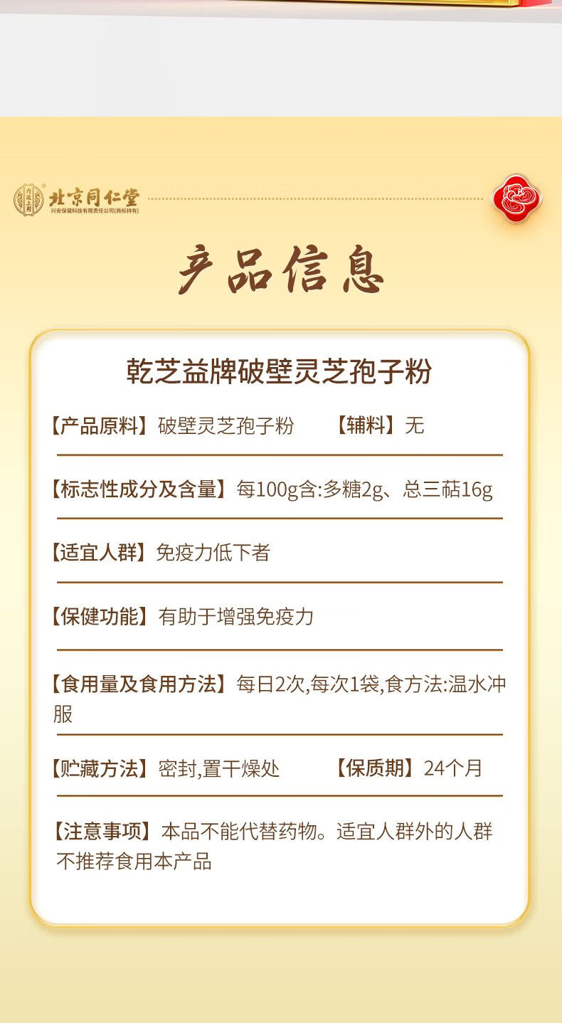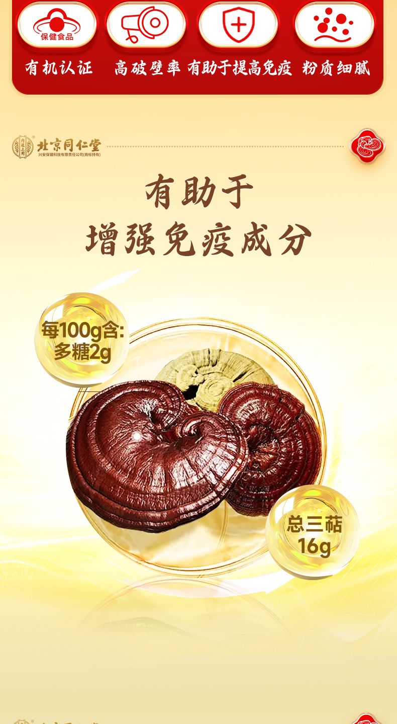 Tongrentang Broken Ganoderma Spore Powder 60g Gift Box to Enhance Immunity Authentic Spore Powder 2 Boxes*60g Help
