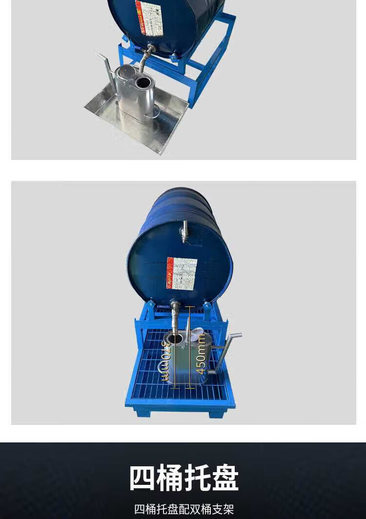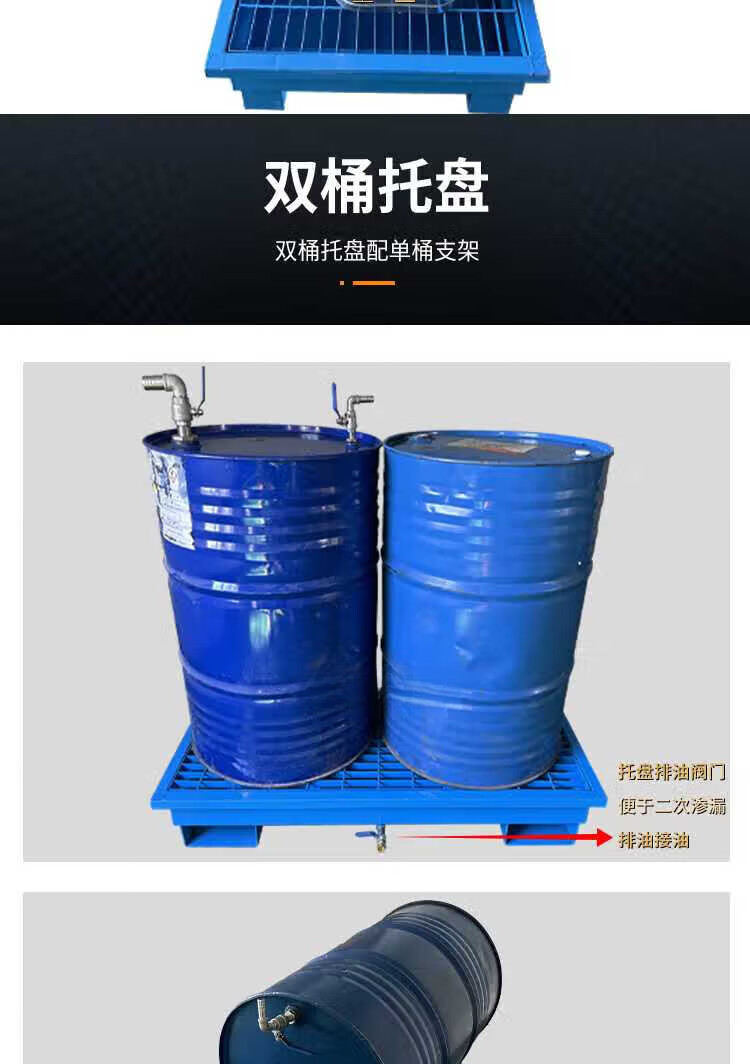 溥畔防渗漏金属托盘防泄漏油桶危废液平台钢制柴油桶支架子油桶放置架 双桶支架