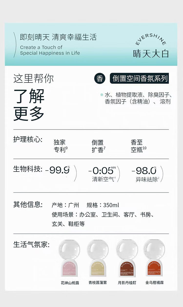 Sunny day, inverted fragrance, long-lasting fragrance, hotel air freshening, toilet deodorizing aromatherapy, Huashenshan Gardenia 350ml