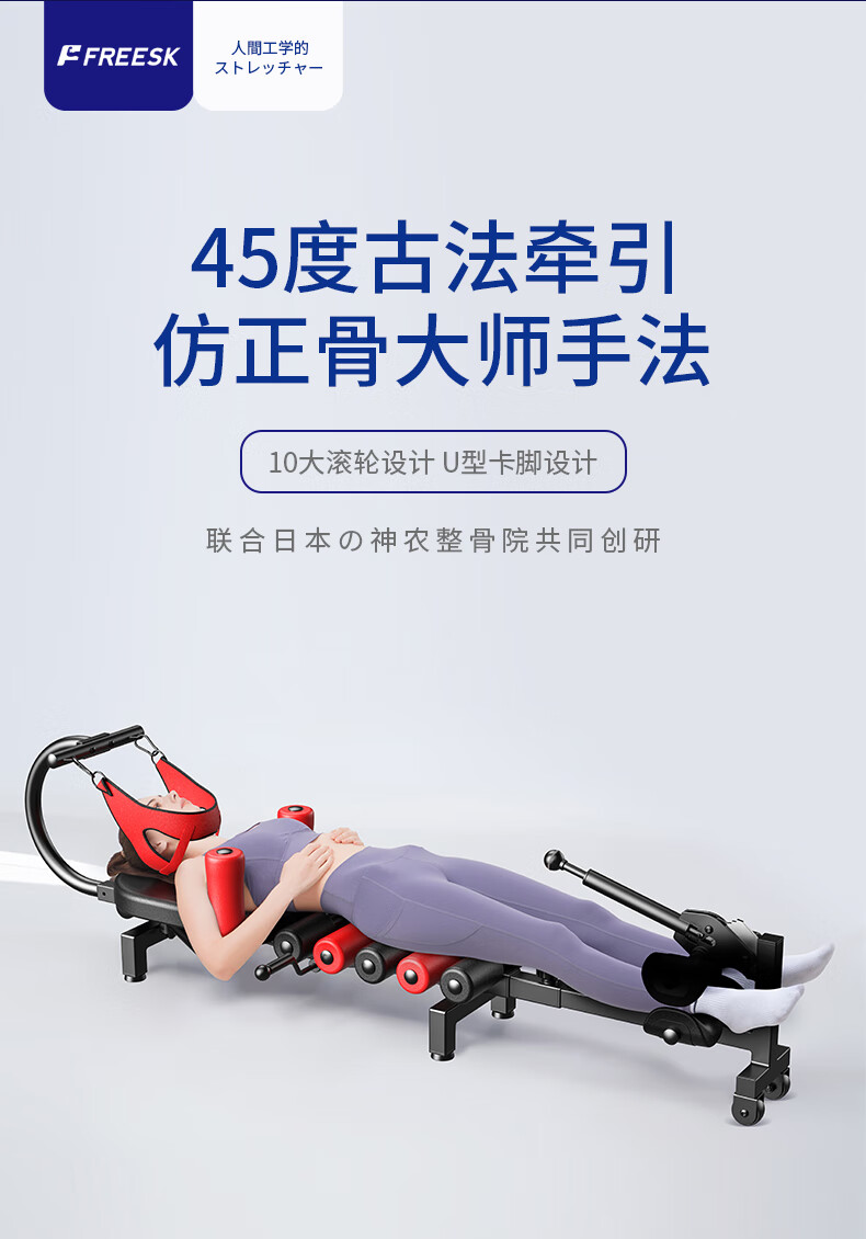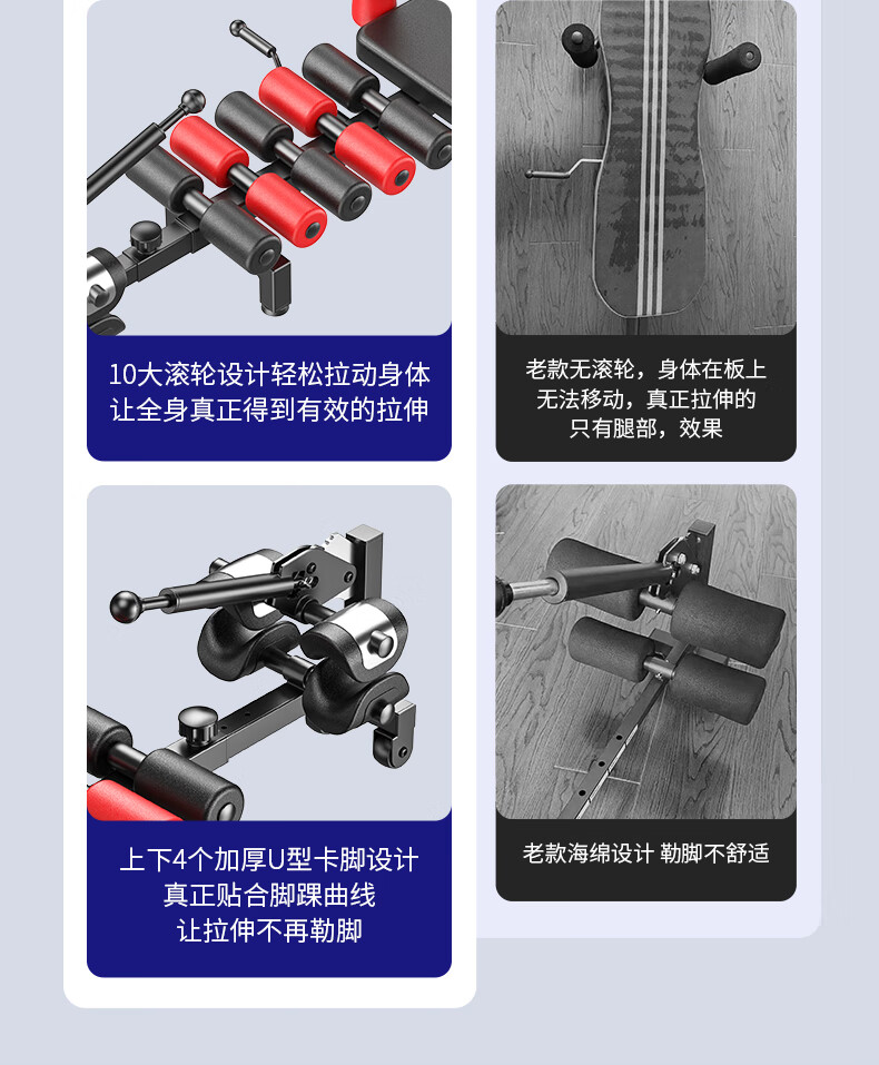 颈椎腰椎拉伸器脊柱牵引神器医家用增高长高健身腿倒立机舒缓床 标准版(滚轮设计+4个U型卡脚)