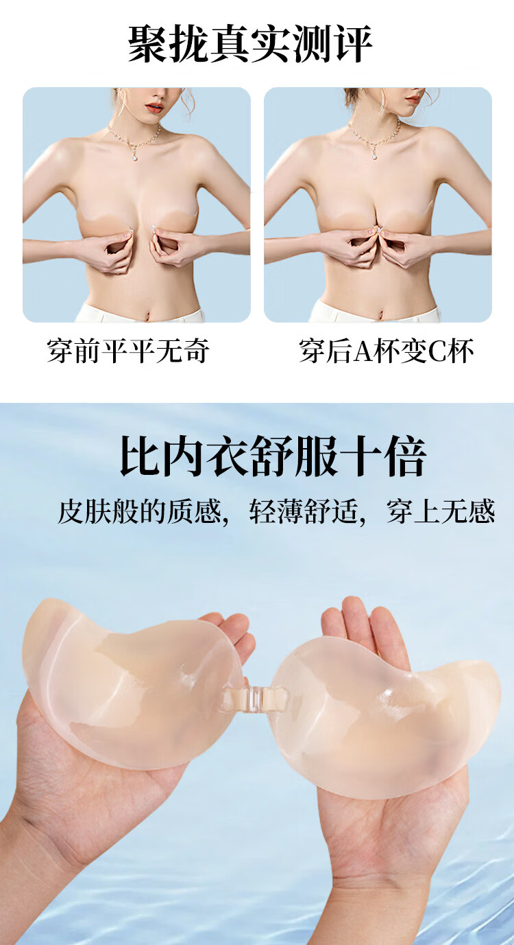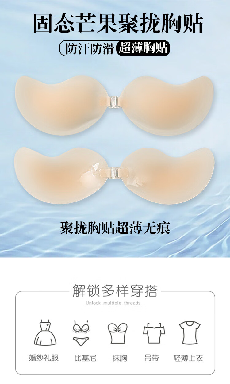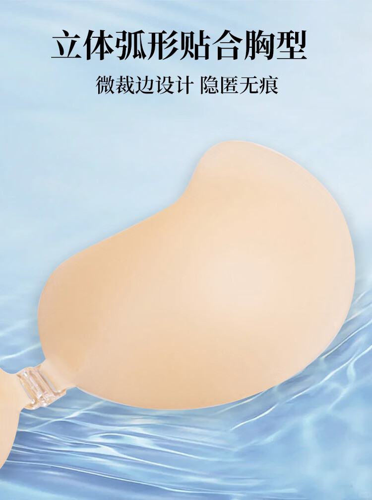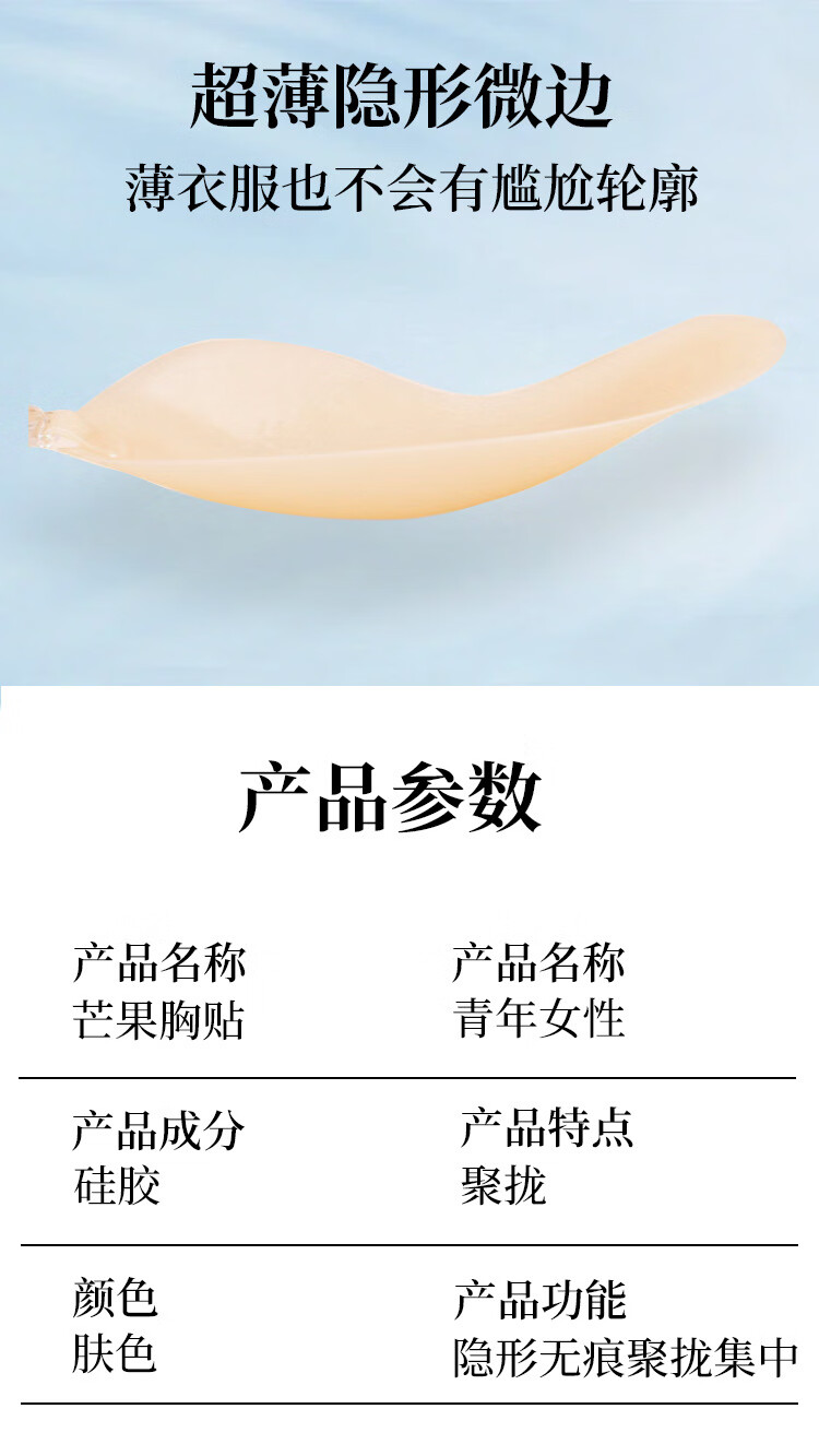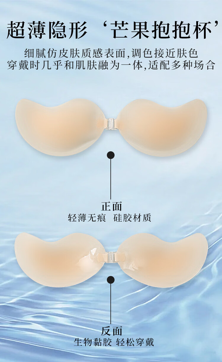 超薄芒果杯固态硅胶胸贴聚拢隐形挡凸点纯色透明乳贴露背婚纱礼服 肤色 A