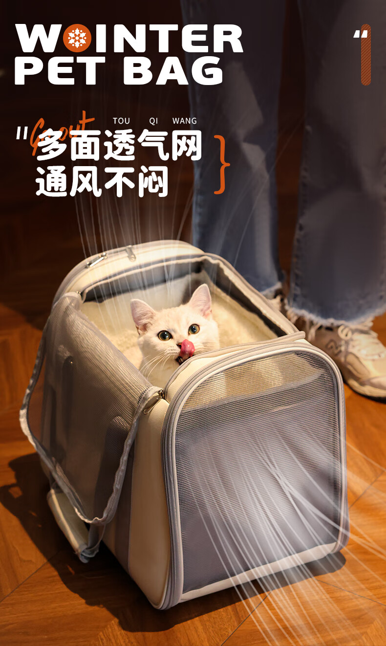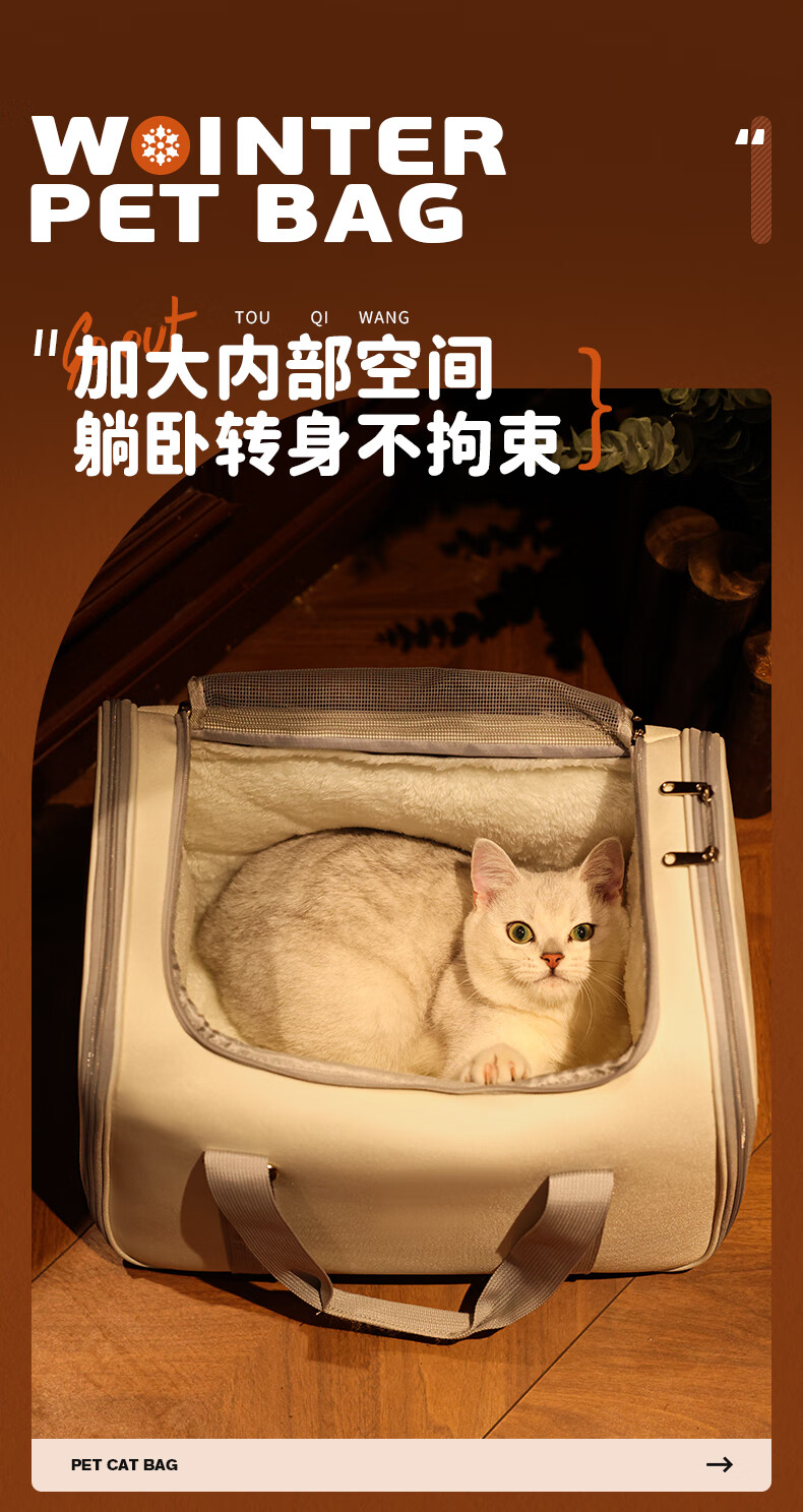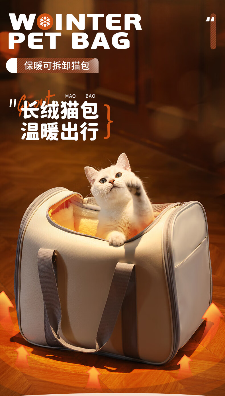 CAPTUREKEENLY bolsa para gatos, cálida y portátil para salir en invierno, mochila para gatos de gran capacidad, bandolera, bolsa de salida para gatos, mochila para mascotas, bolsa para gatos de salida cálida, felpa gruesa, extraíble, beige, para llevar a las mascotas a ver el mundo 15 Jin Jin es igual a 0,5 kg, adecuado para gatos en el interior