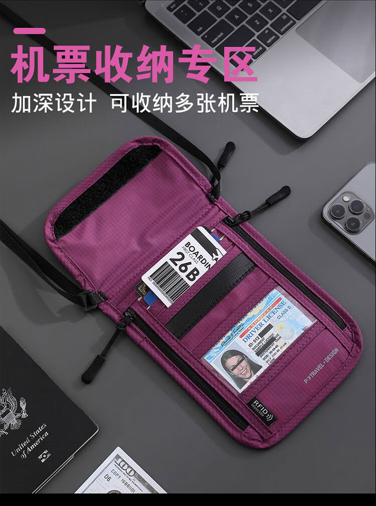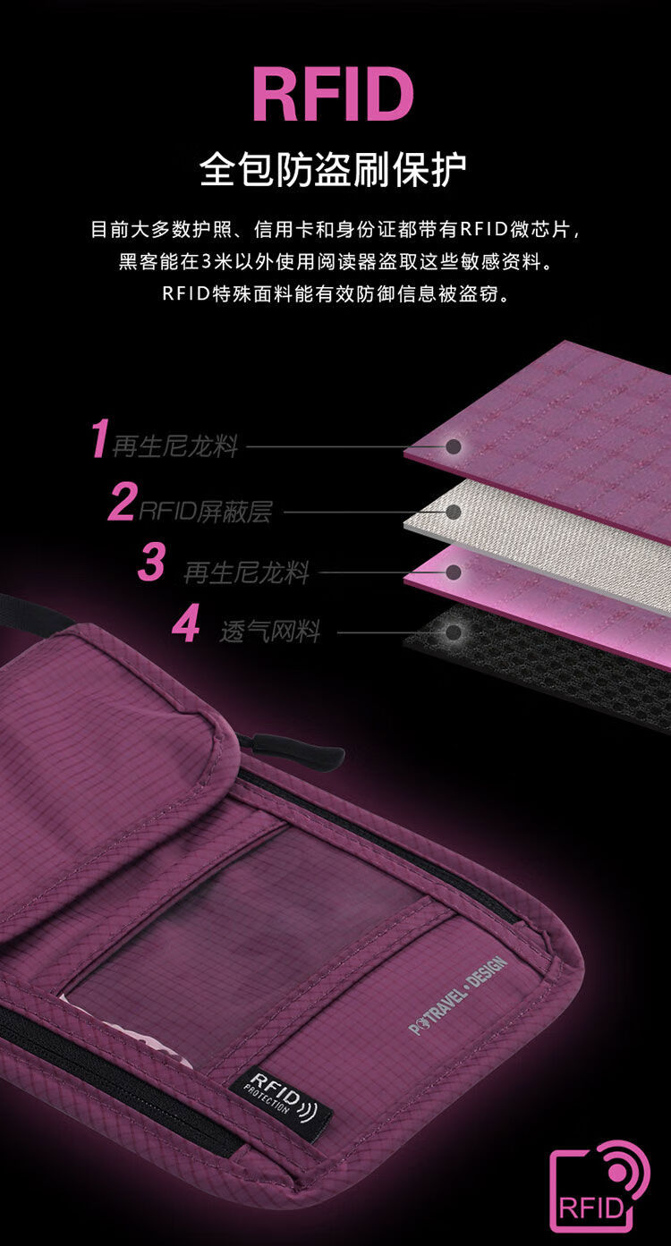 赛乐透防盗刷登机护照包旅行护照夹收纳包证件包防盗贴身护照包钱包一体 黑色