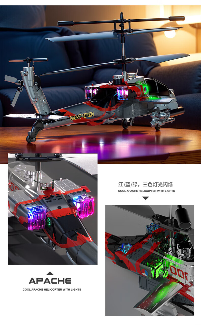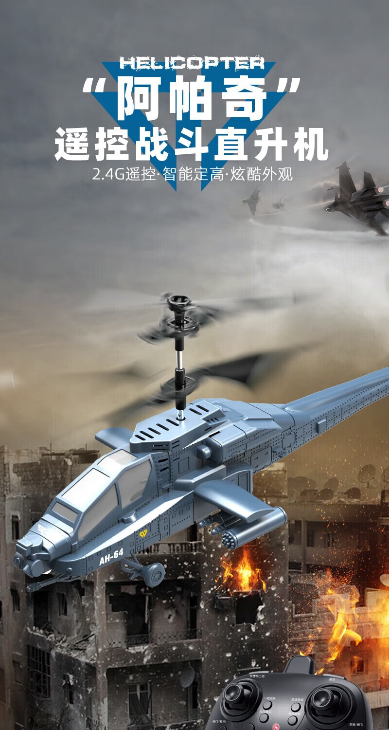 Kinder ferngesteuertes Flugzeug Apache Hubschrauber lange Ausdauer Drohne Junge Spielzeug Grundschule Geburtstagsgeschenk galvanisiertes Silber
