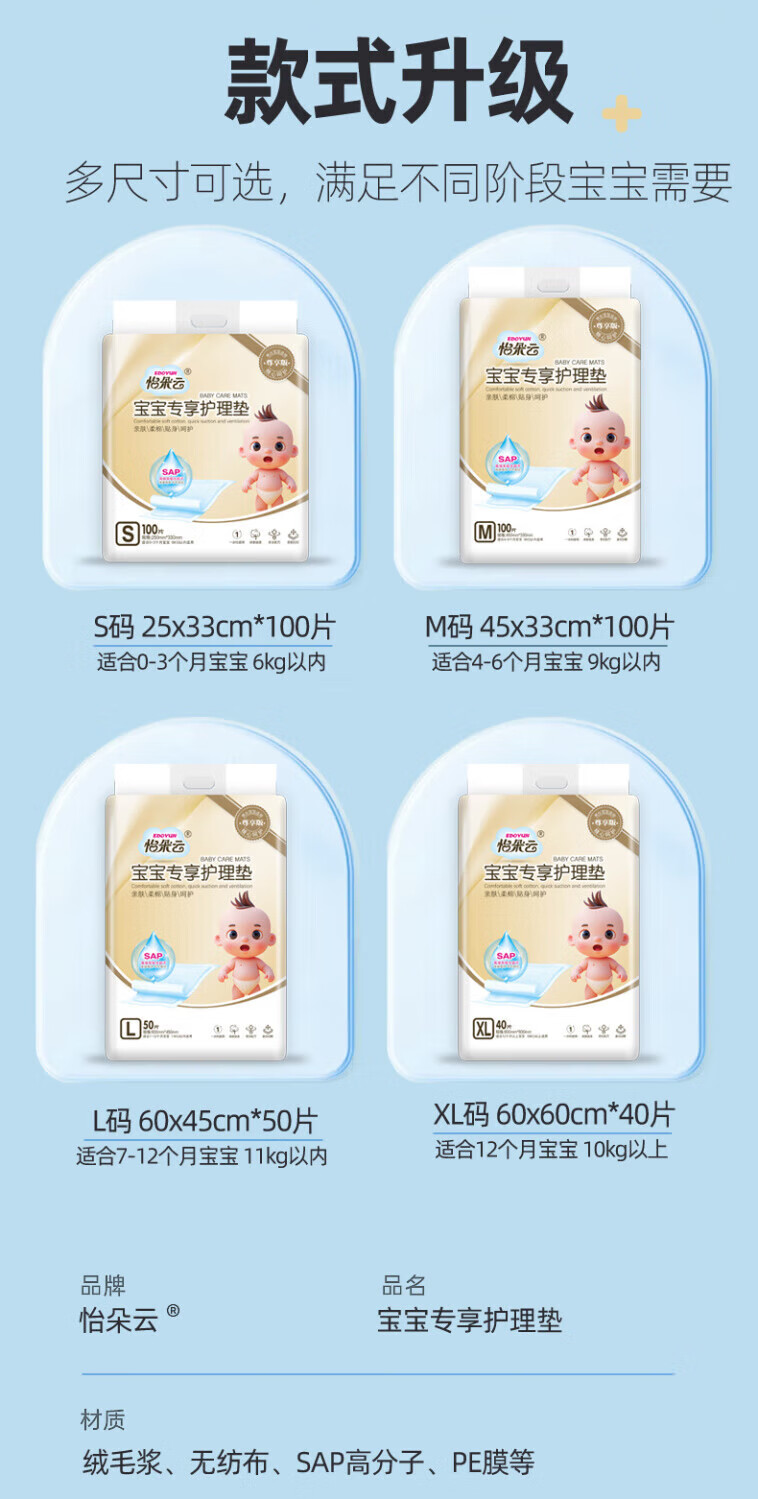 Almohadilla para pañales desechable para recién nacidos 60x60 almohadilla para el cuidado de pañales para bebés impermeable y transpirable cama para pañales Yiduoyun Platinum Exclusive Baby Changing Pad Engrosado Tamaño S 25X33100 piezas