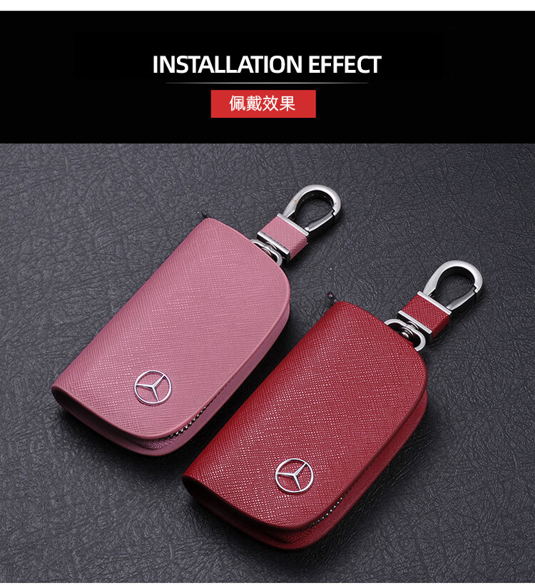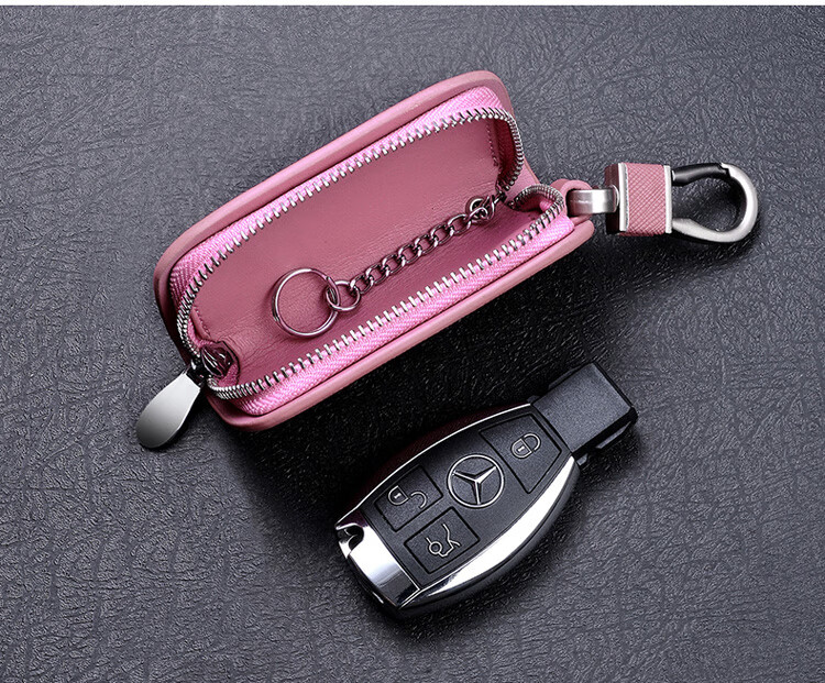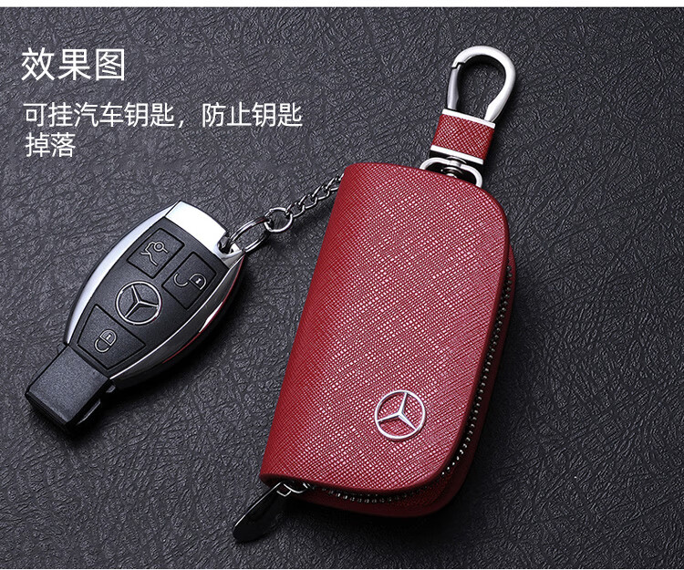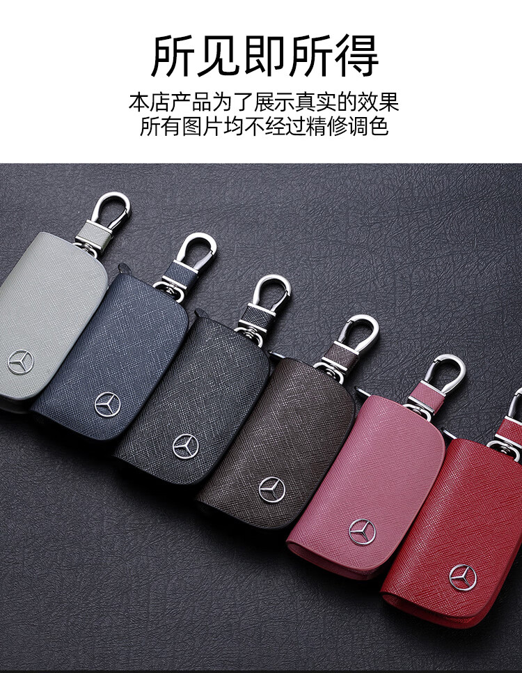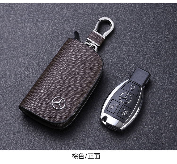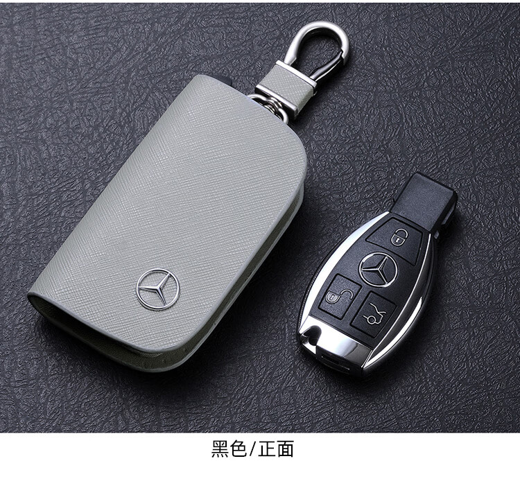 LEOEZYA genuine leather key bag for women and men unisex c200l new E-class e300S350 genuine leather car key protective cover light gray