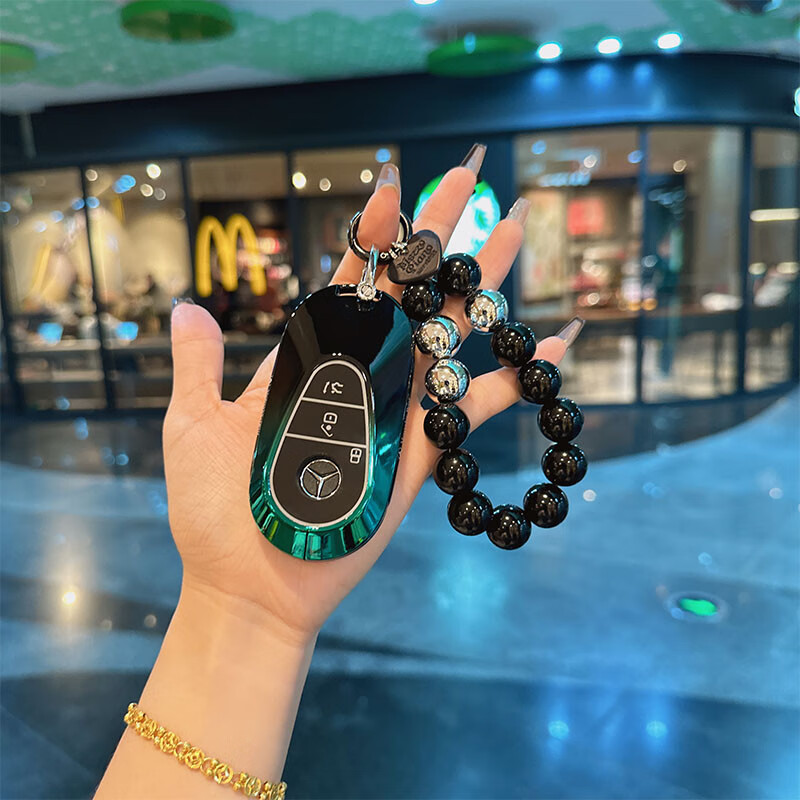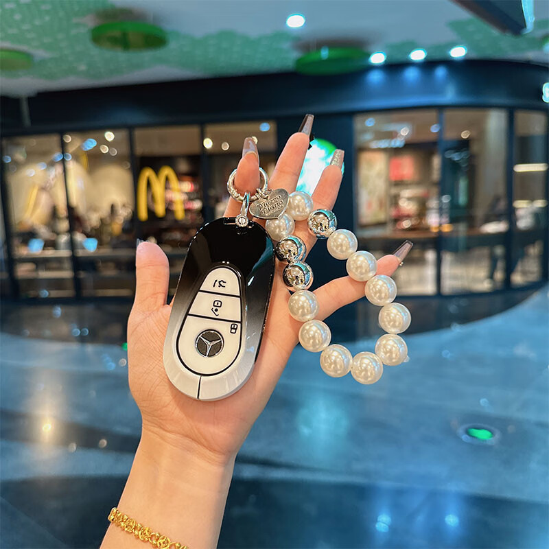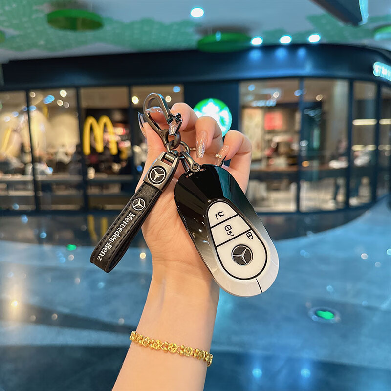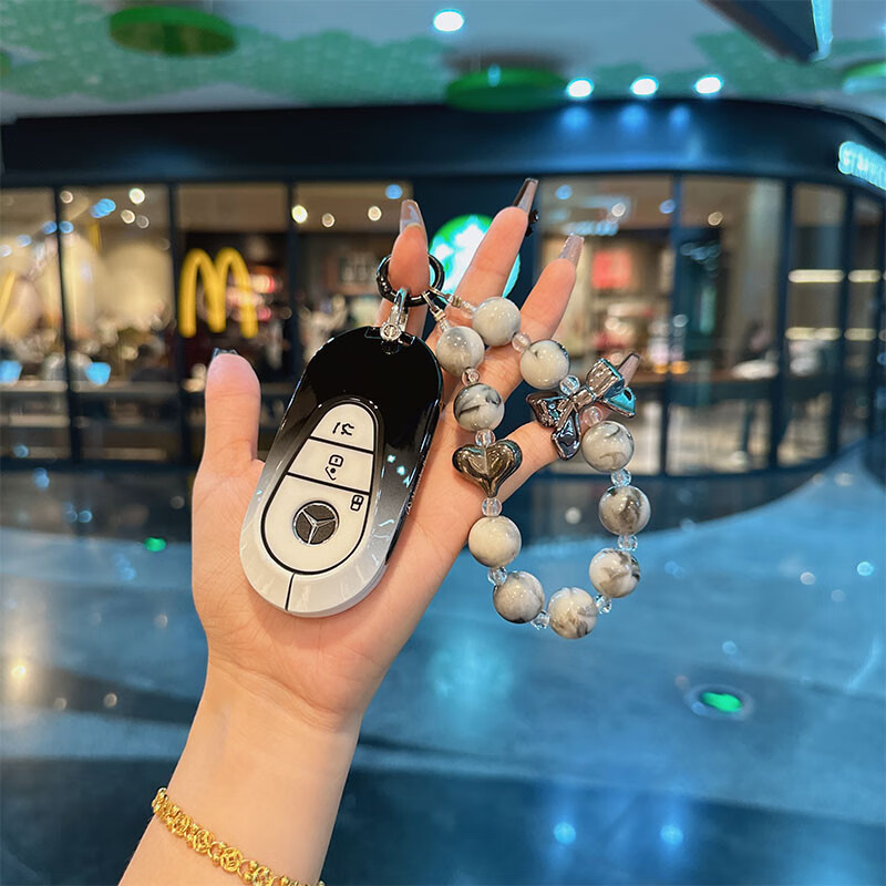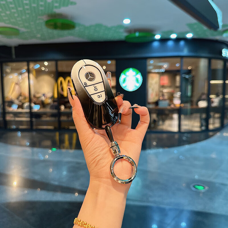 Passend für Mercedes-Benz C-Klasse Schlüsselhülle C200L/C260L Tasche GLC260L Schnalle S-Klasse S400L Auto EQE/EQS Hülle Farbverlauf Schwarz und Weiß Licht Luxus Silber Perlen