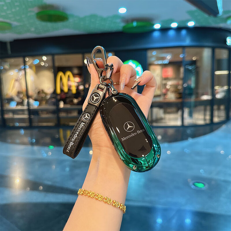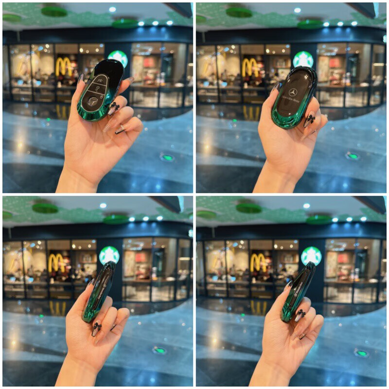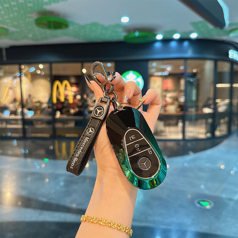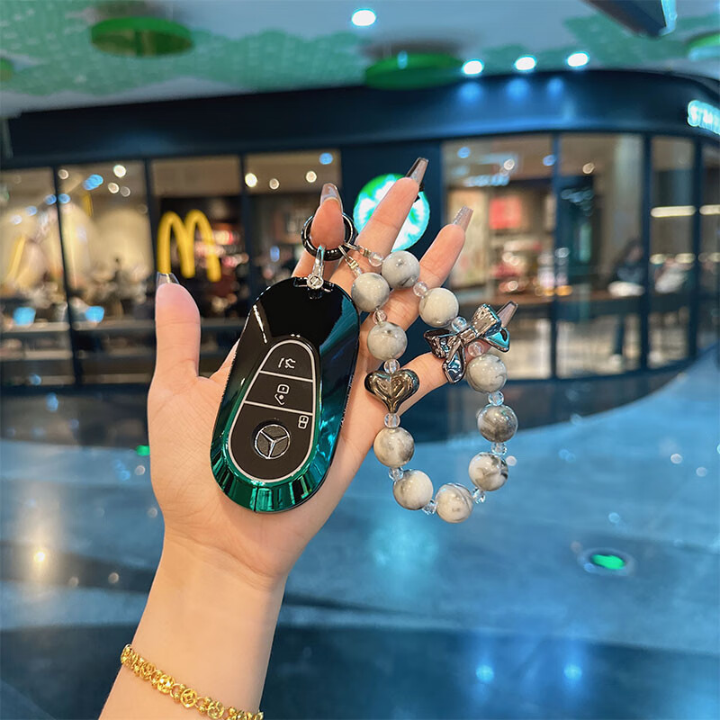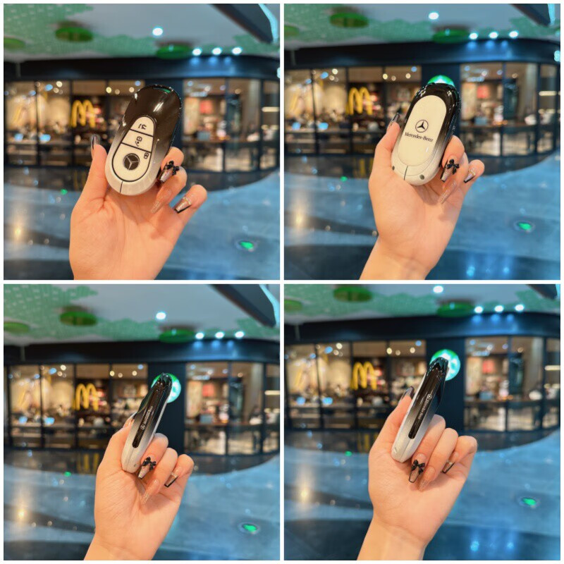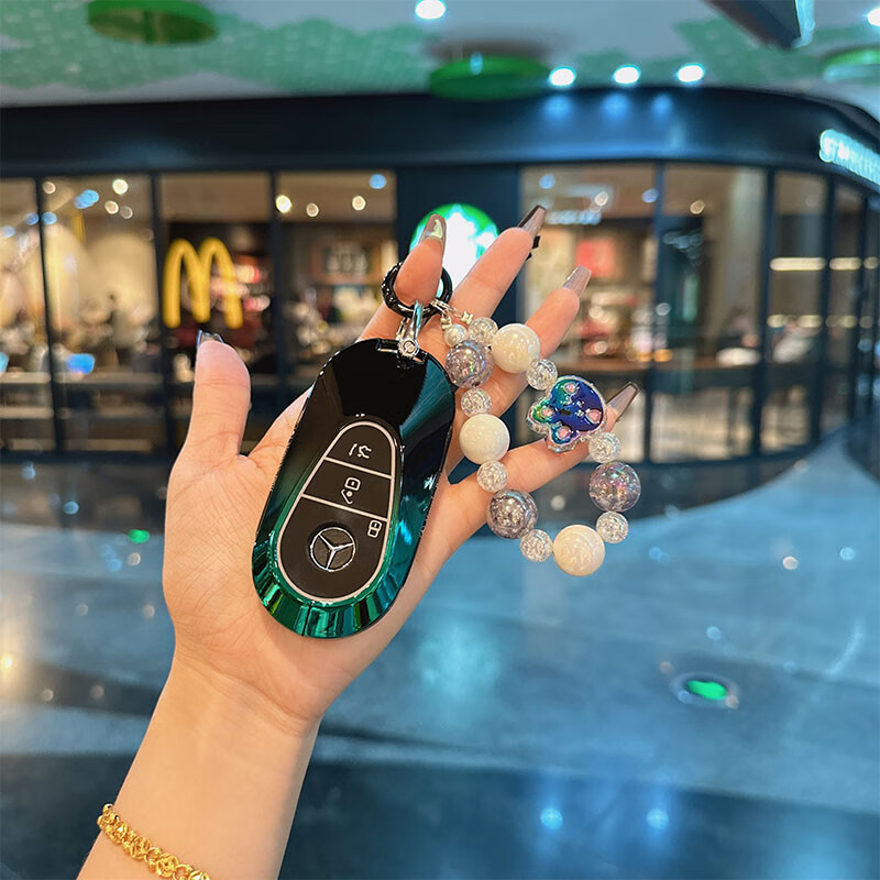 Passend für Mercedes-Benz C-Klasse Schlüsselhülle C200L/C260L Tasche GLC260L Schnalle S-Klasse S400L Auto EQE/EQS Hülle Farbverlauf Schwarz und Weiß Licht Luxus Silber Perlen