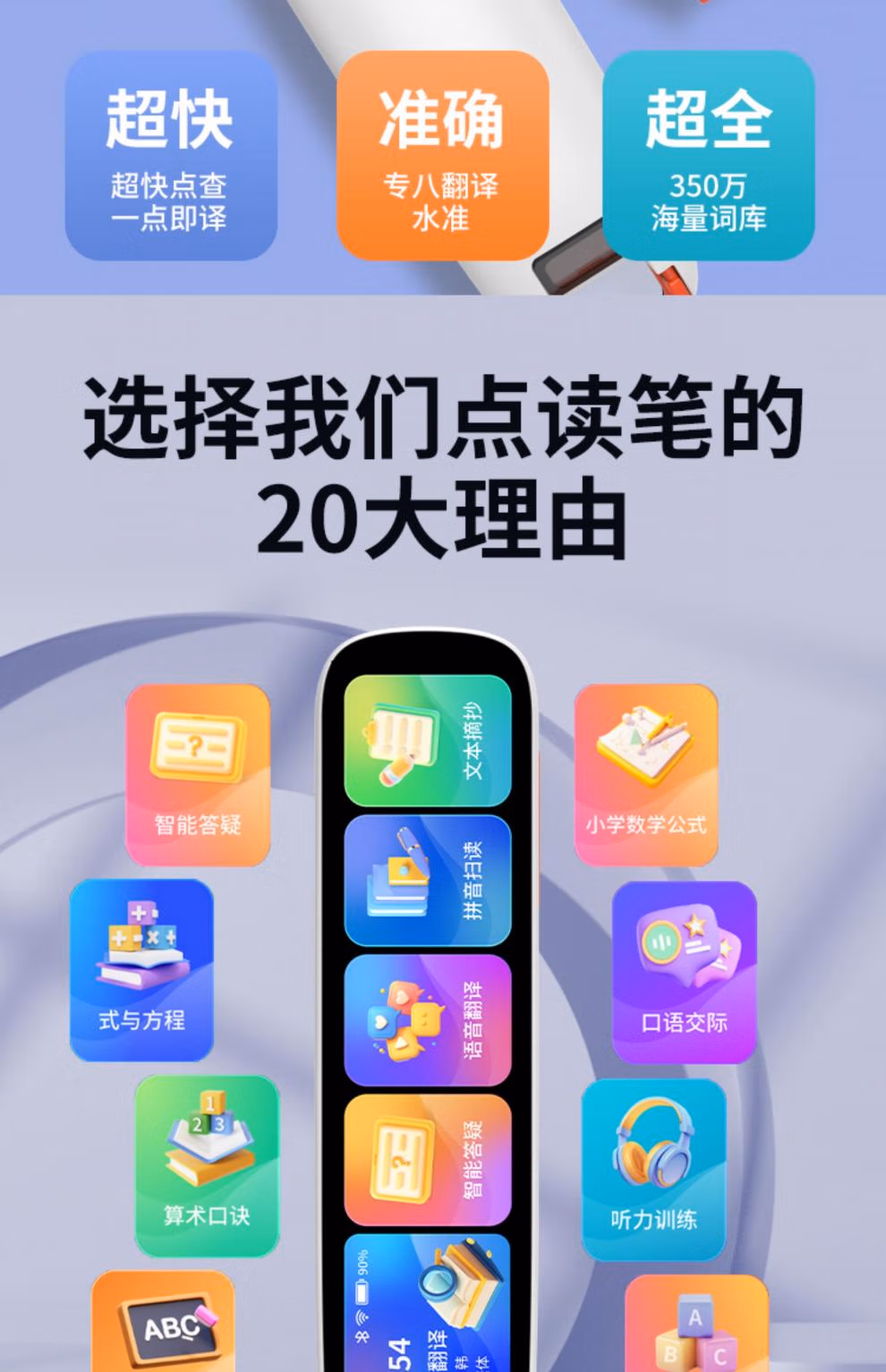 IFLYTEK English Reading Pen Offline Scanning Translation Dictionary Student Word Learning Artifact Black 5-inch Top Version TV Screen Projection + Scan Questions and Answers