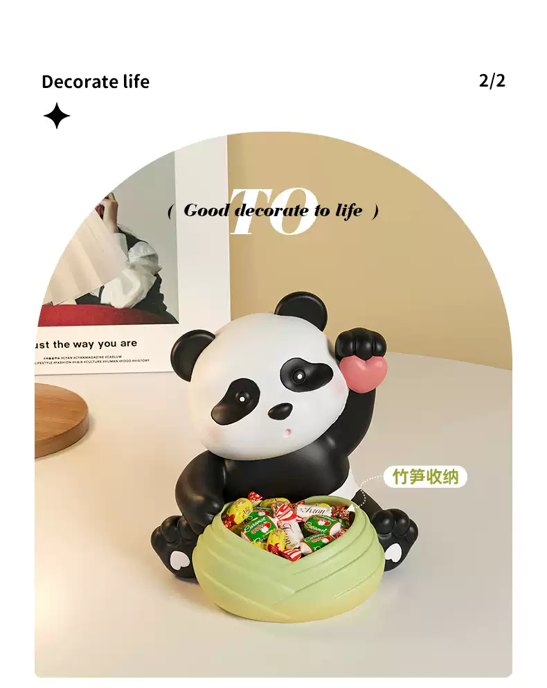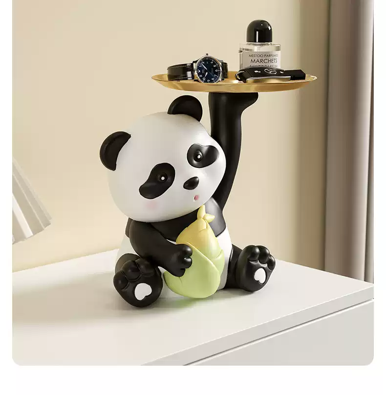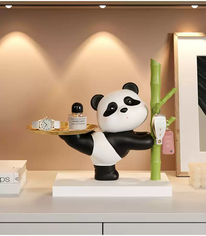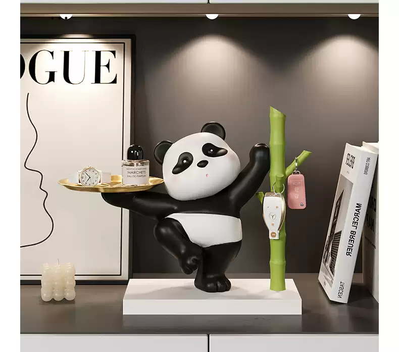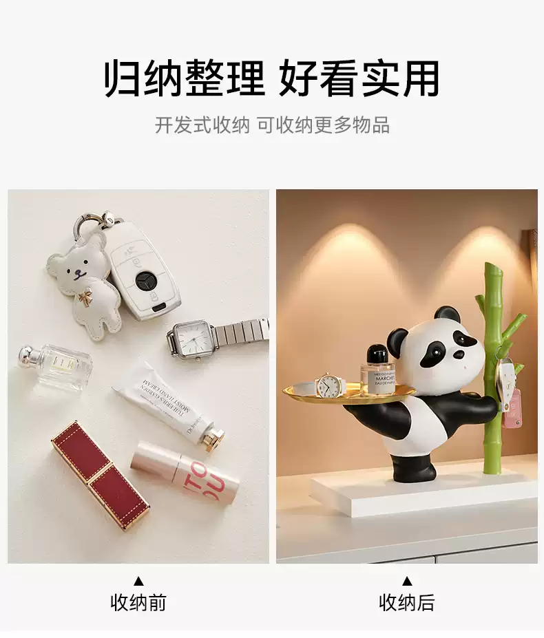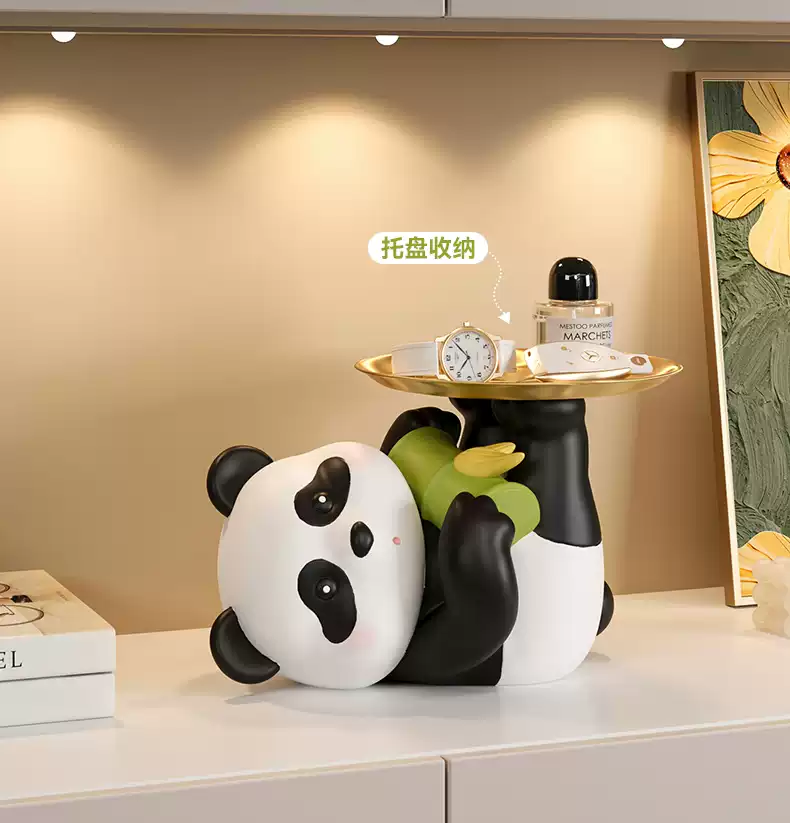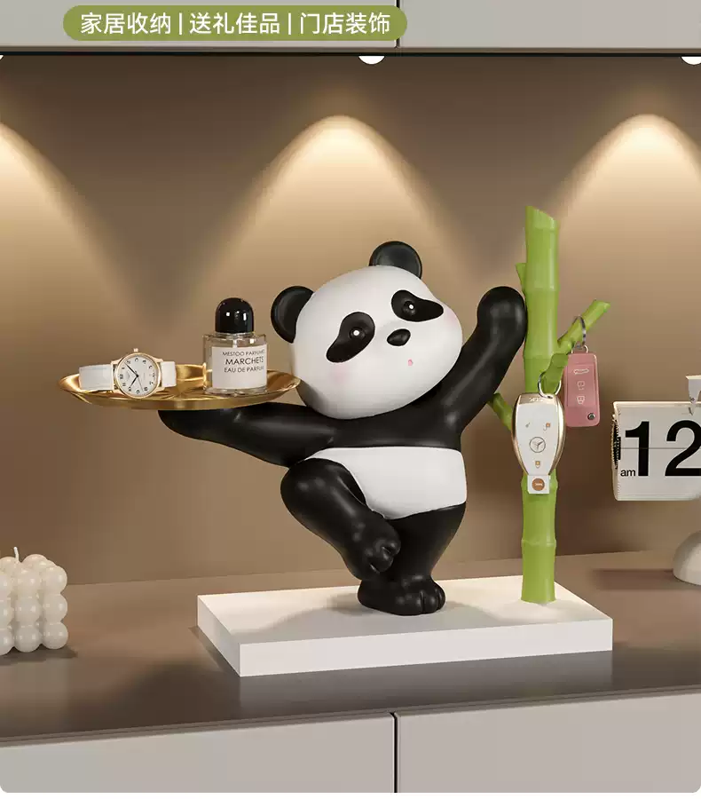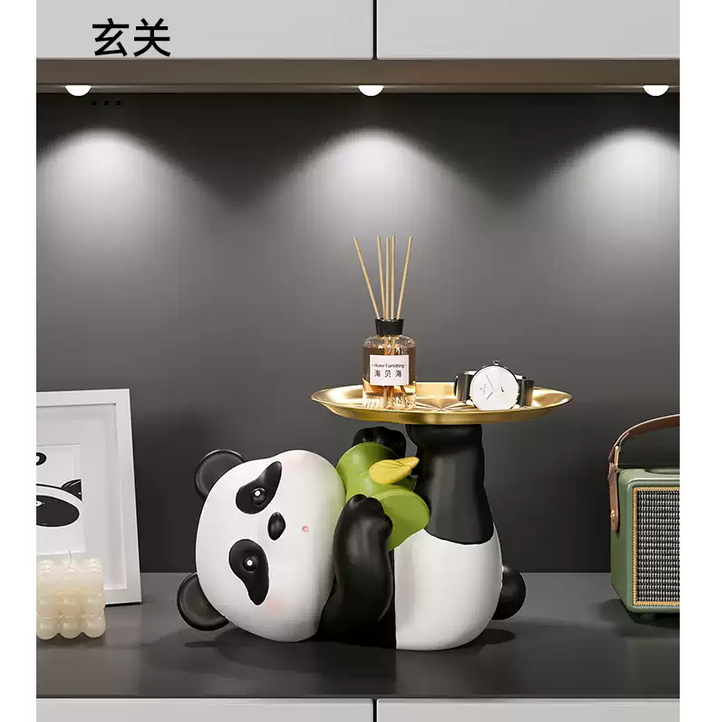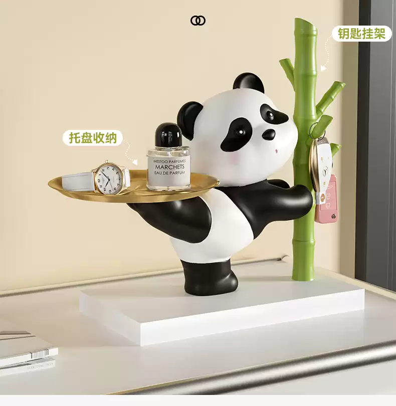 咏幻熊猫托盘钥匙收纳入户玄关装饰摆件客厅家居饰品搬家礼物乔迁新居 熊猫手机支架-倒立