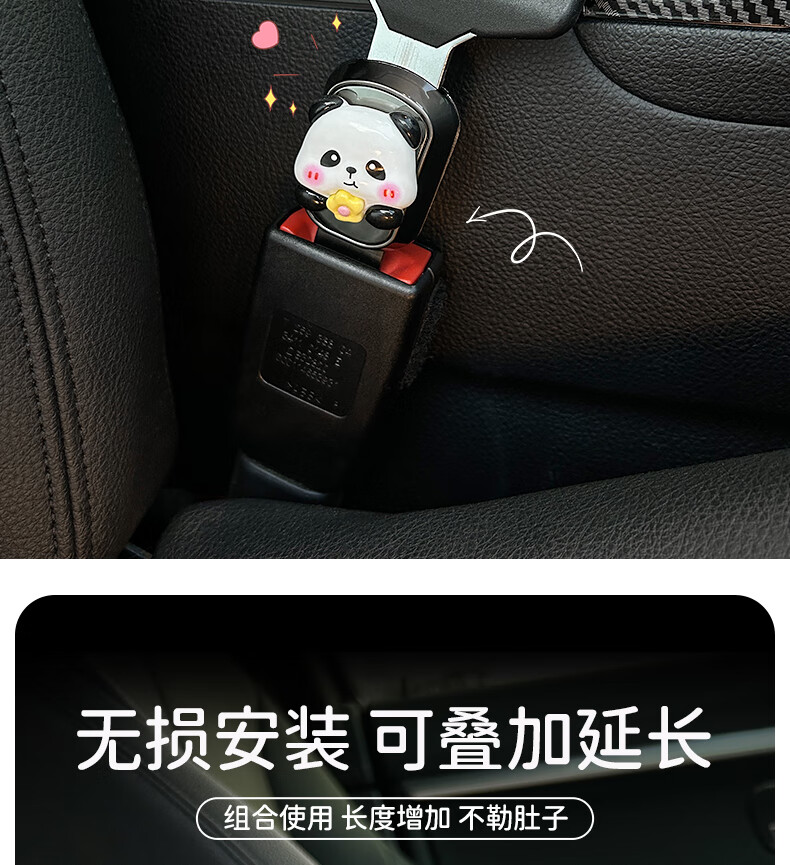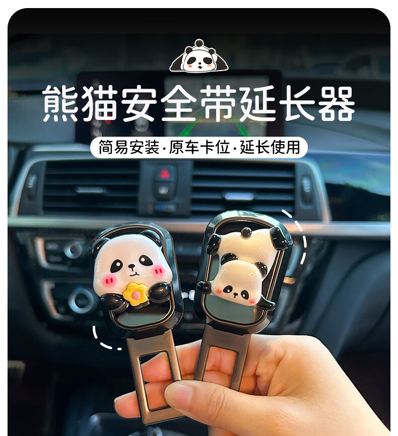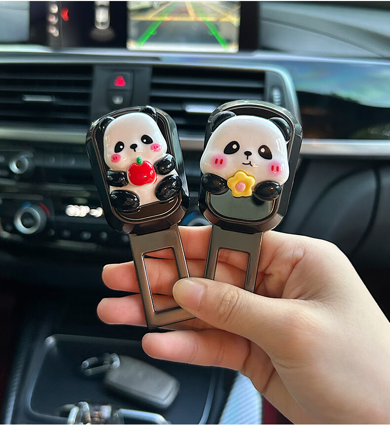 Xushanska мультяшная милая автомобильная пряжка-удлинитель, фиксатор заднего сиденья автомобиля, предохранительная заглушка против удушения, авиационный сплав, перевернутая панда + цветок, обнимающий панду (