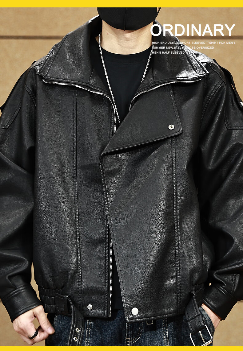 Gu Xiansen leather jacket men's 2025 new high-end men's clothing handsome men's motorcycle American pilot leather jacket men's black M 110-130Jin Jin is equal to 0.5 kg