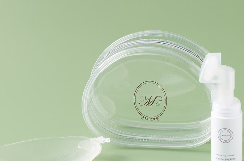 Peach cup breast patch seaside water transparent bikini swimsuit invisible silicone swimming small breast patch transparent invisible-A cup cleaning agent + transparent box + storage bag