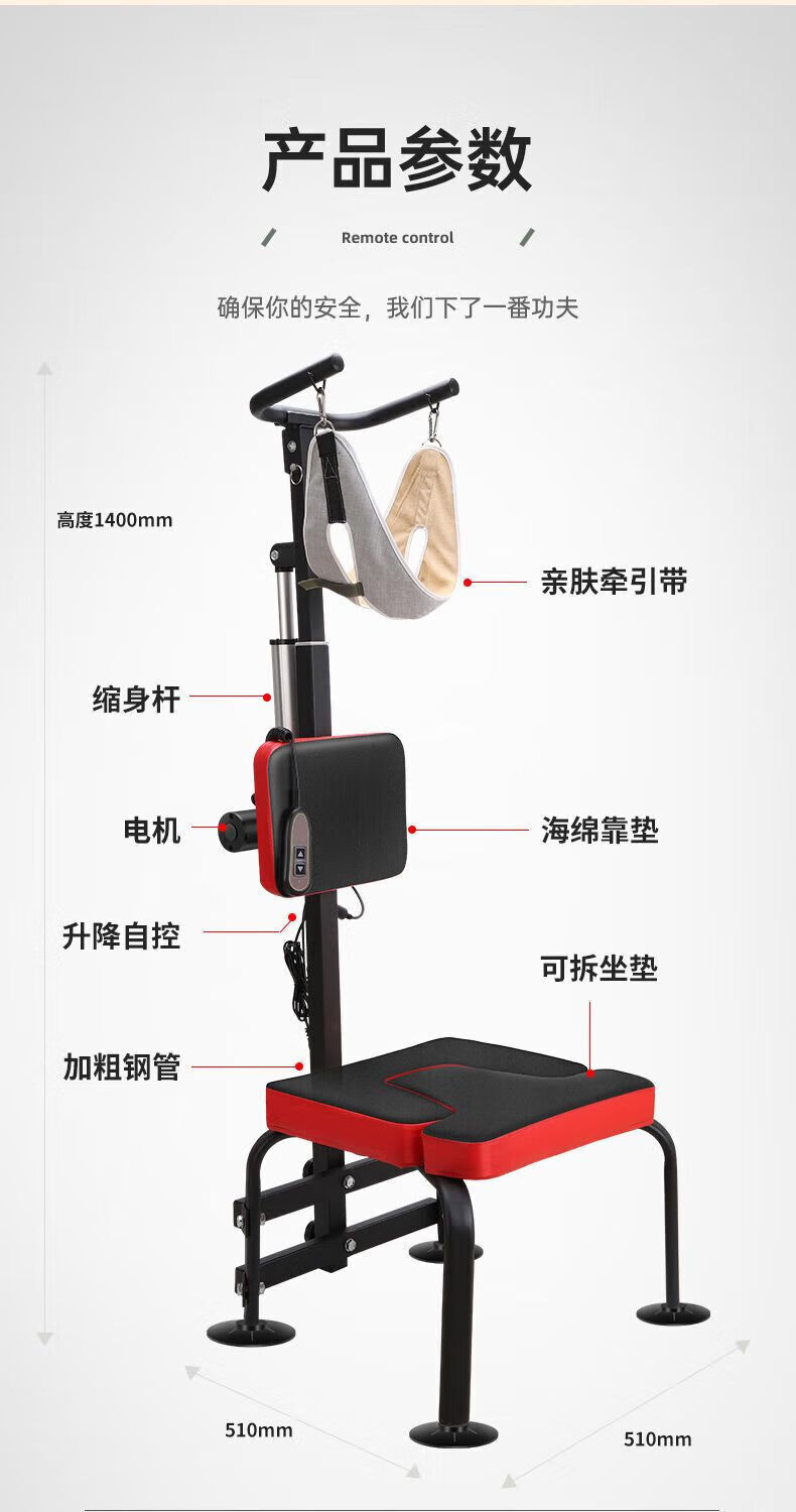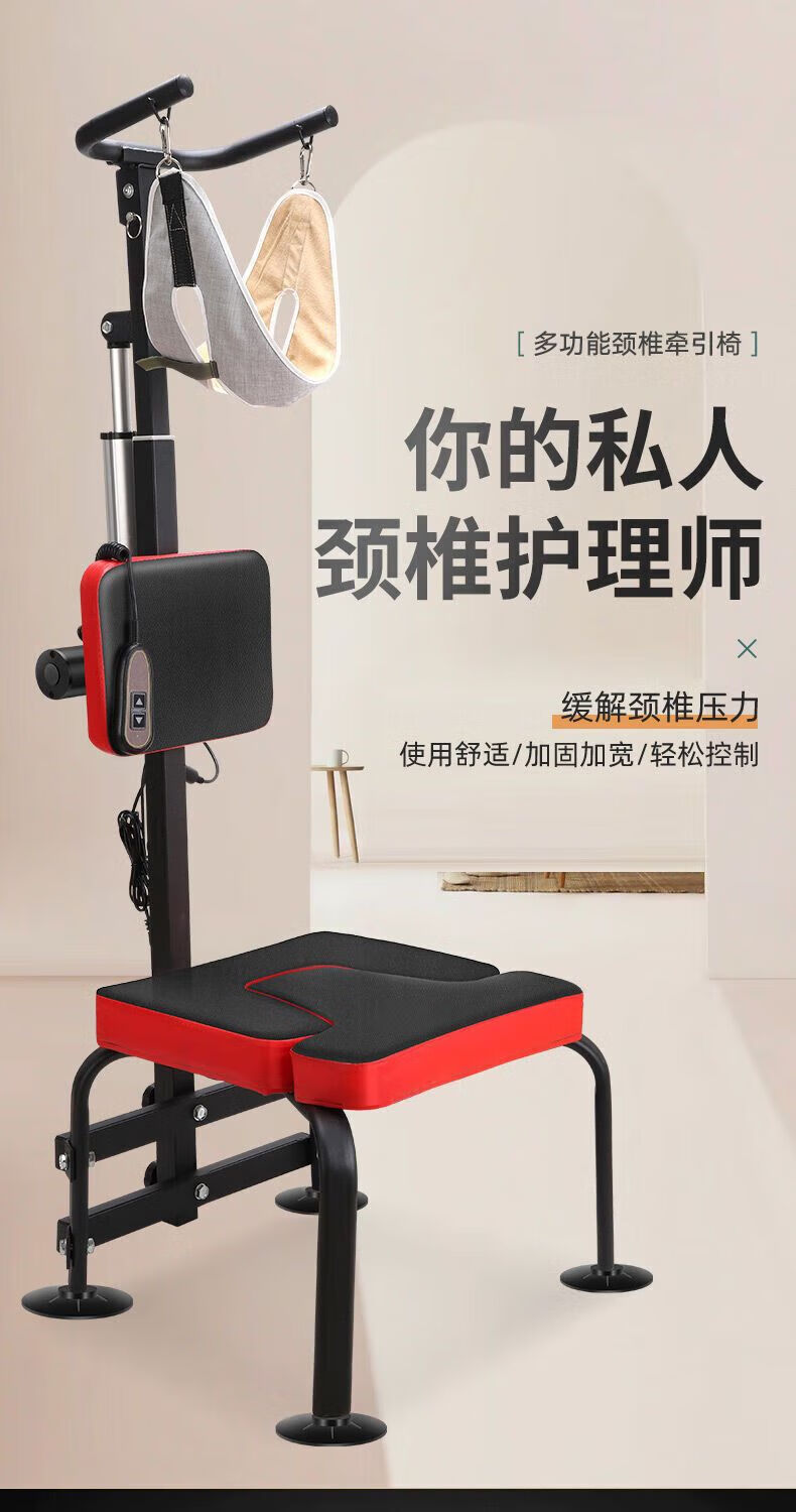 Elektrisches Zervix-Traktionsgerät, Haushaltswiderstands-Nackenrehabilitationsstuhl mit fester Nackenstütze, vollautomatischer Dehnungs-Inversionsstuhl, neuer multifunktionaler elektrischer Zervix-Traktions-Inversionshocker schwarz