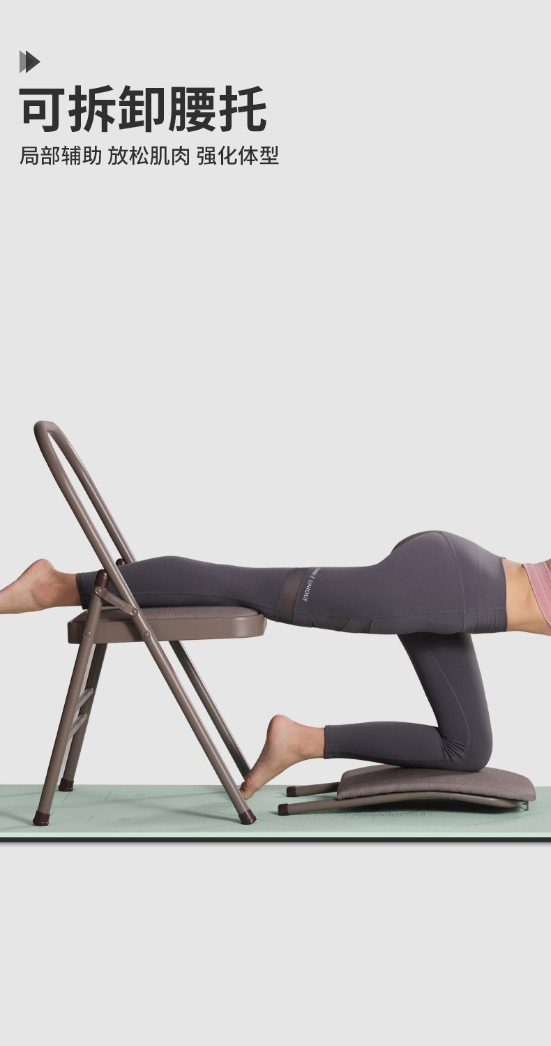 Zairou Iyengar Yoga-Stuhl, Hilfswerkzeuge und Ausrüstung, umgekehrter Yoga-Hocker, Yoga-Stuhl, grau, Doppelbalken + Taillenstütze