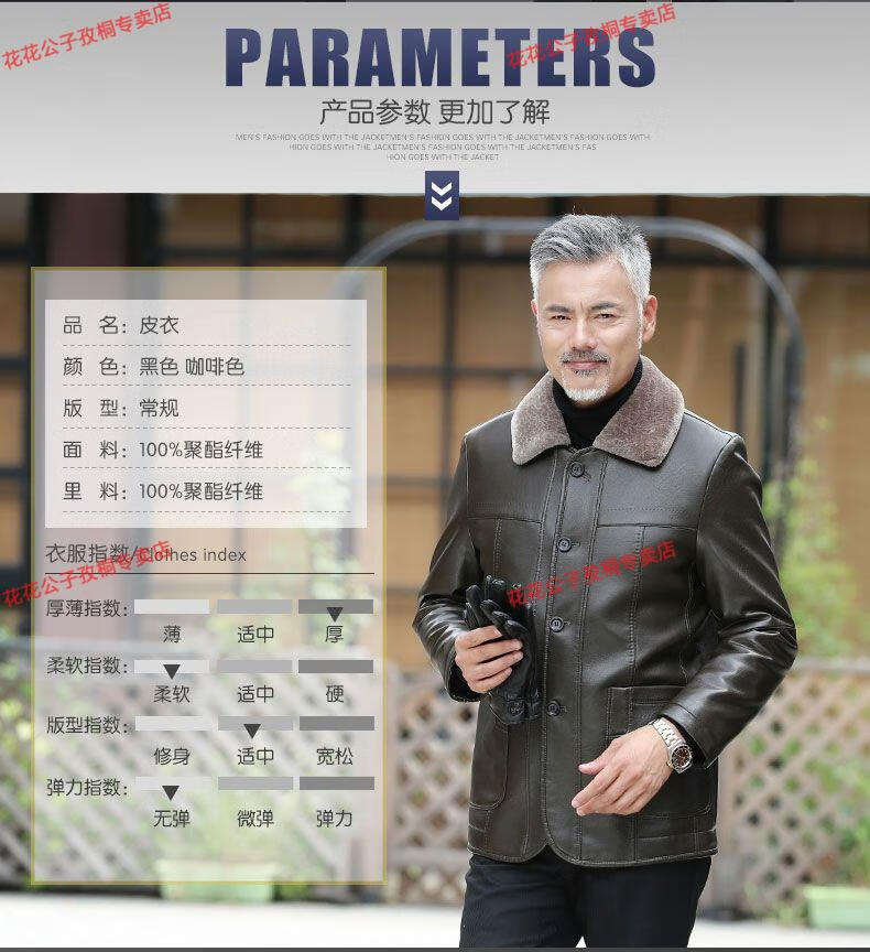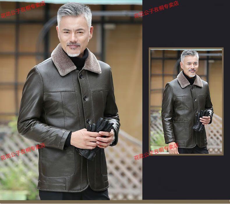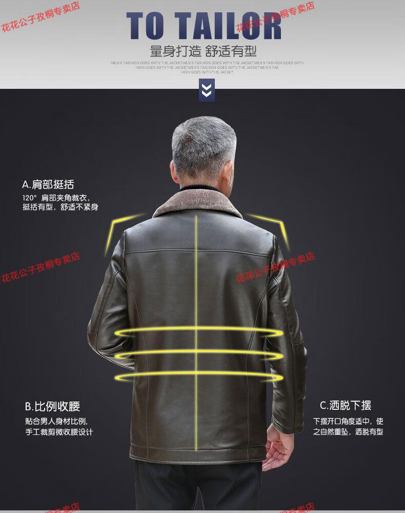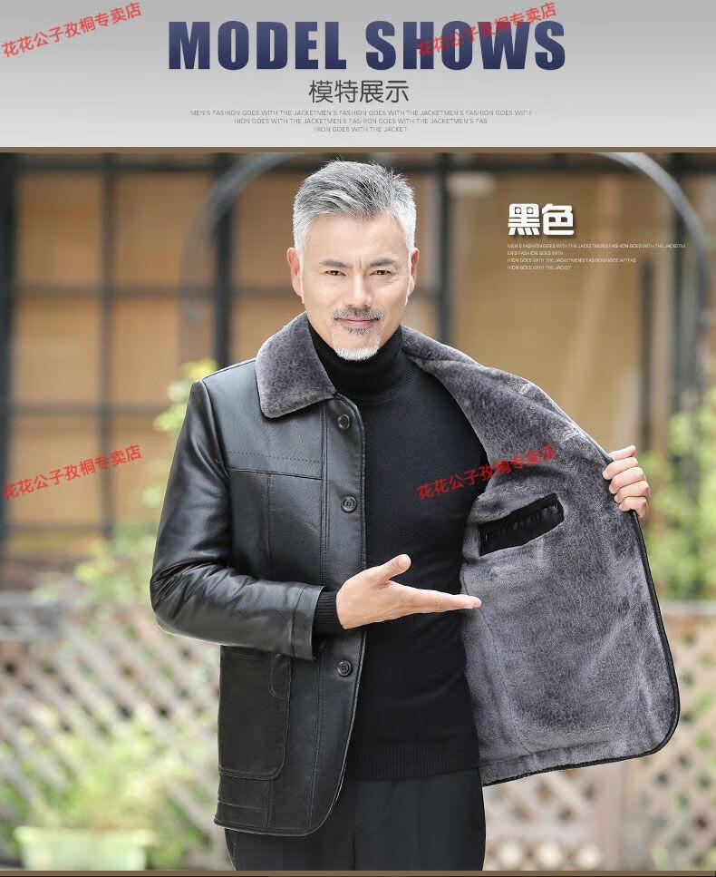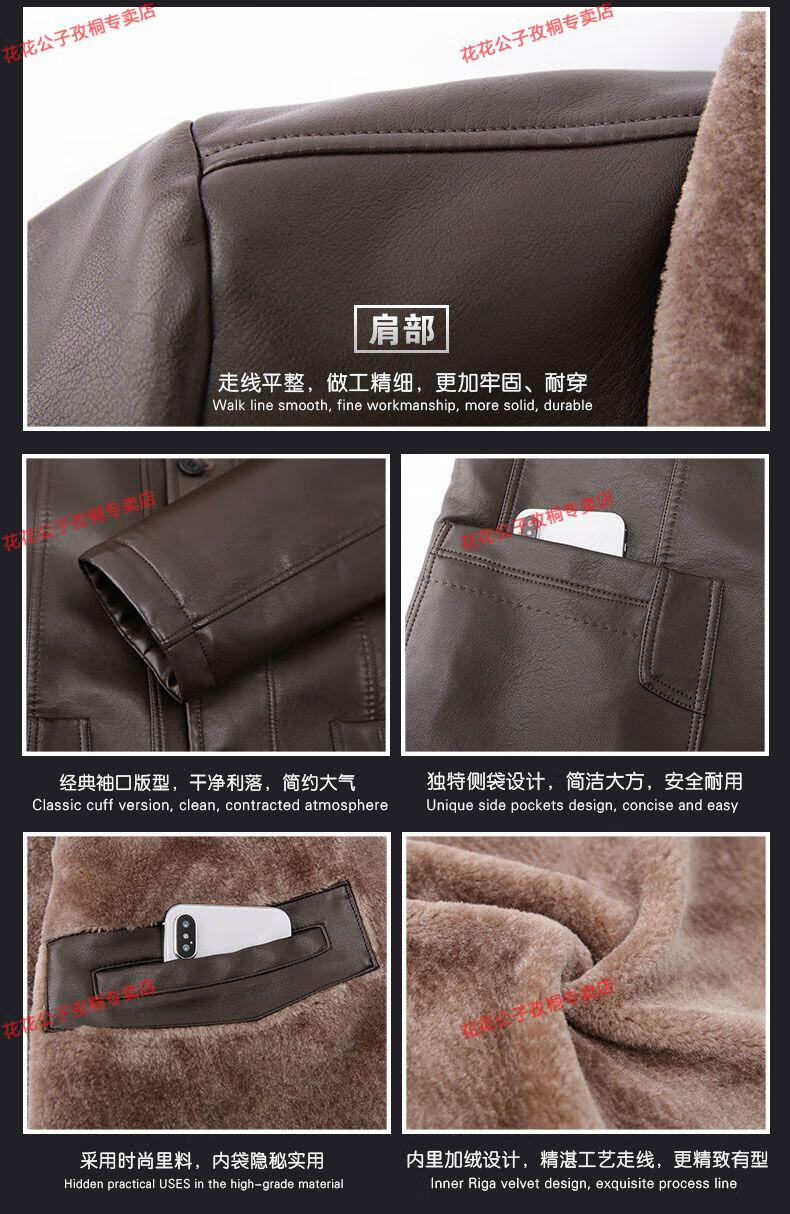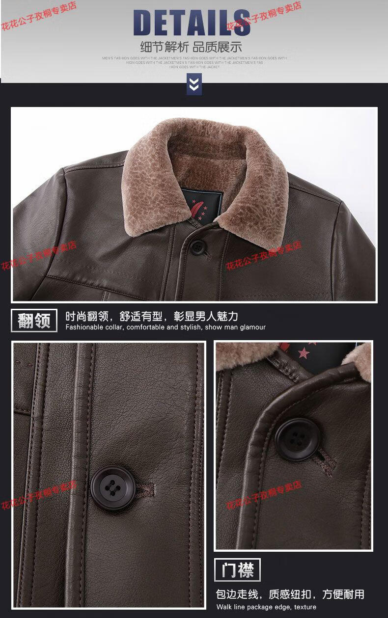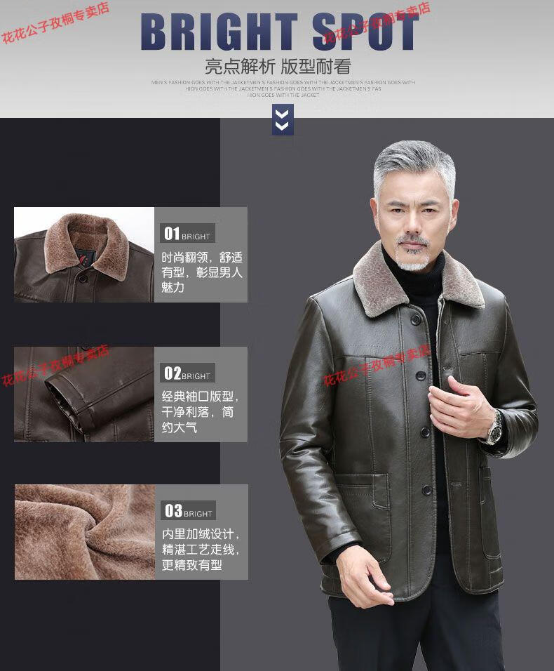 Playboy dad winter coat velvet thickened middle-aged 50-60 leather jacket 70 middle-aged and elderly men's fur all-in-one leather jacket black (button style) 4XL 195 suitable for 160-180 Jin Jin equals 0.5 kg